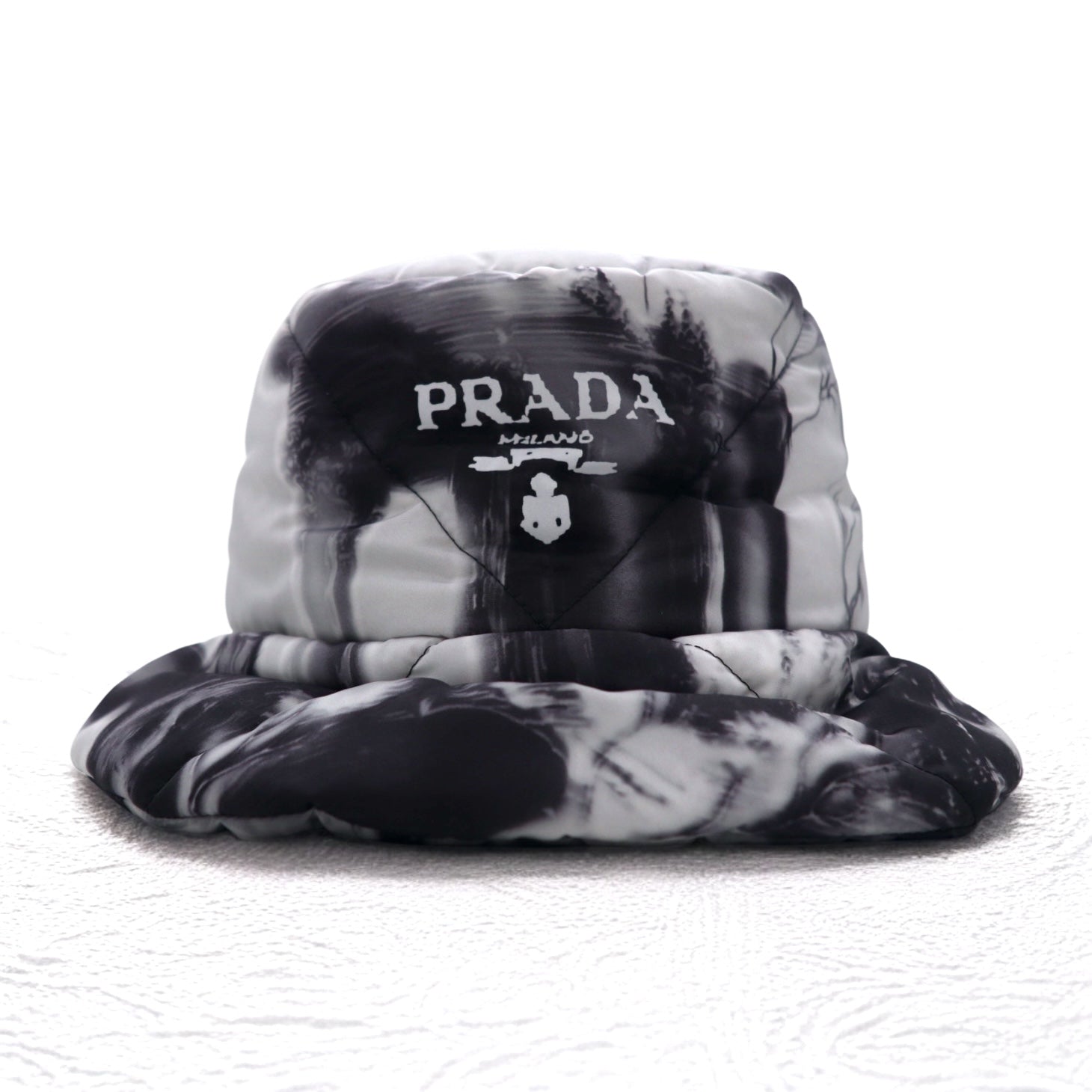 PRADA パデッド リナイロン バケットハット L Padded Re-Nylon Bucket Hat キルティング グレー プリント 2HC252