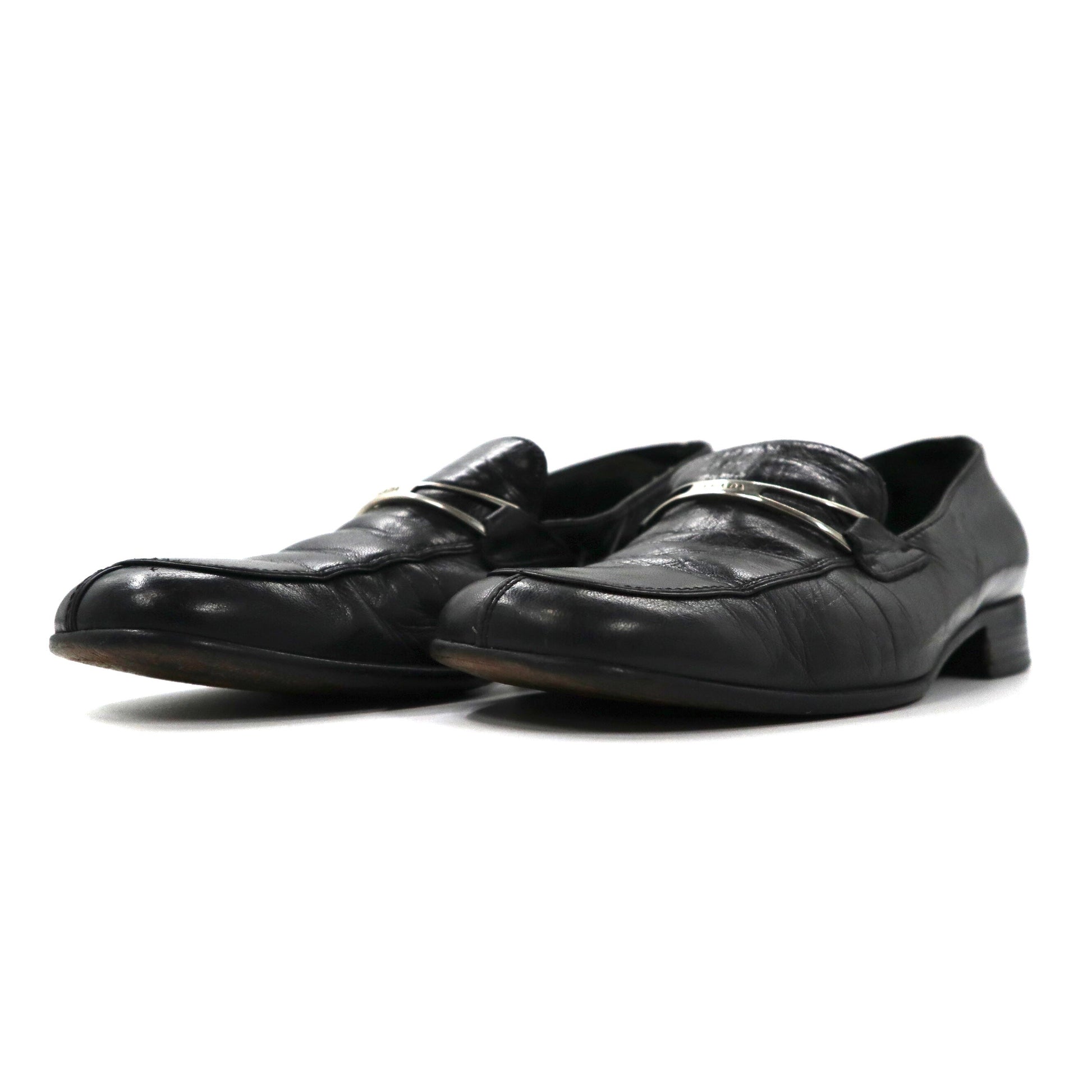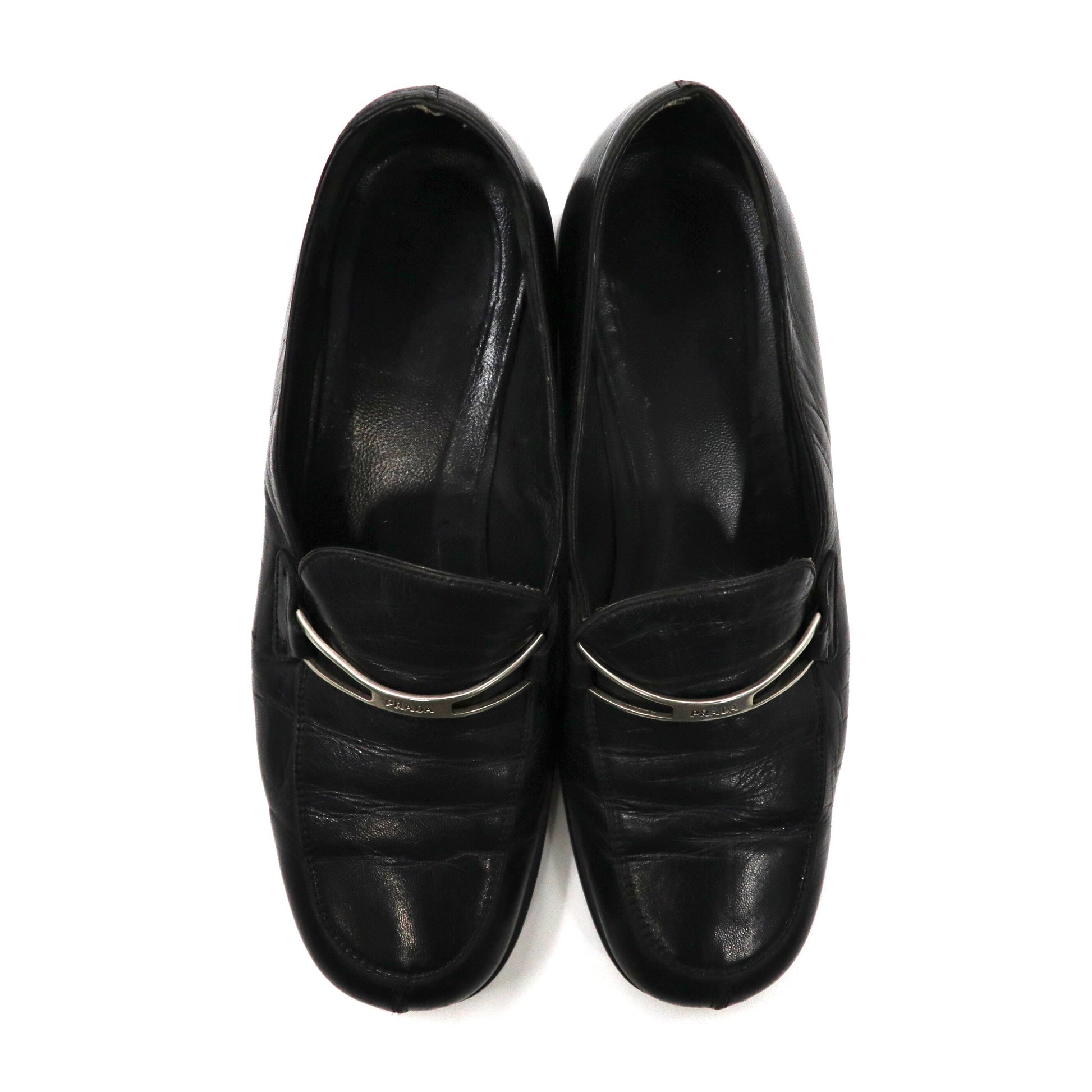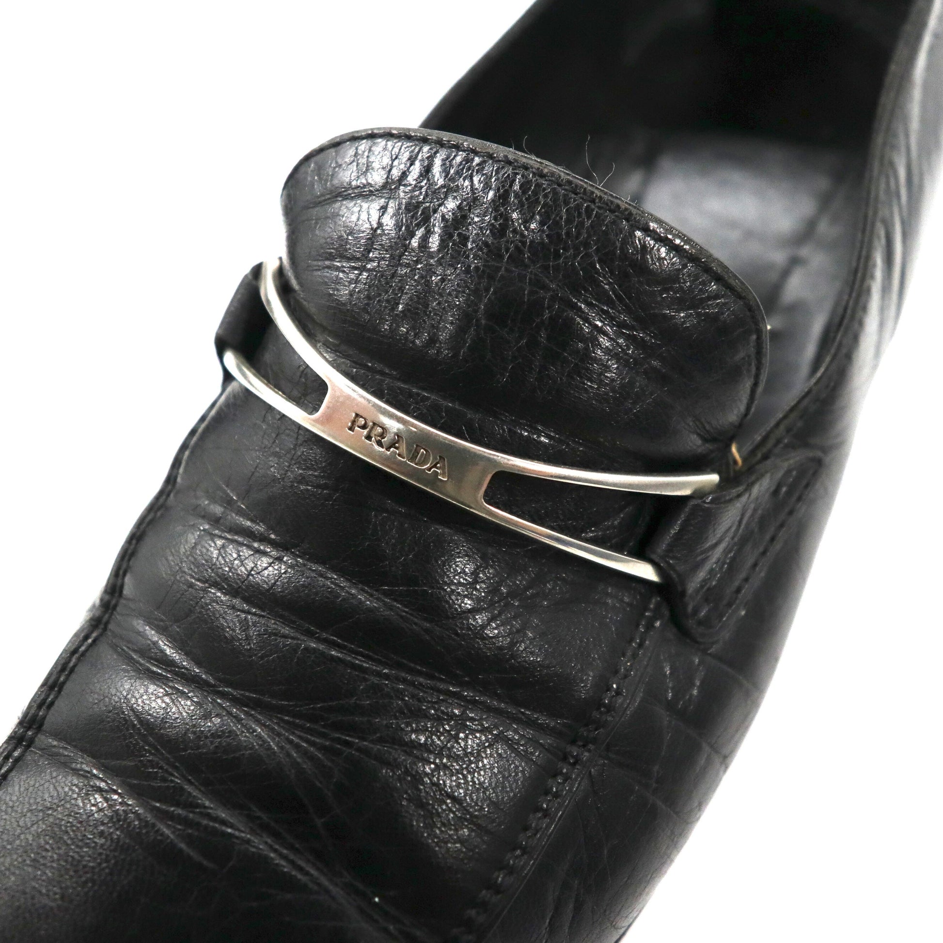 PRADA ローファー 23cm ブラック Vチップ レザー ロゴプレート イタリア製