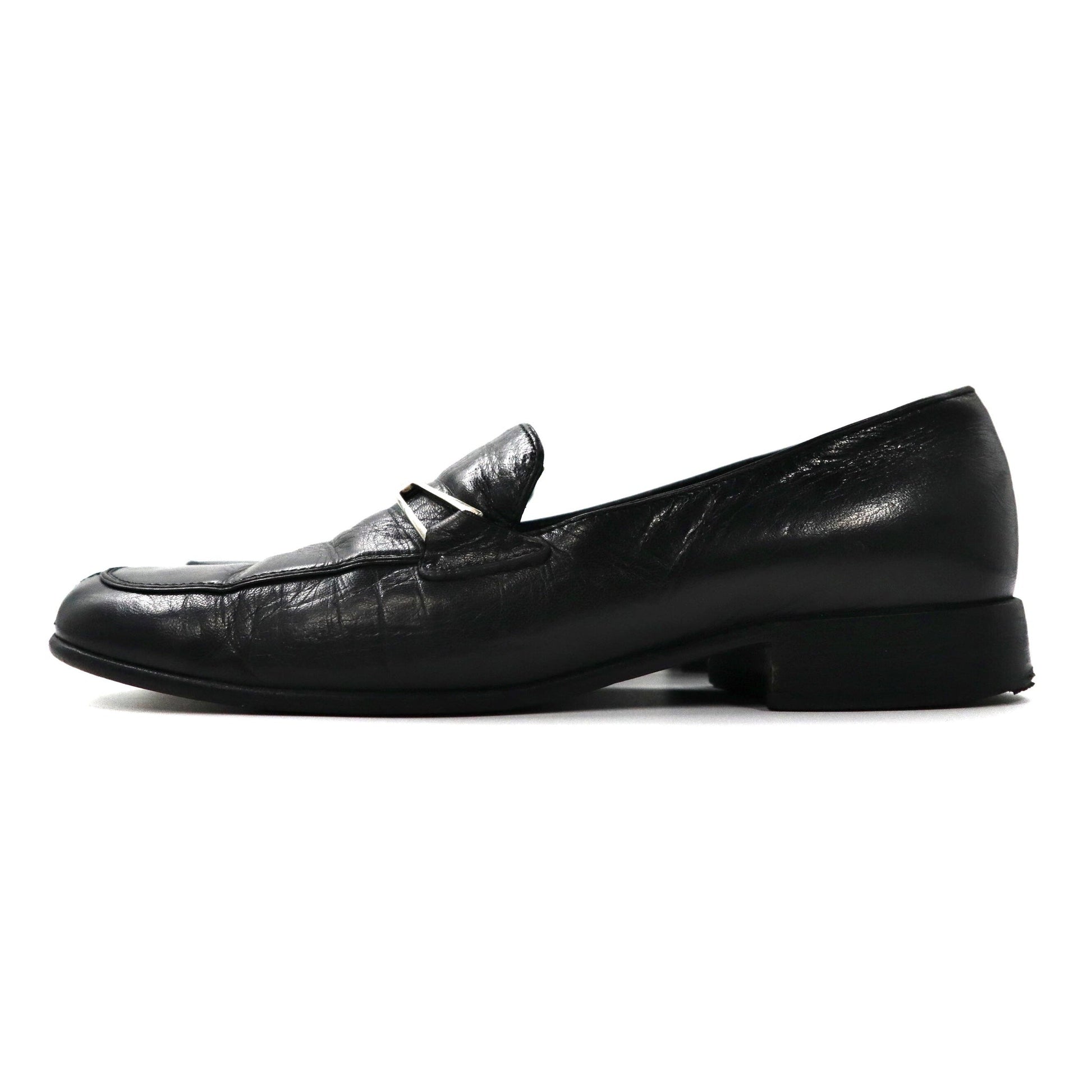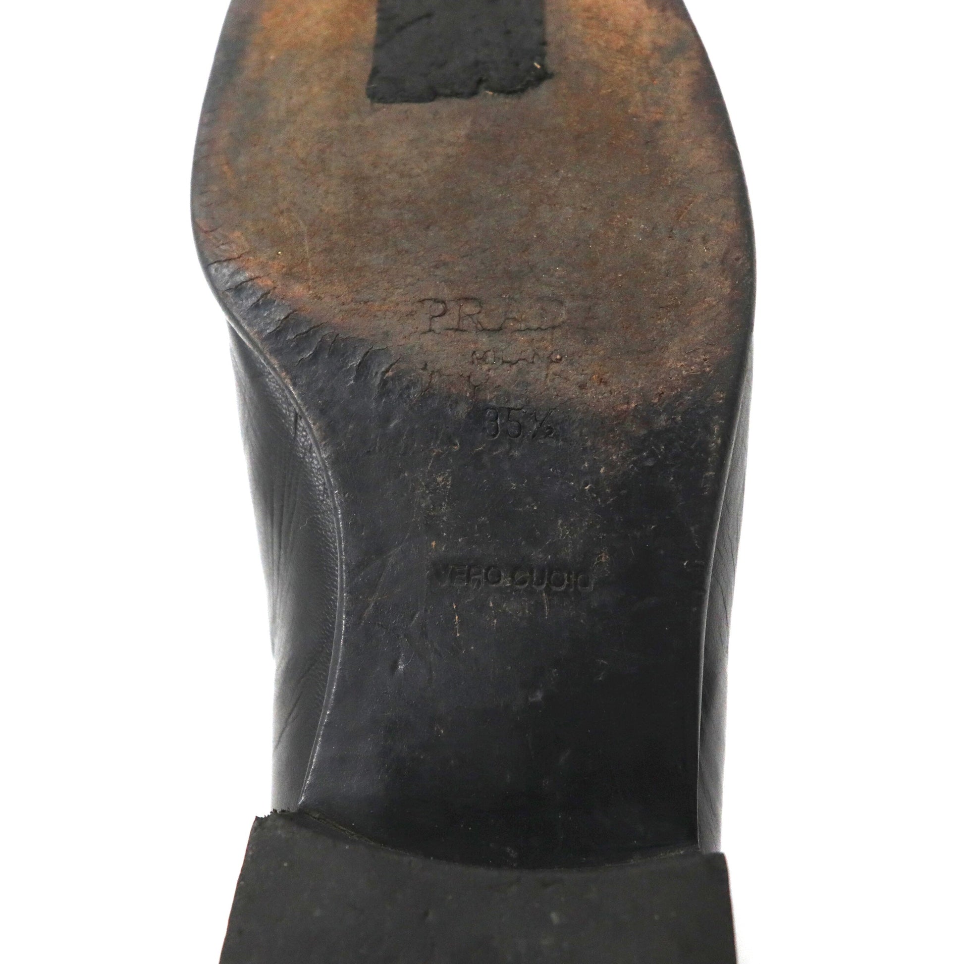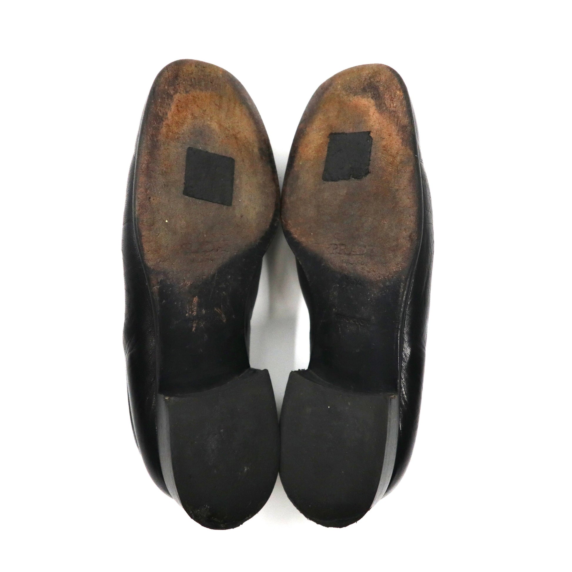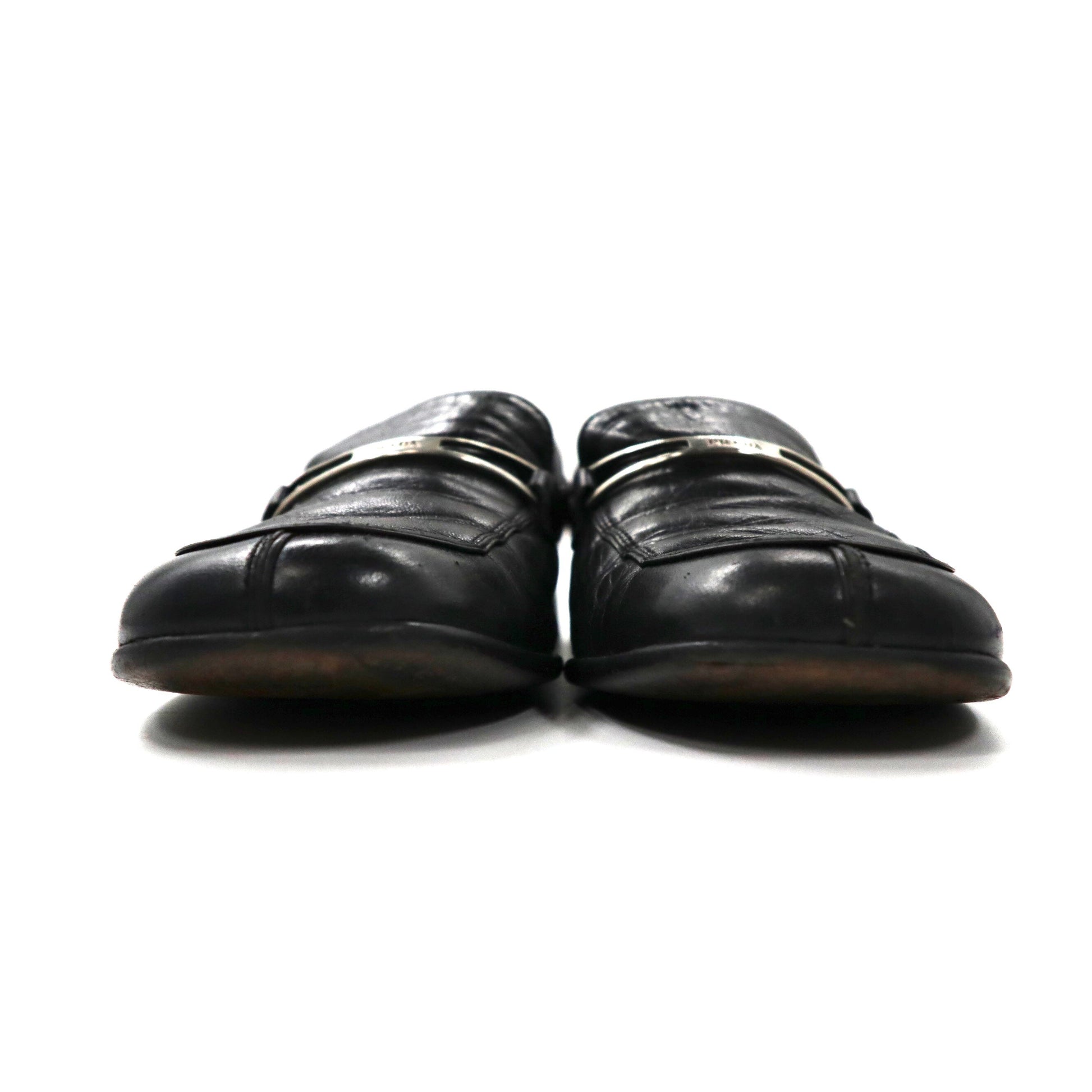 PRADA ローファー 23cm ブラック Vチップ レザー ロゴプレート イタリア製