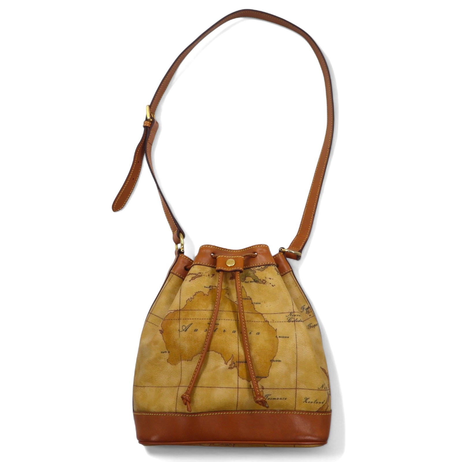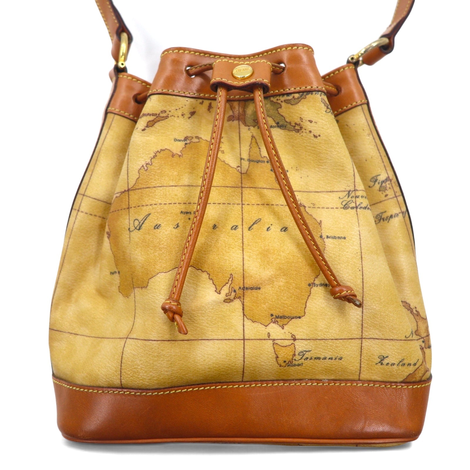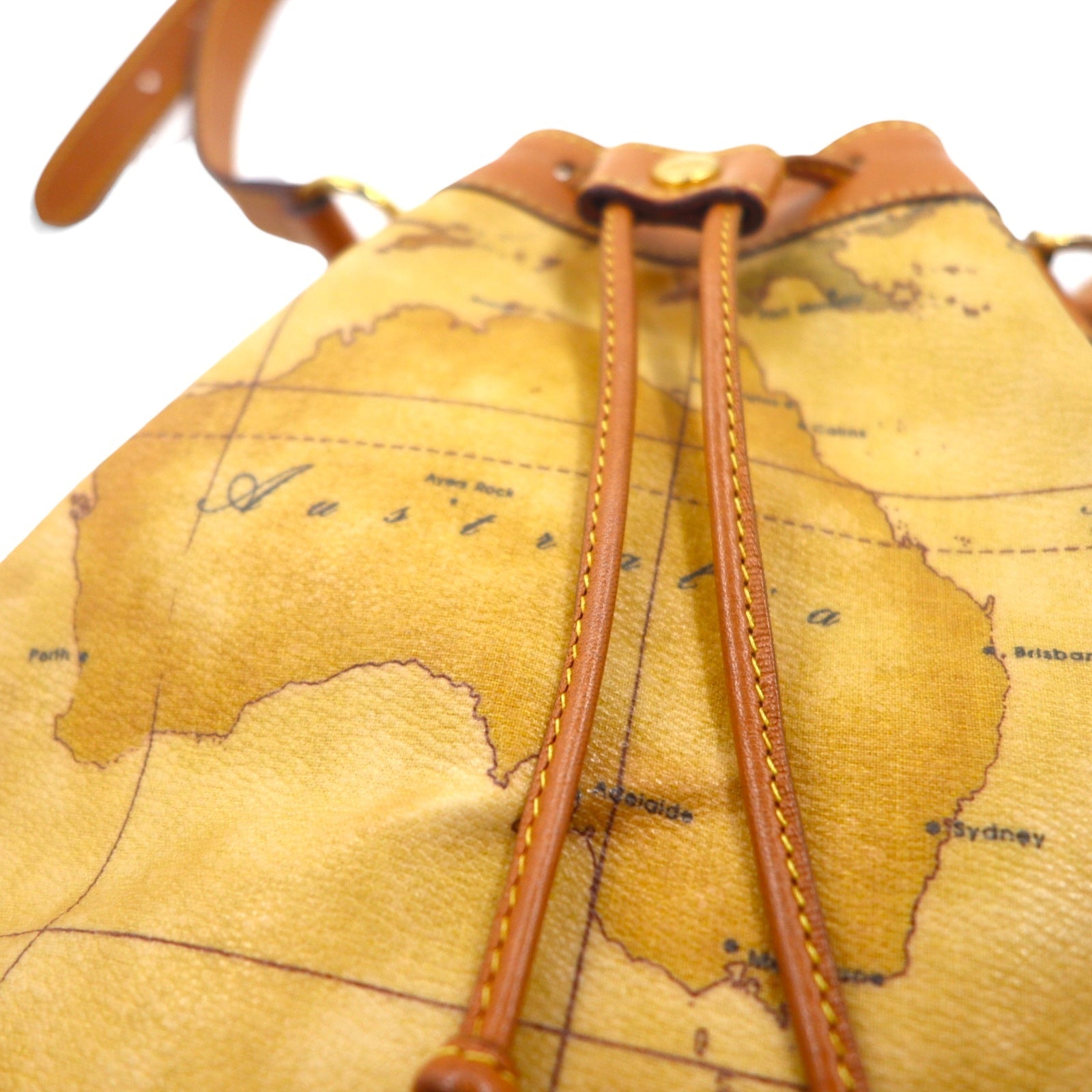 PRIMA CLASSE イタリア製 巾着 ショルダーバッグ ベージュ PVC レザー 世界地図
