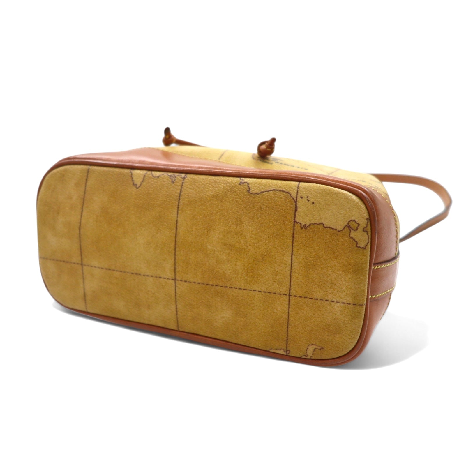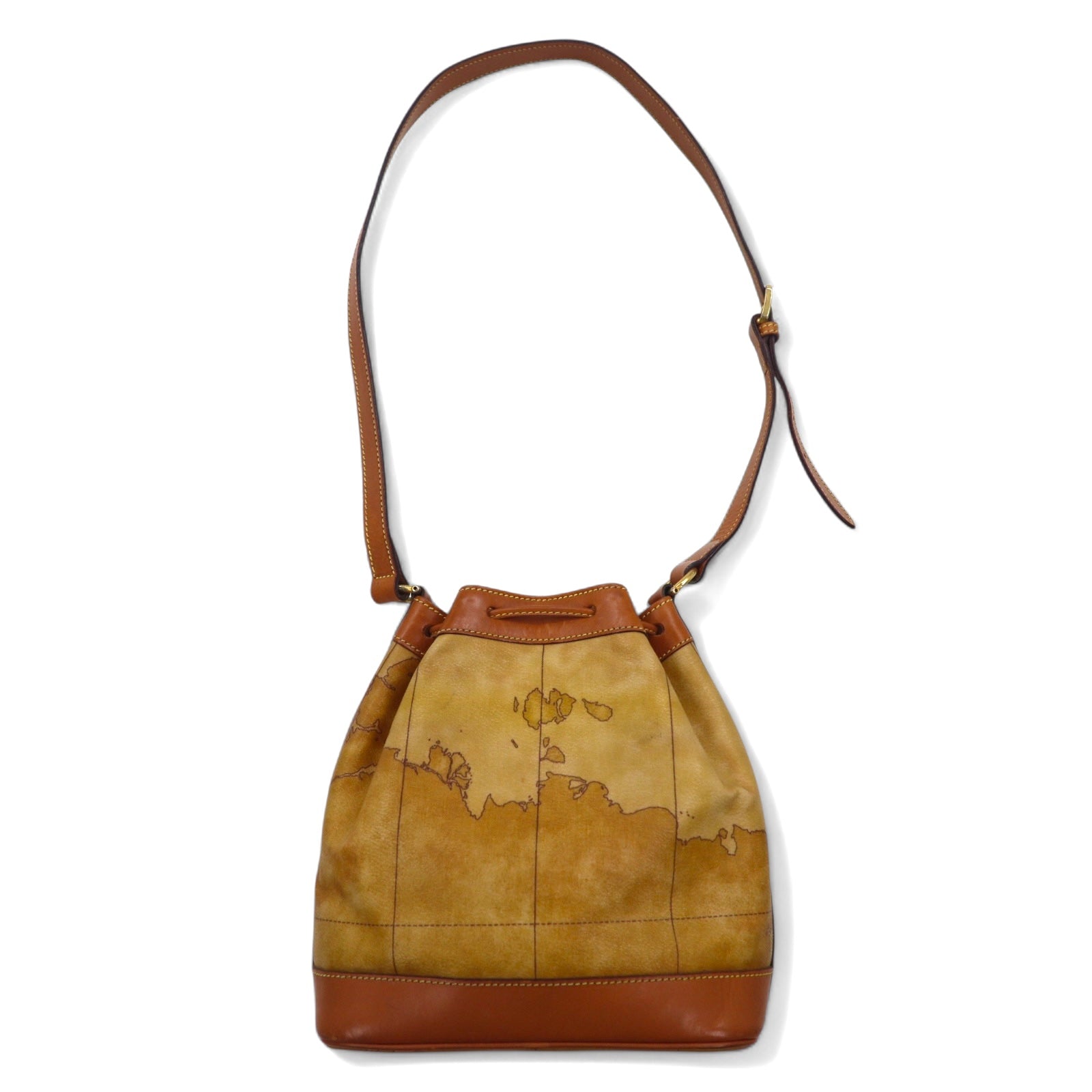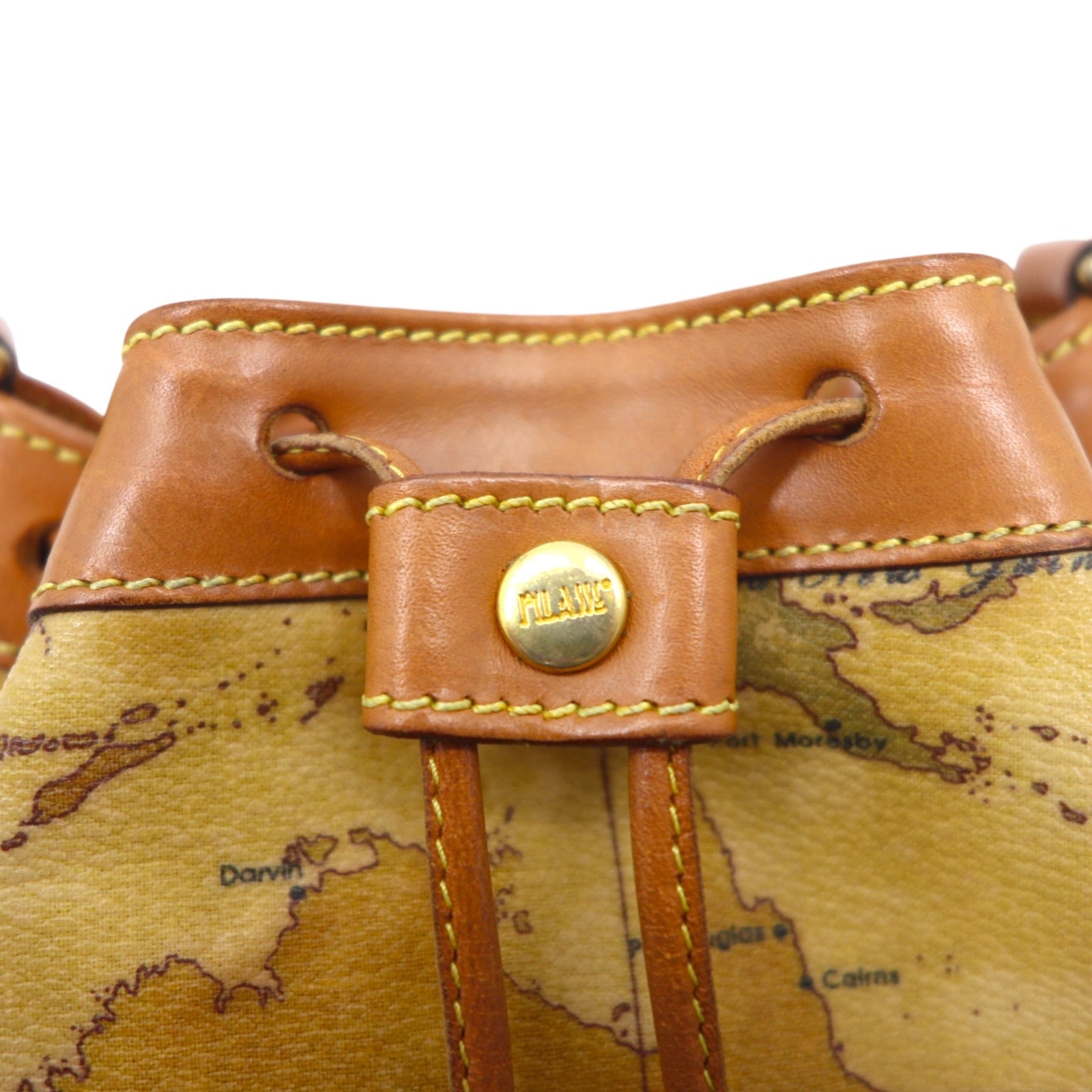 PRIMA CLASSE イタリア製 巾着 ショルダーバッグ ベージュ PVC レザー 世界地図