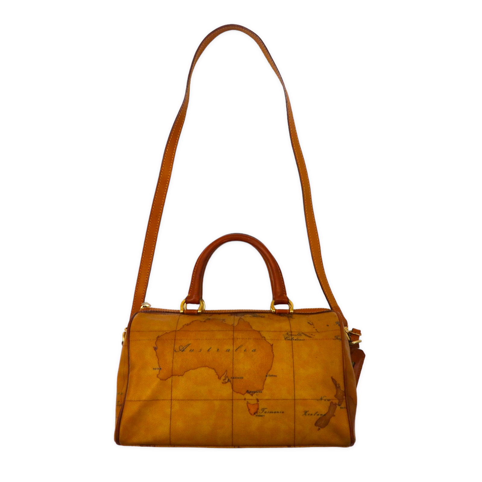 PRIMA CLASSE イタリア製 2WAY ミニボストンバック ショルダーバッグ ベージュ PVC 地図柄