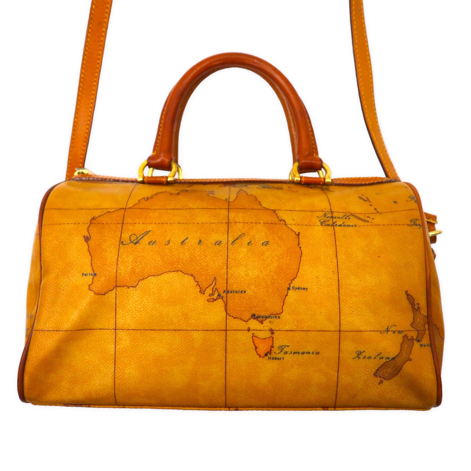PRIMA CLASSE イタリア製 2WAY ミニボストンバック ショルダーバッグ ベージュ PVC 地図柄
