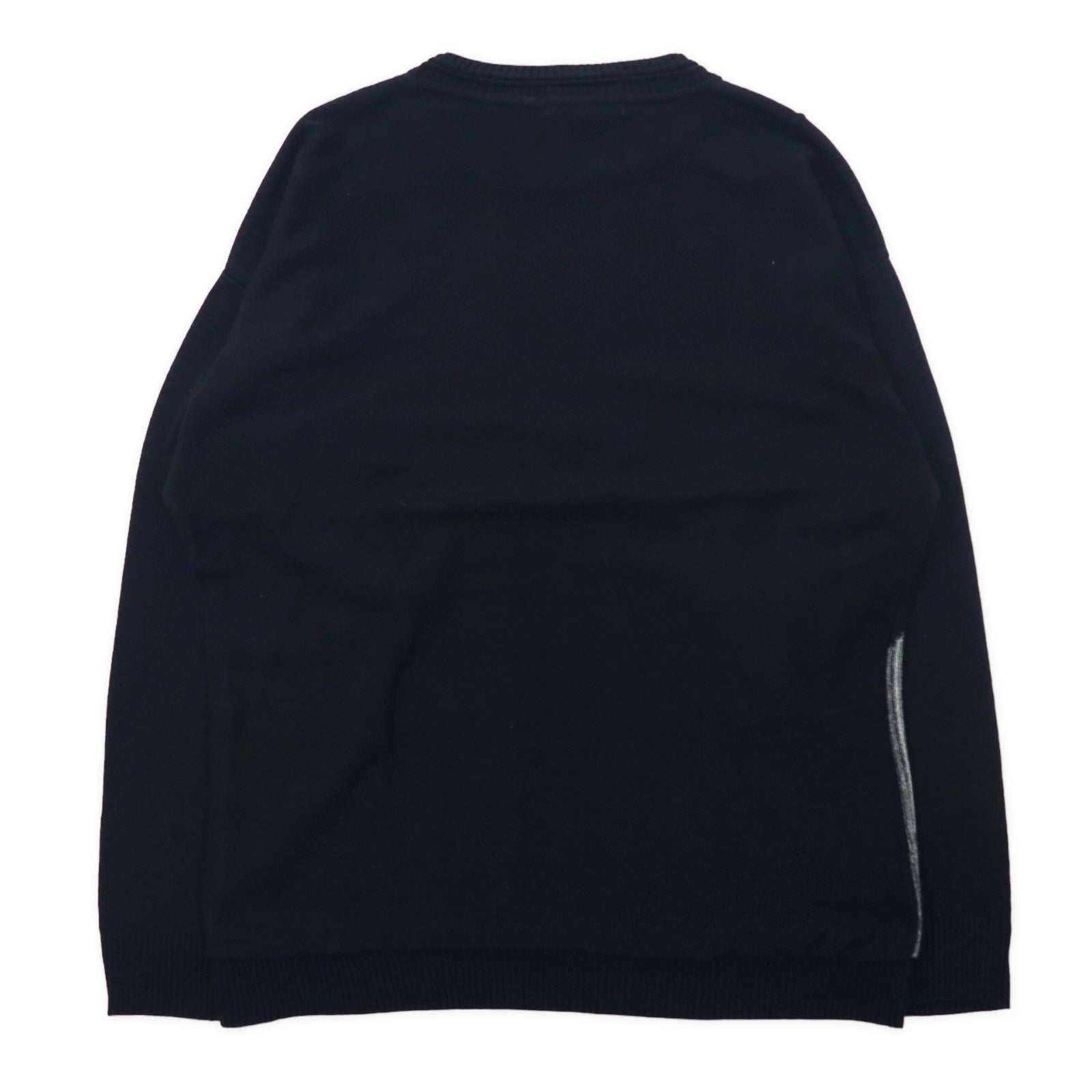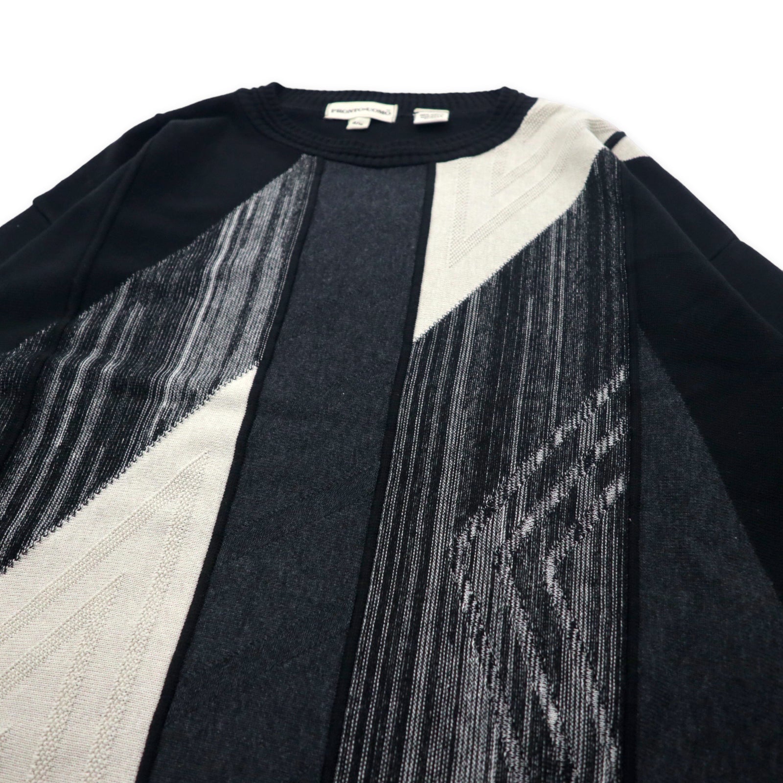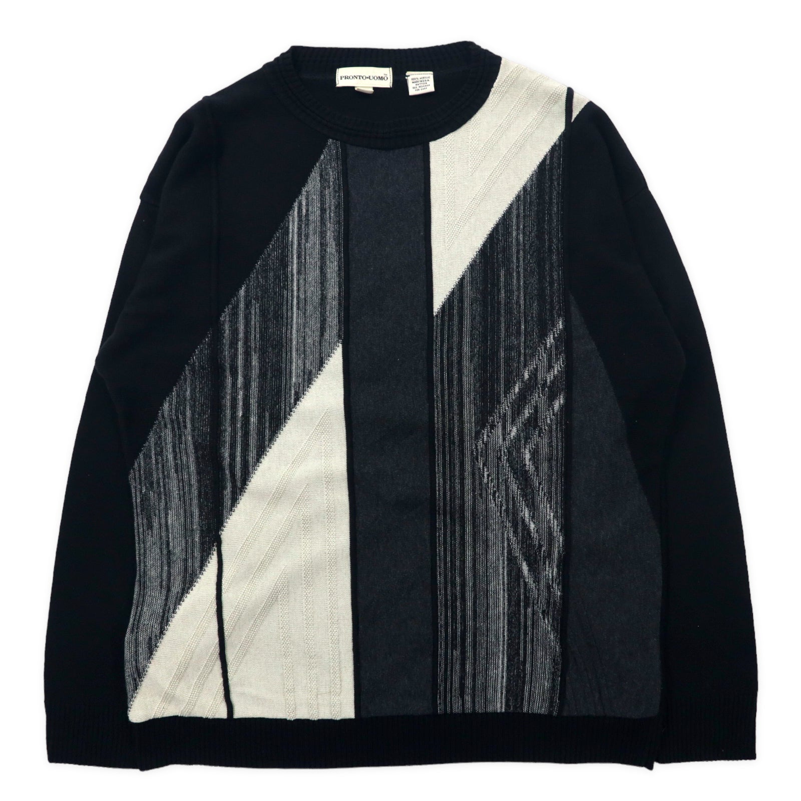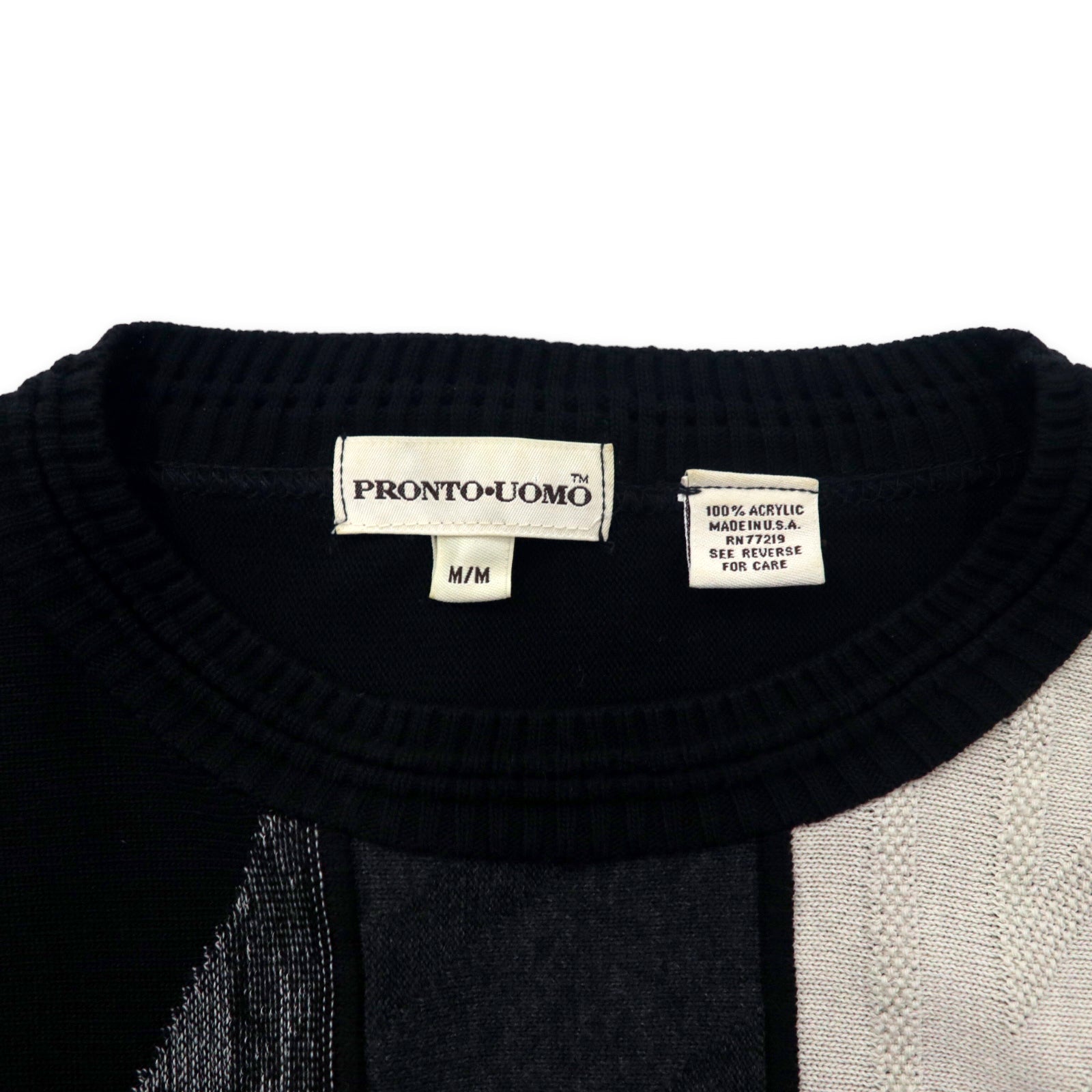 PRONTO UOMO USA製 クルーネック ニット セーター M ブラック アクリル 総柄 ストライプ