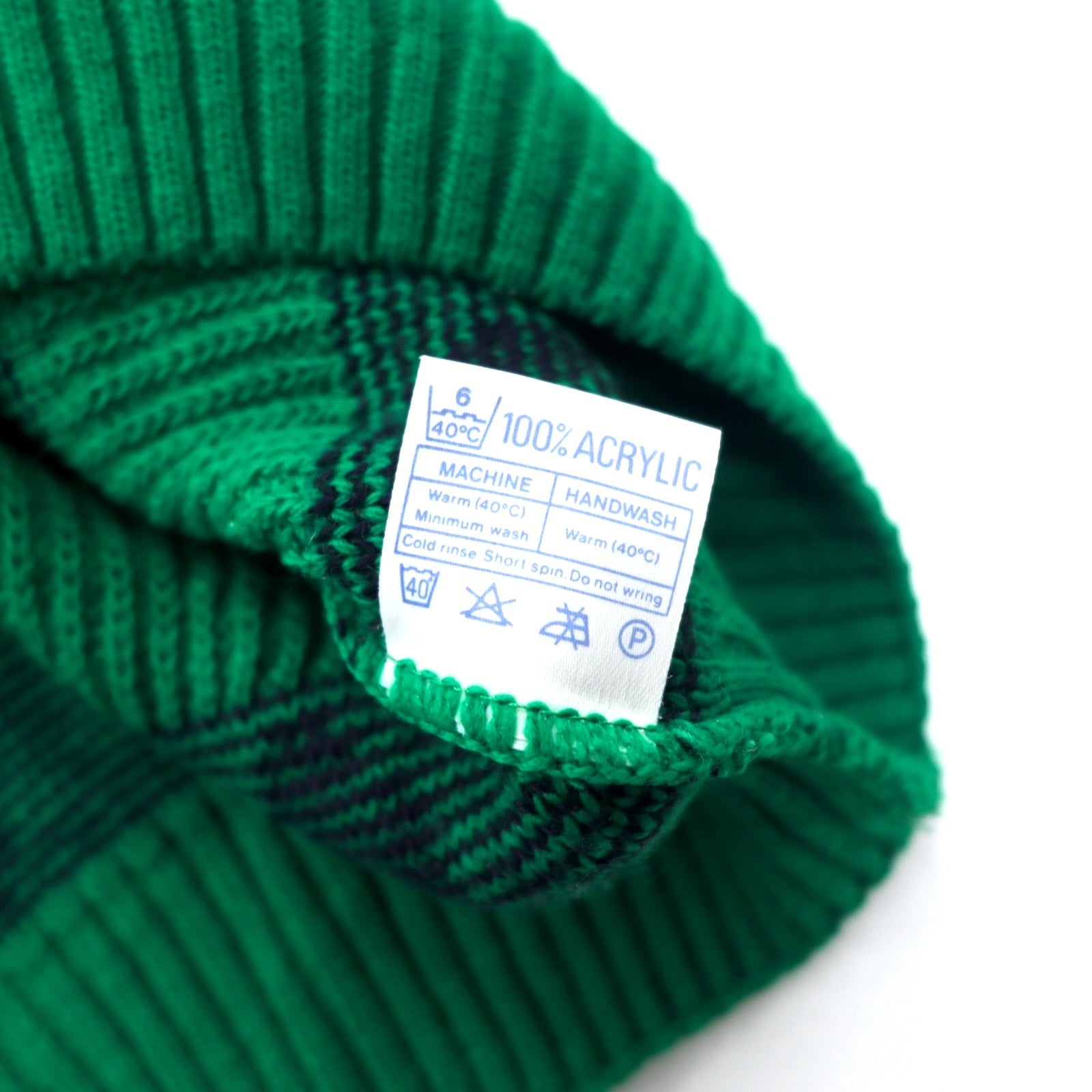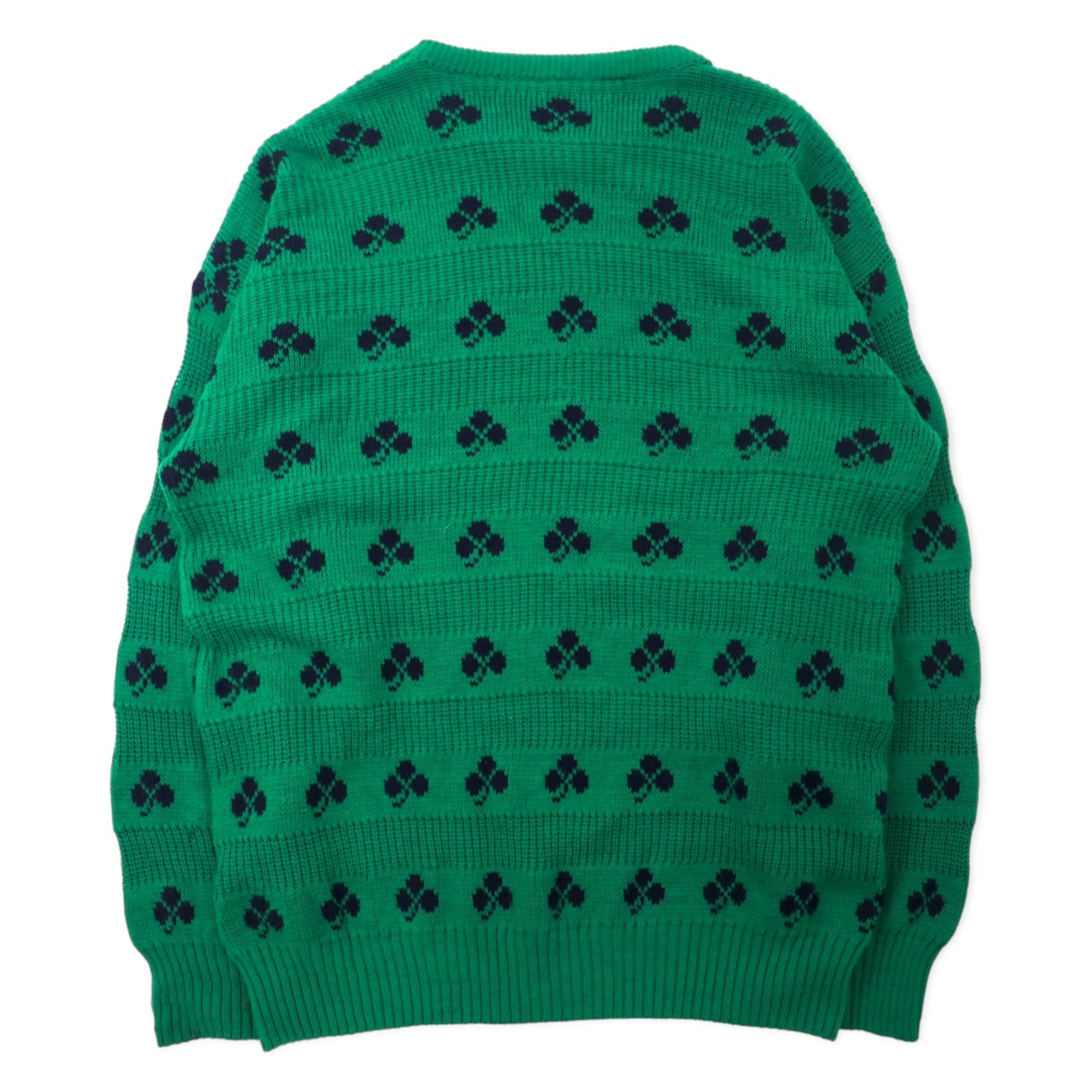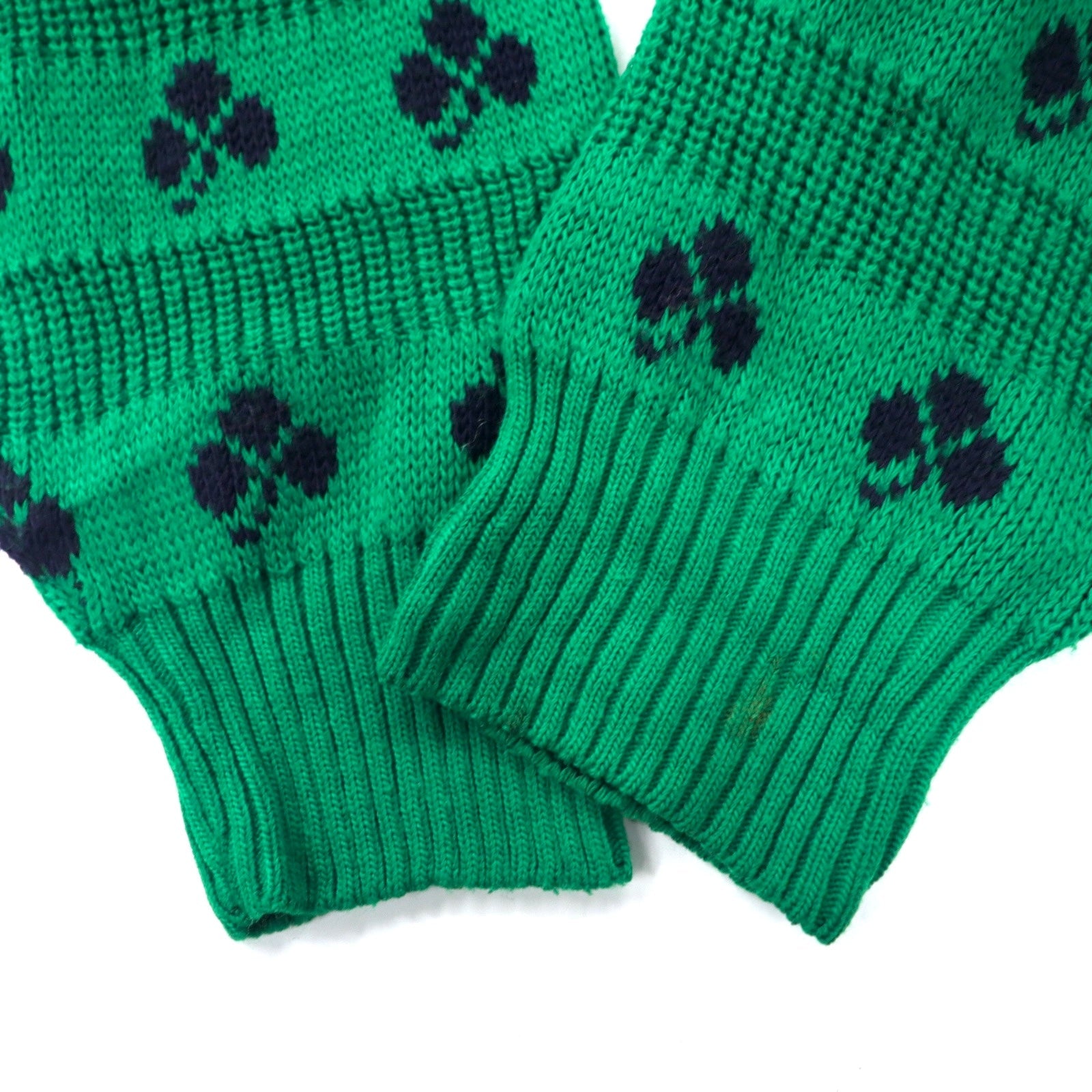 Quill's Woollen Market 70年代 アイルランド製 ローゲージ ニット セーター XL グリーン 総柄 クローバー アクリル ビッグサイズ