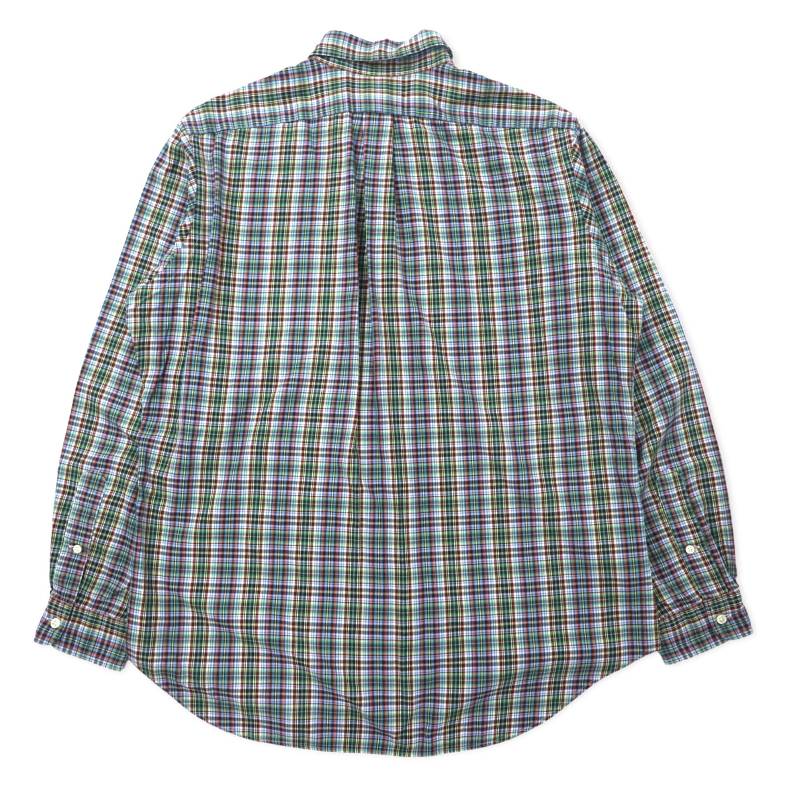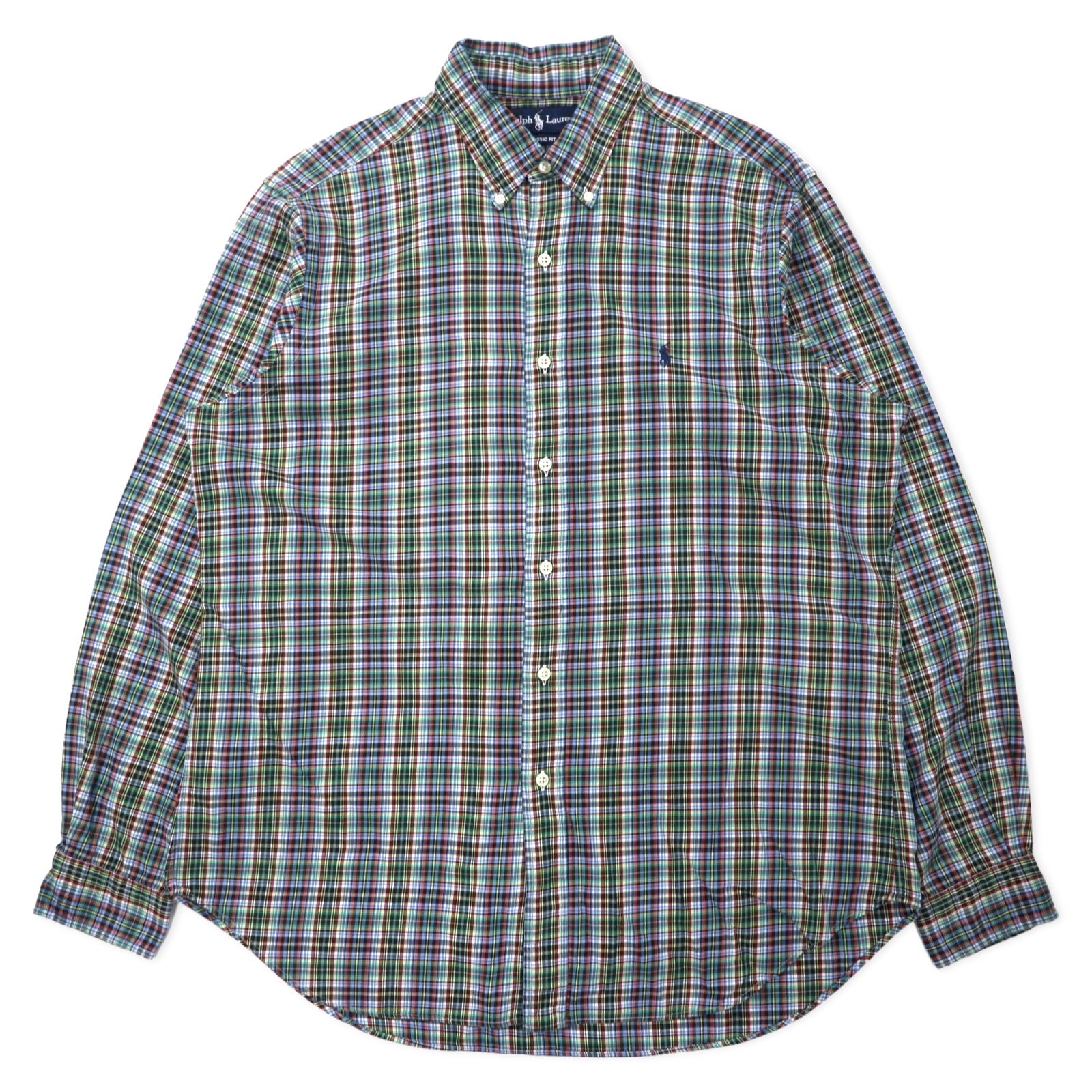 Ralph Lauren ウィンドペンチェック ボタンダウンシャツ L ブルー カーキ コットン CLASSIC FIT スモールポニー刺繍