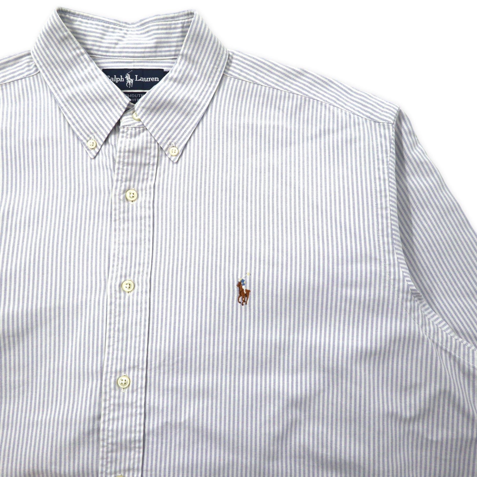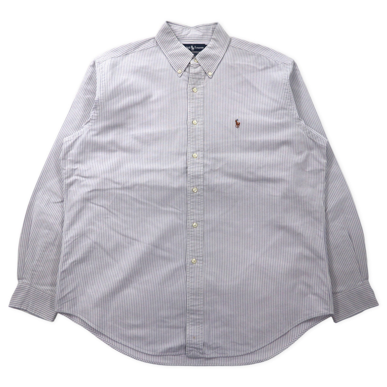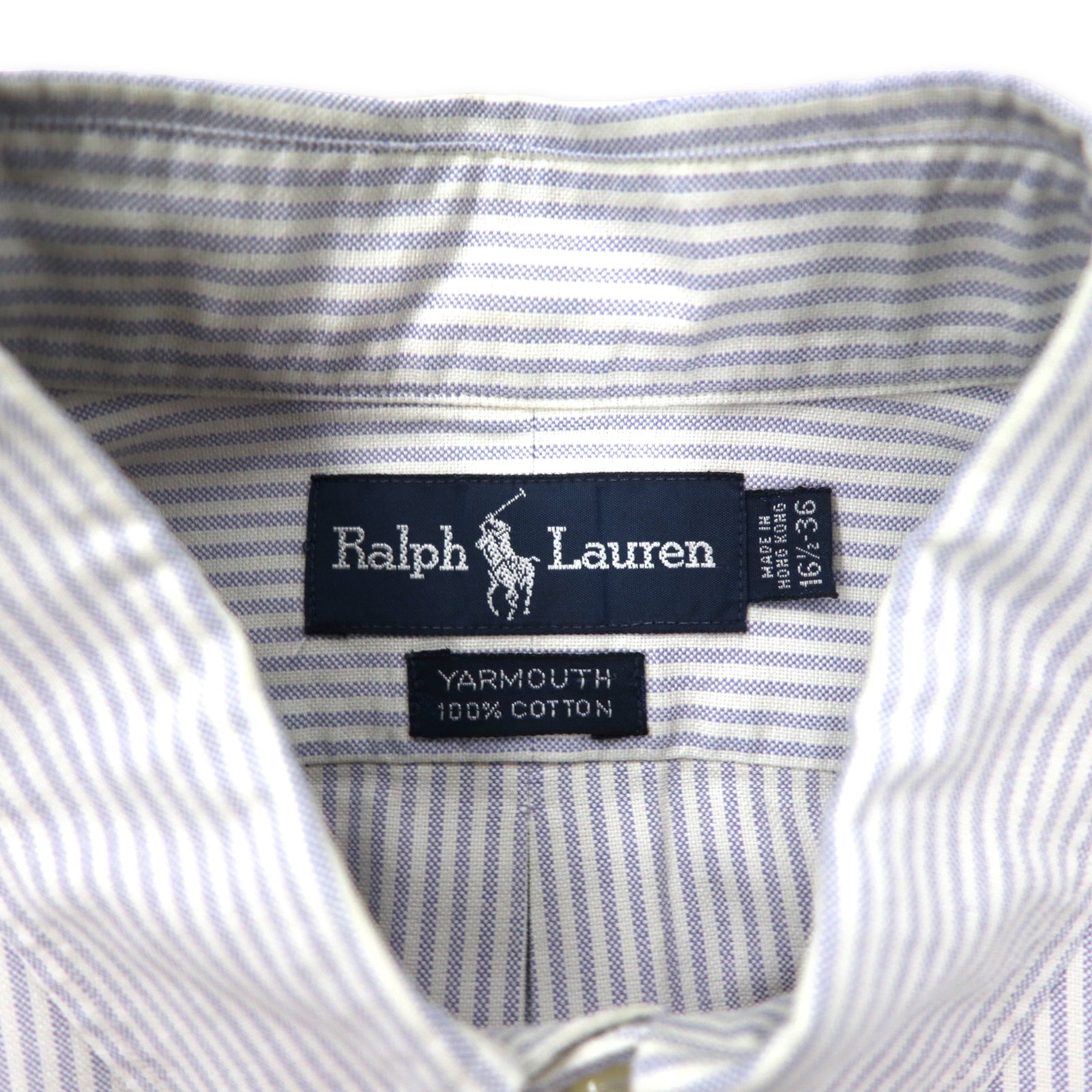 Ralph Lauren オックスフォード ボタンダウンシャツ 16 1/2-36 ブルー ホワイト ストライプ コットン YARMOUTH スモールポニー刺繍 ビッグサイズ