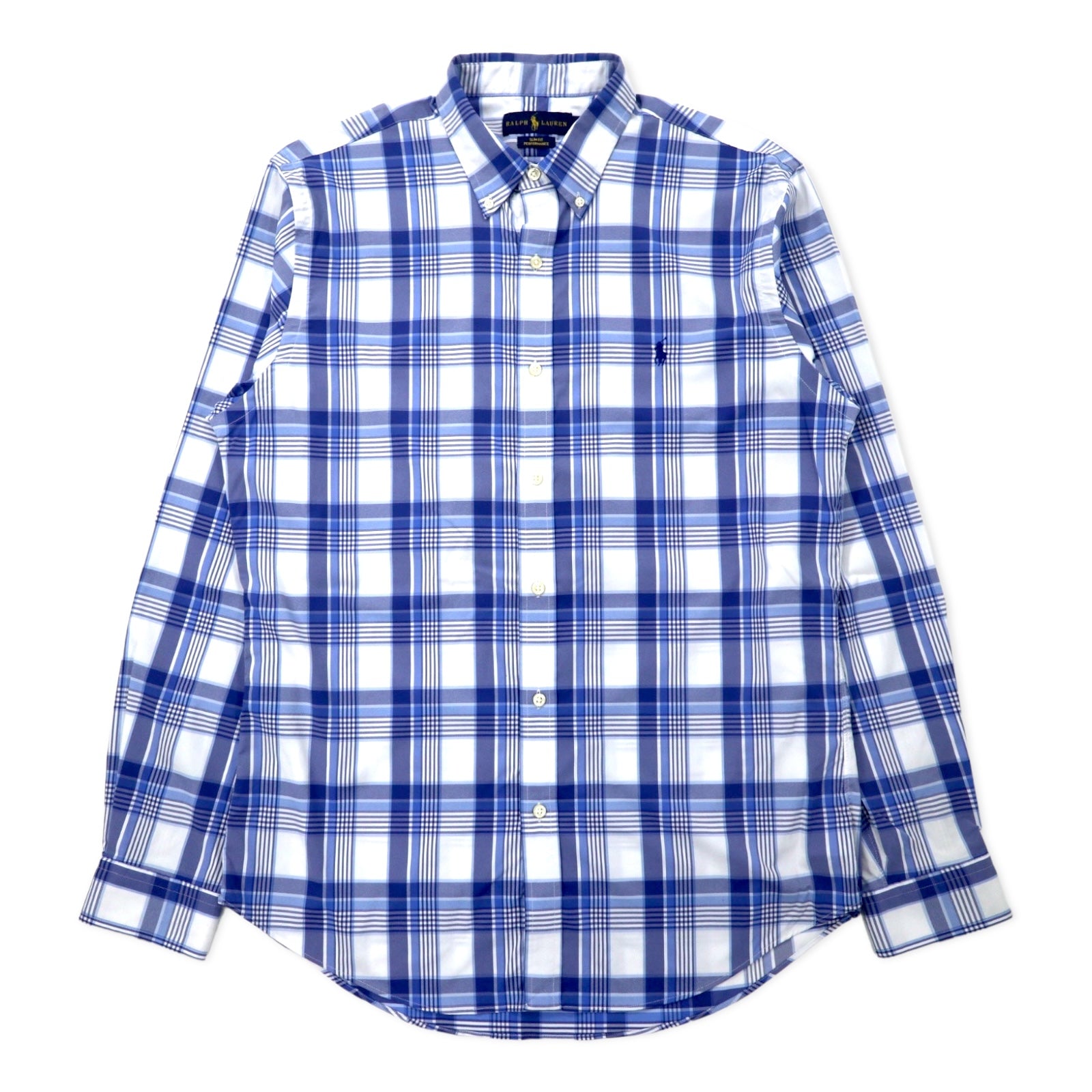 RALPH LAUREN スリムフィット パフォーマンス ボタンダウンシャツ L ブルー チェック ナイロン ストレッチ スモールポニー刺繍