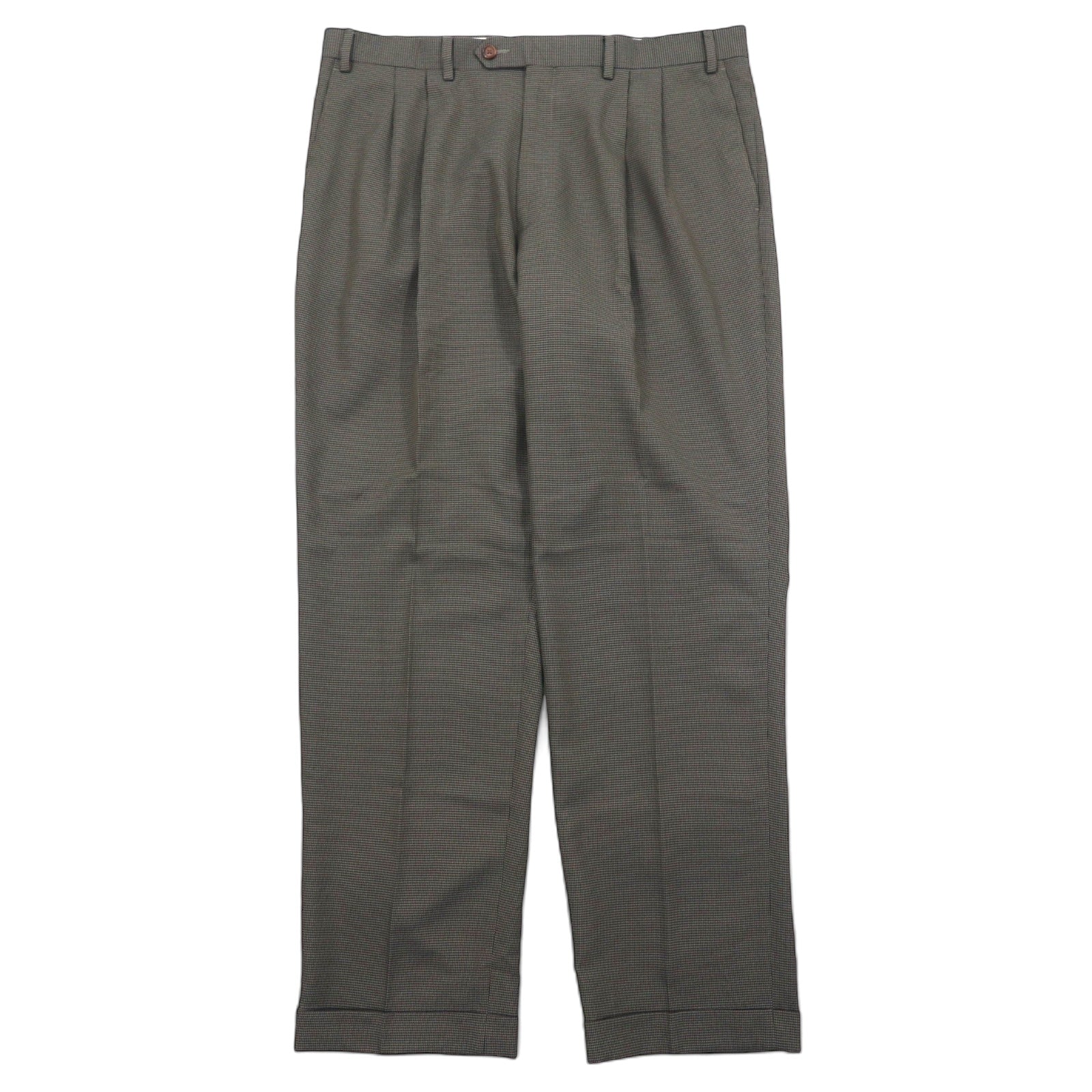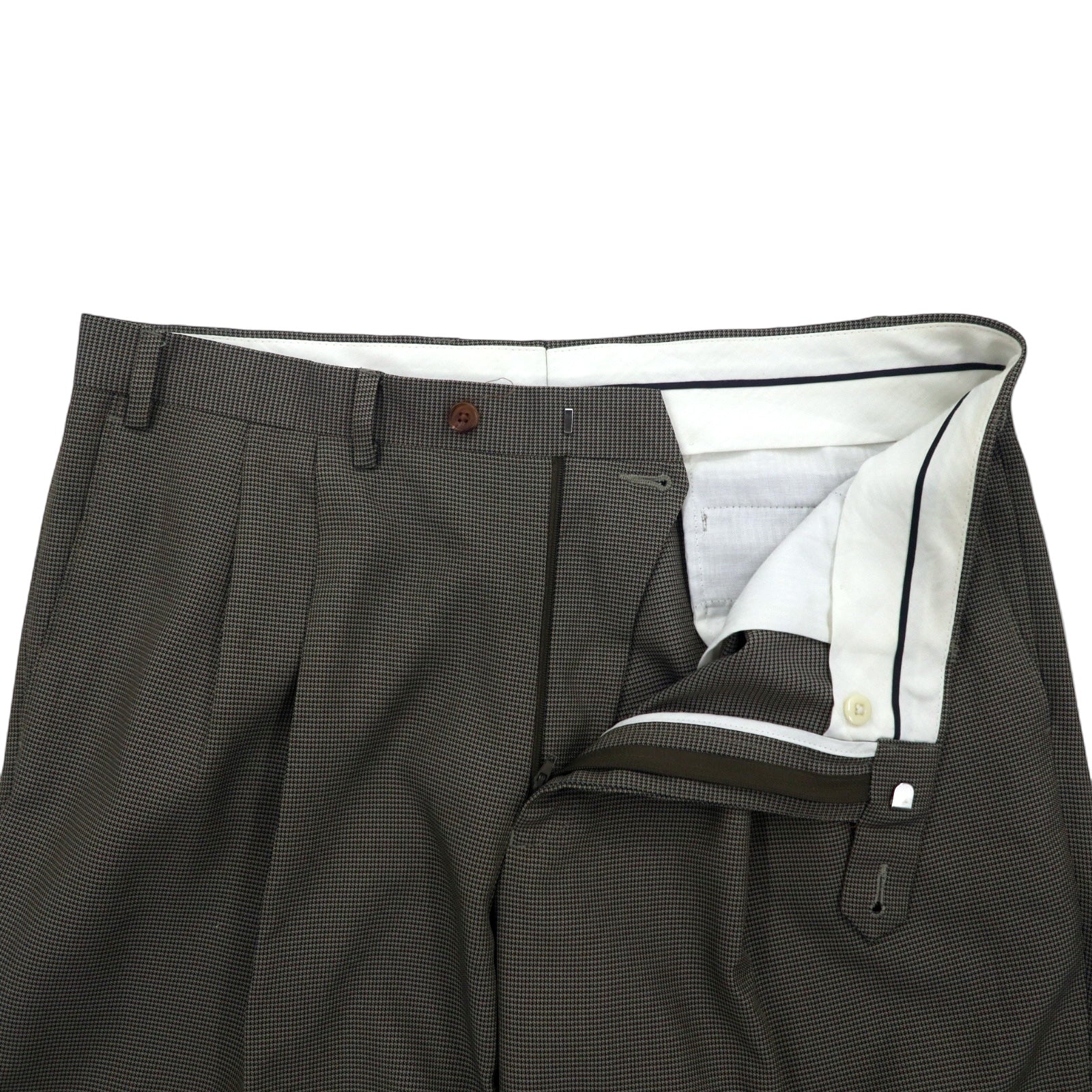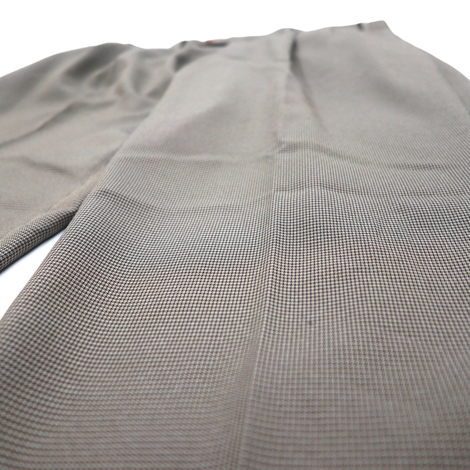 RALPH LAUREN タック ワイド スラックスパンツ 36W グレー ガンクラブチェック 千鳥格子 ポリエステル WASHABLE
