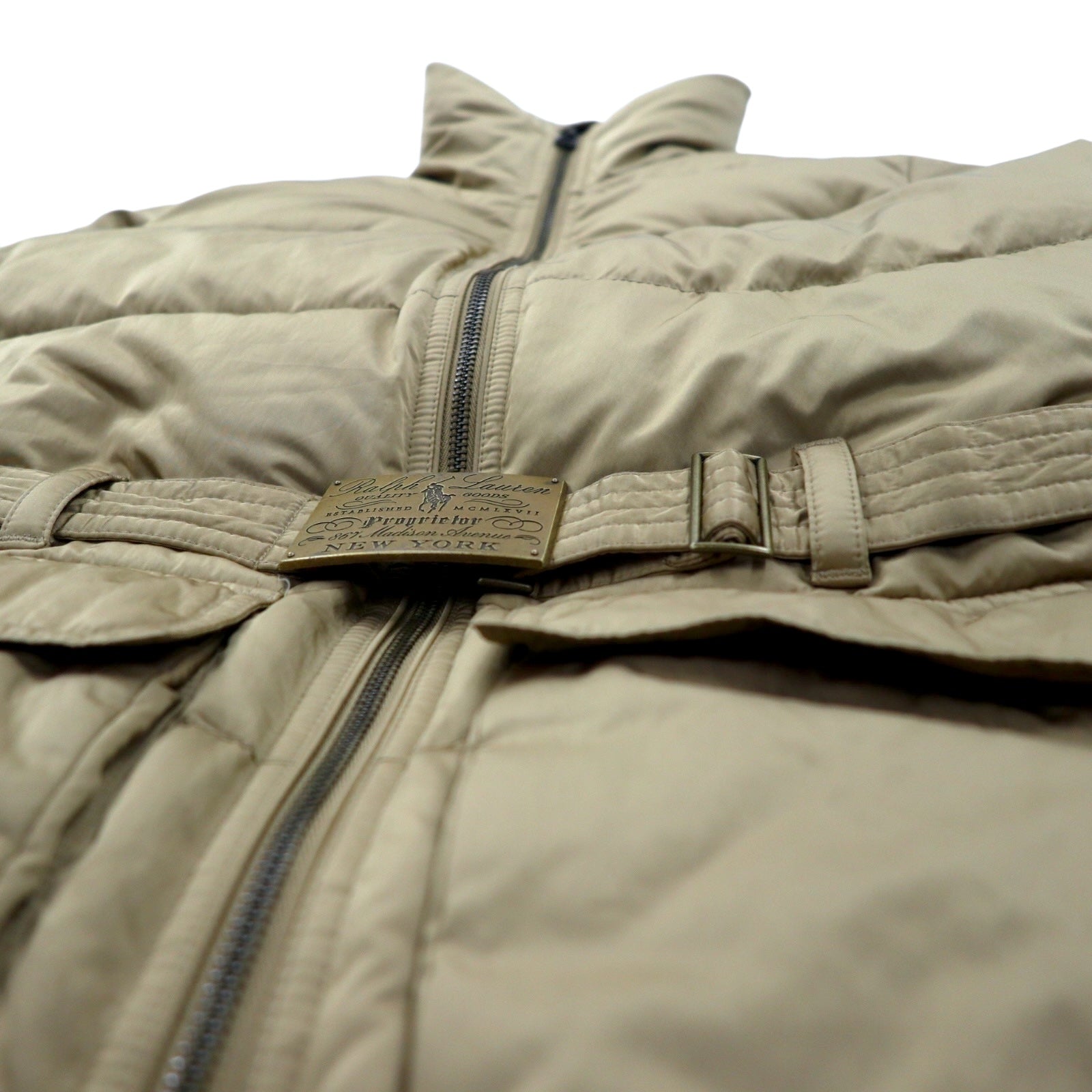 RALPH LAUREN ダウンジャケット S ベージュ ポリエステル ロゴ ベルト バックル ダブルジップ