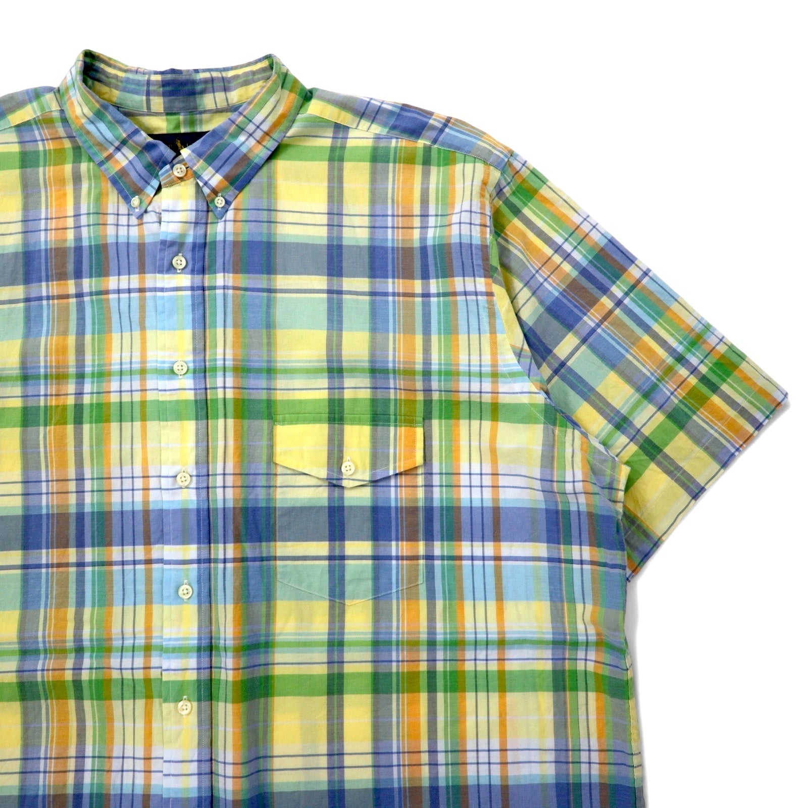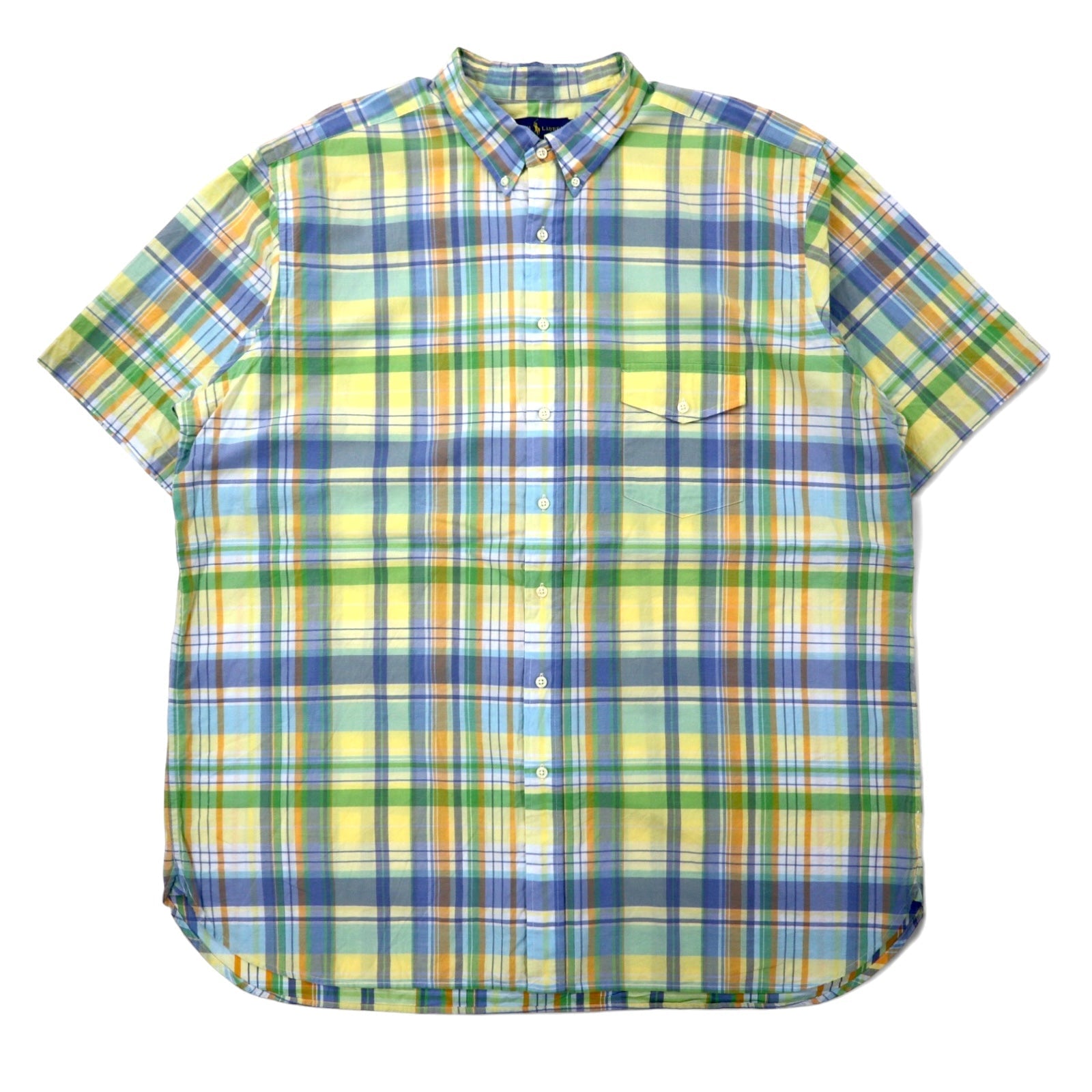 Ralph Lauren ビーチ ツイル 半袖 ボタンダウンシャツ 2XLT TALL イエロー チェック コットン スモールポニー 刺繍 ビッグサイズ