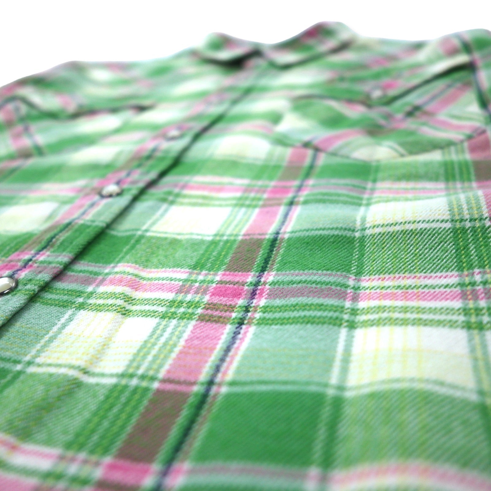 RALPH LAUREN フランネル ウエスタンシャツ 7 グリーン チェック コットン スナップボタン
