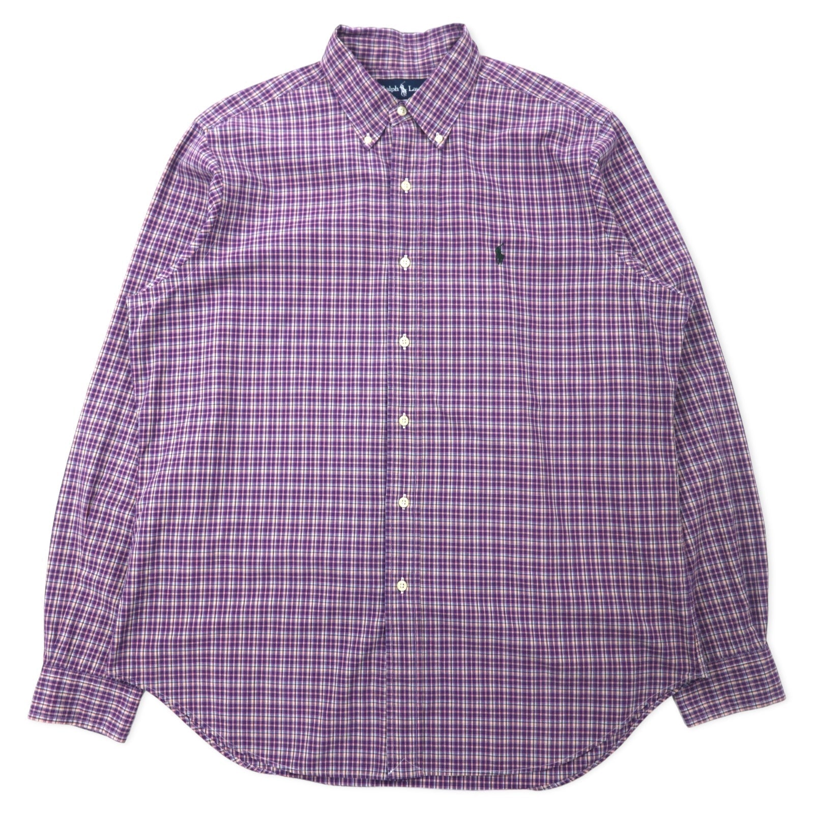 RALPH LAUREN ボタンダウンシャツ L パープル チェック コットン CUSTOM FIT スモールポニー刺繍