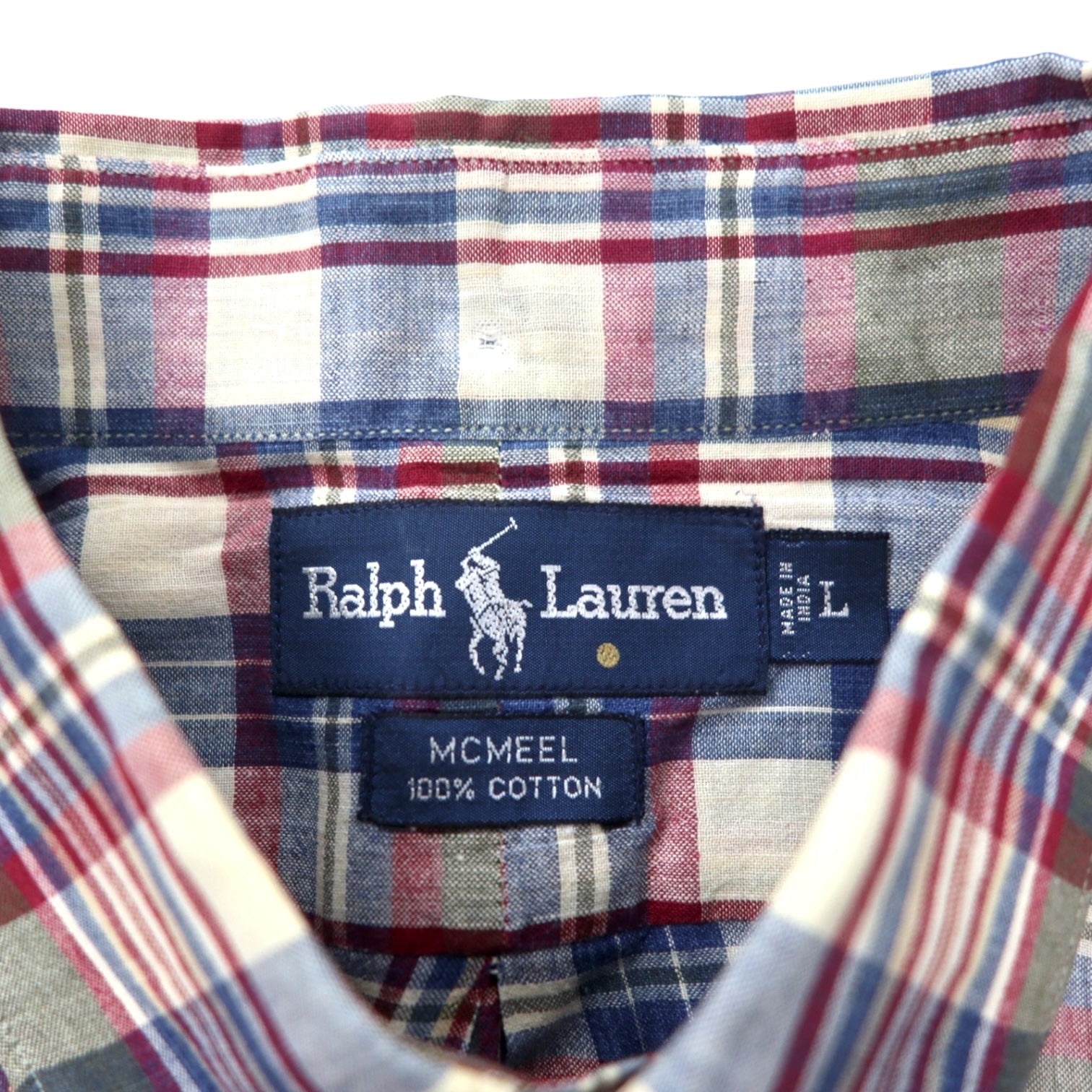 Ralph Lauren ボタンダウンシャツ L ブラウン チェック コットン MCMEEL スモールポニー刺繍