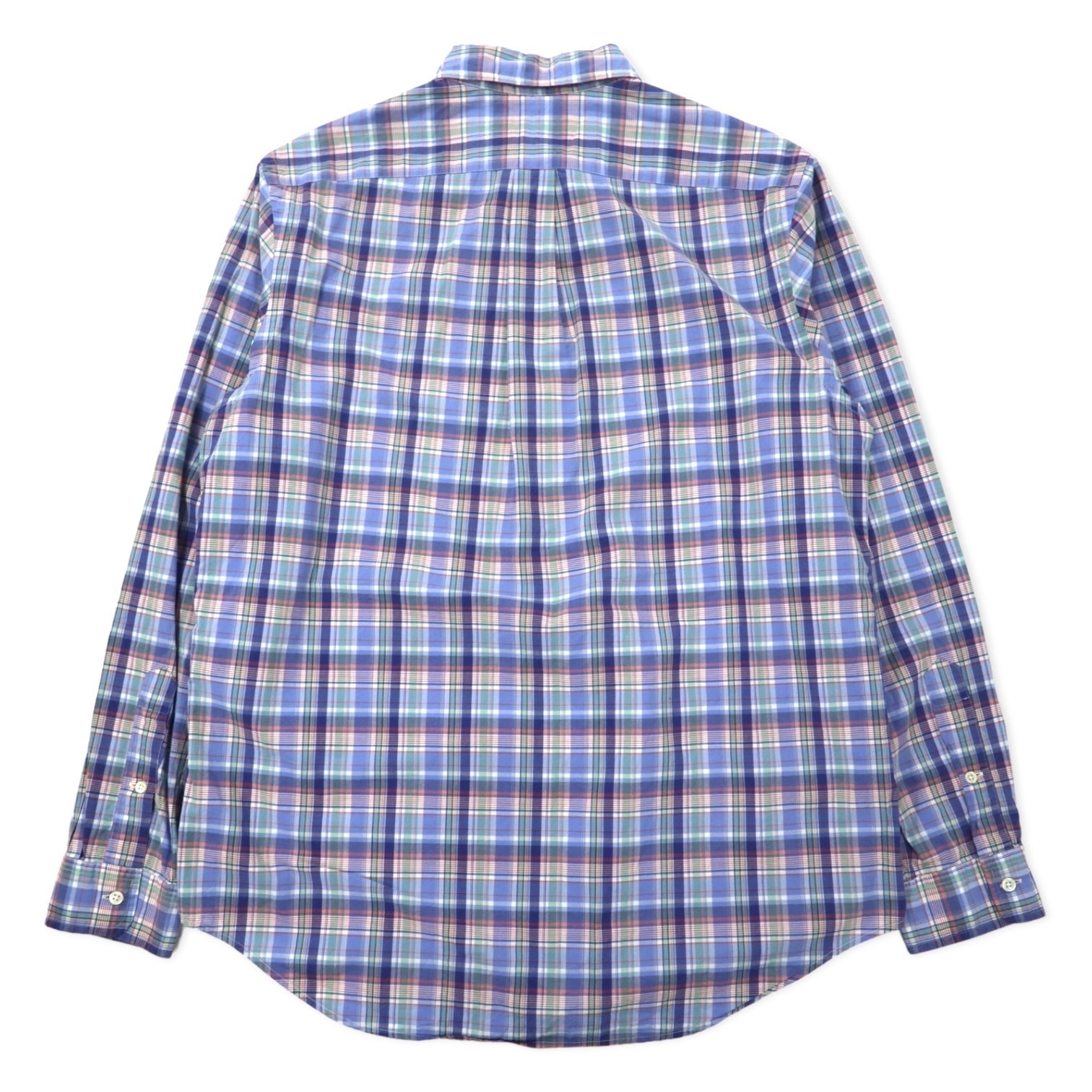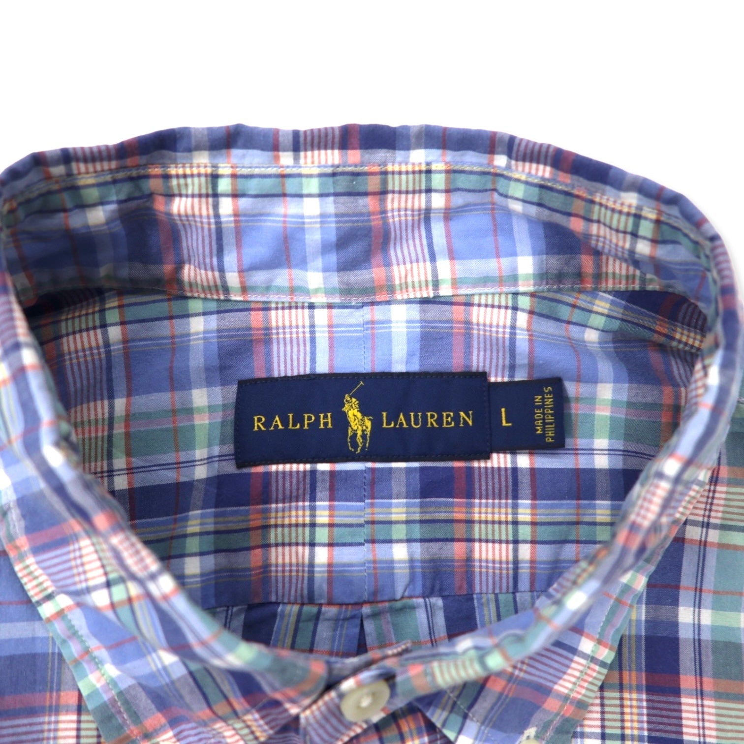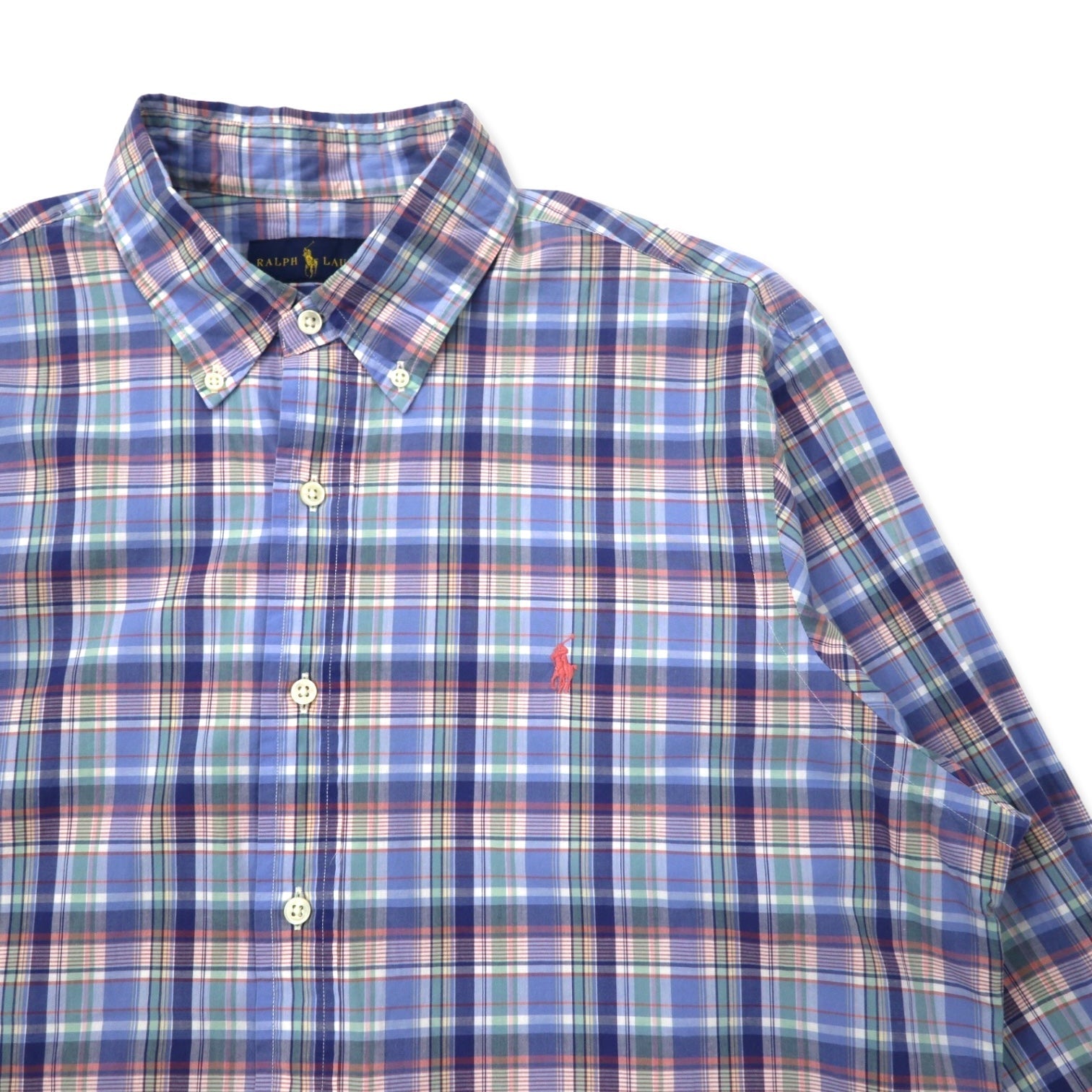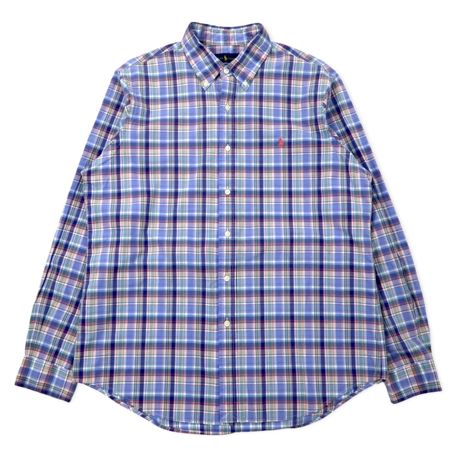 RALPH LAUREN ボタンダウンシャツ L ブルー チェック コットン スモールポニー刺繍