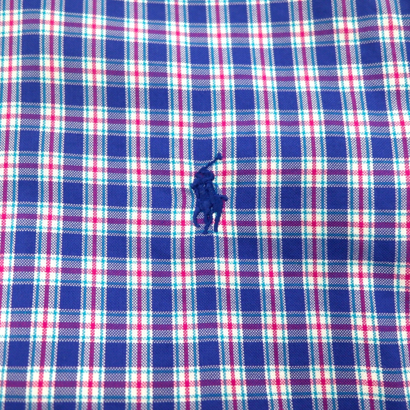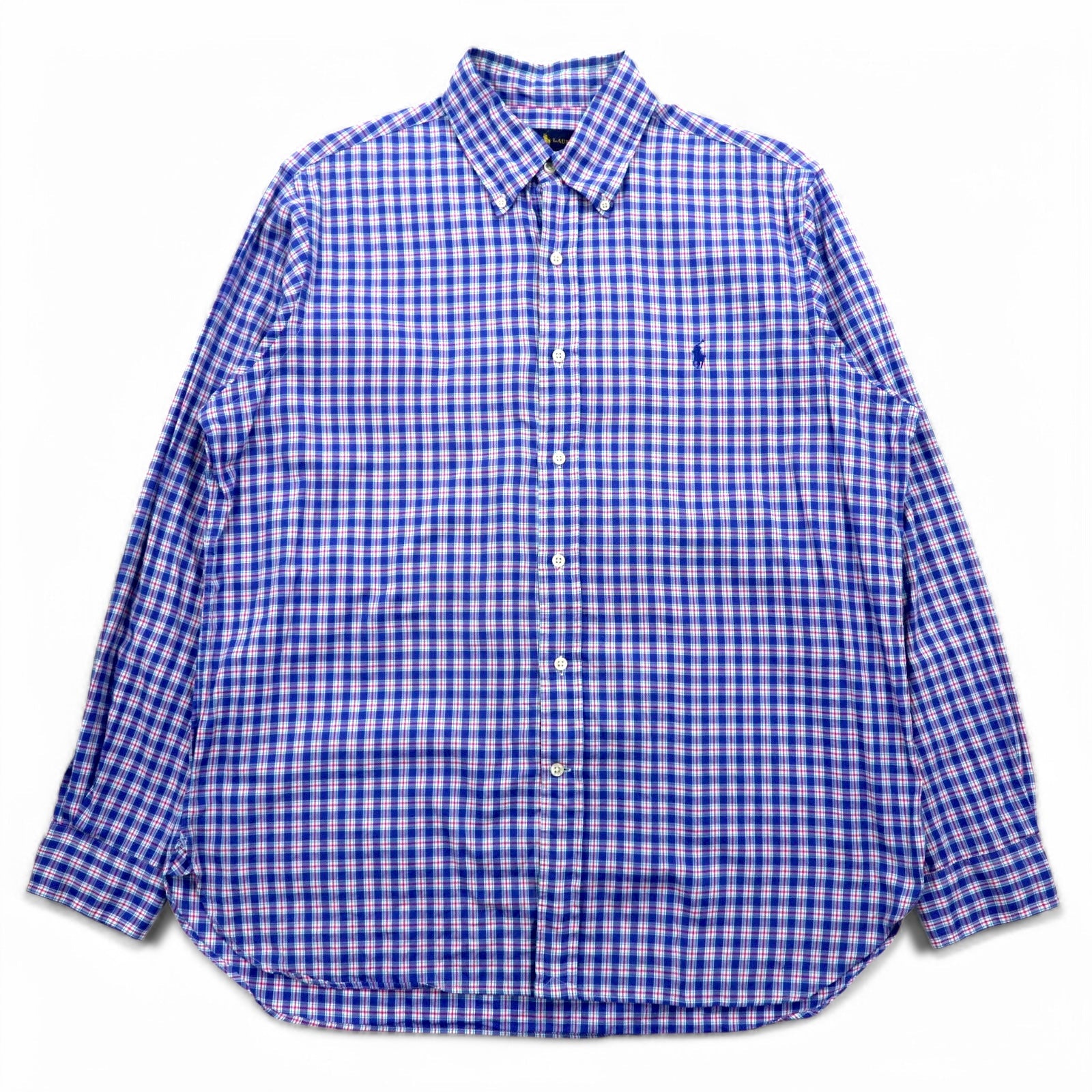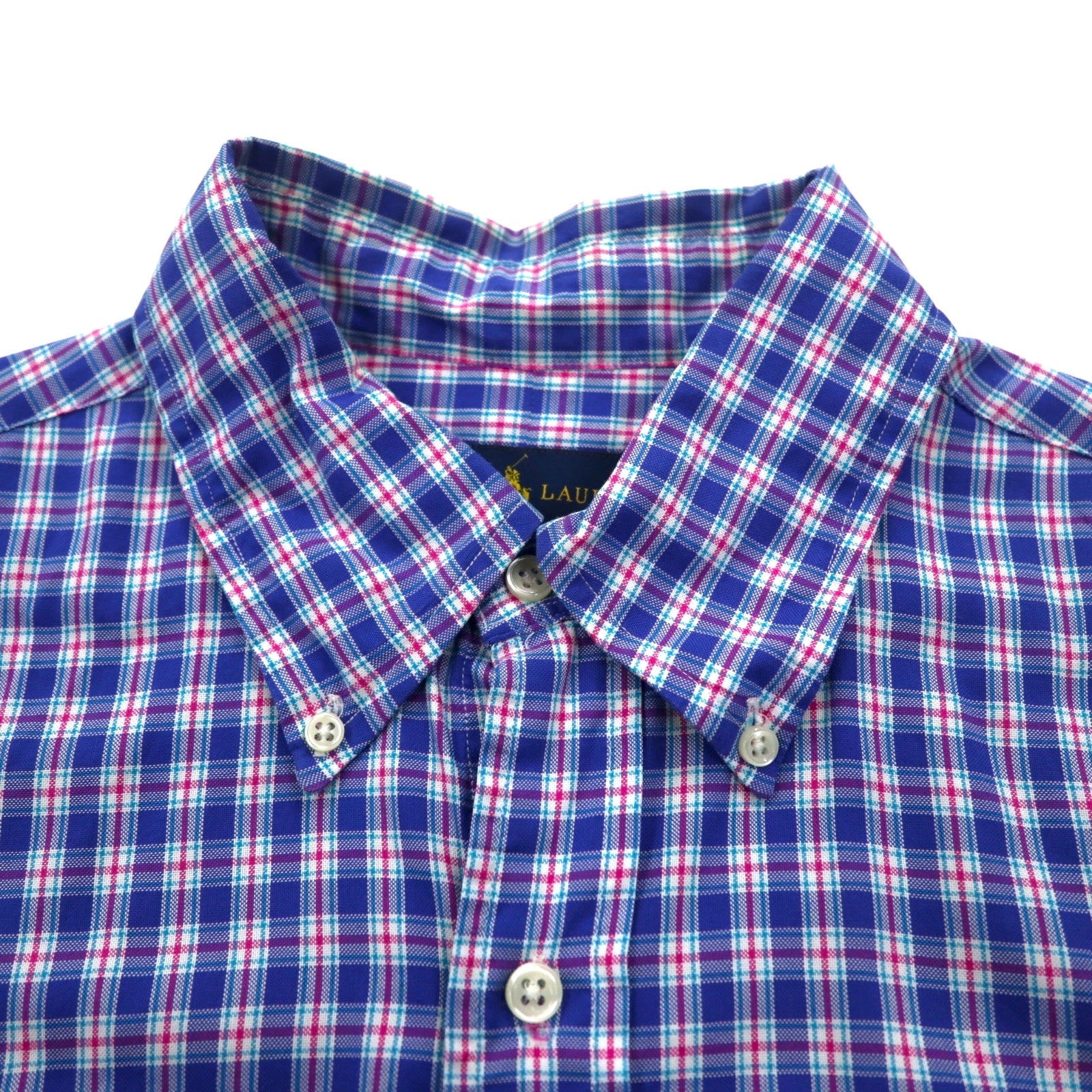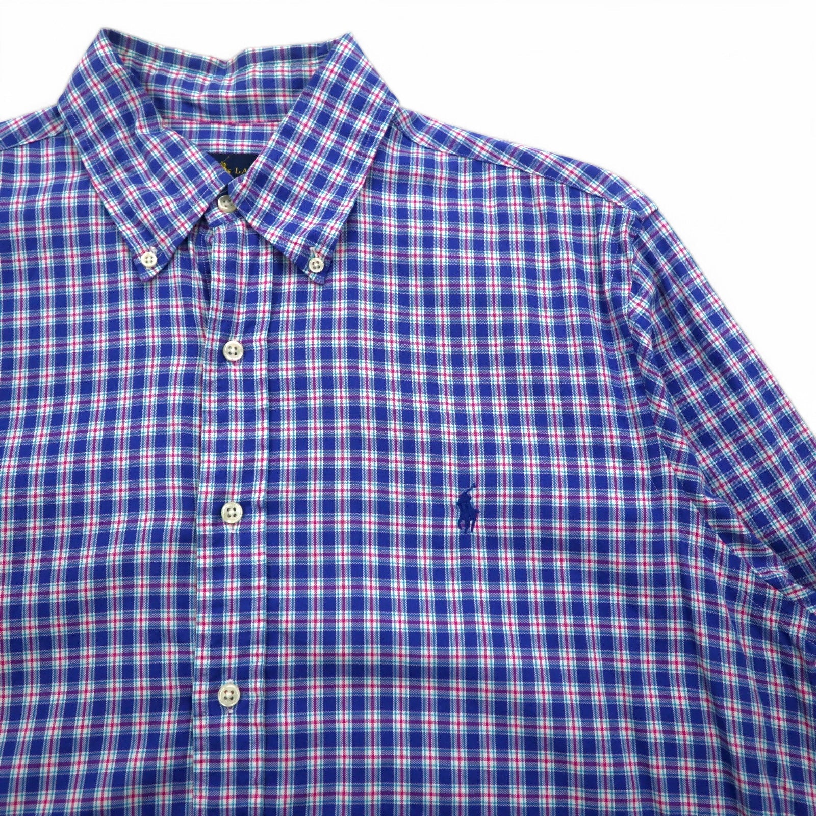 RALPH LAUREN ボタンダウンシャツ L ブルー チェック ビッグサイズ スモールポニー刺繍