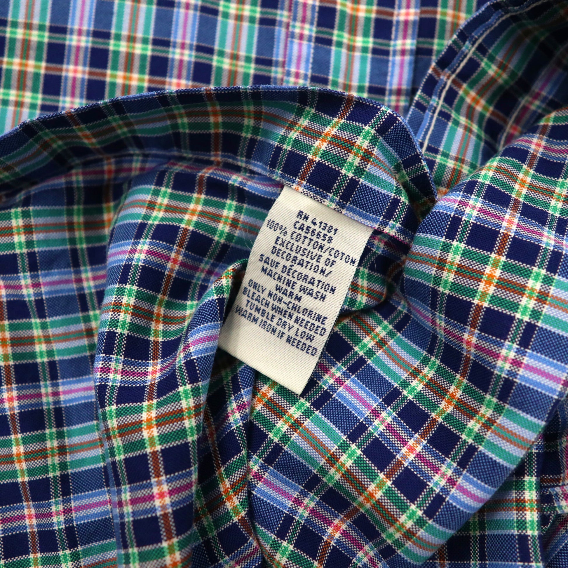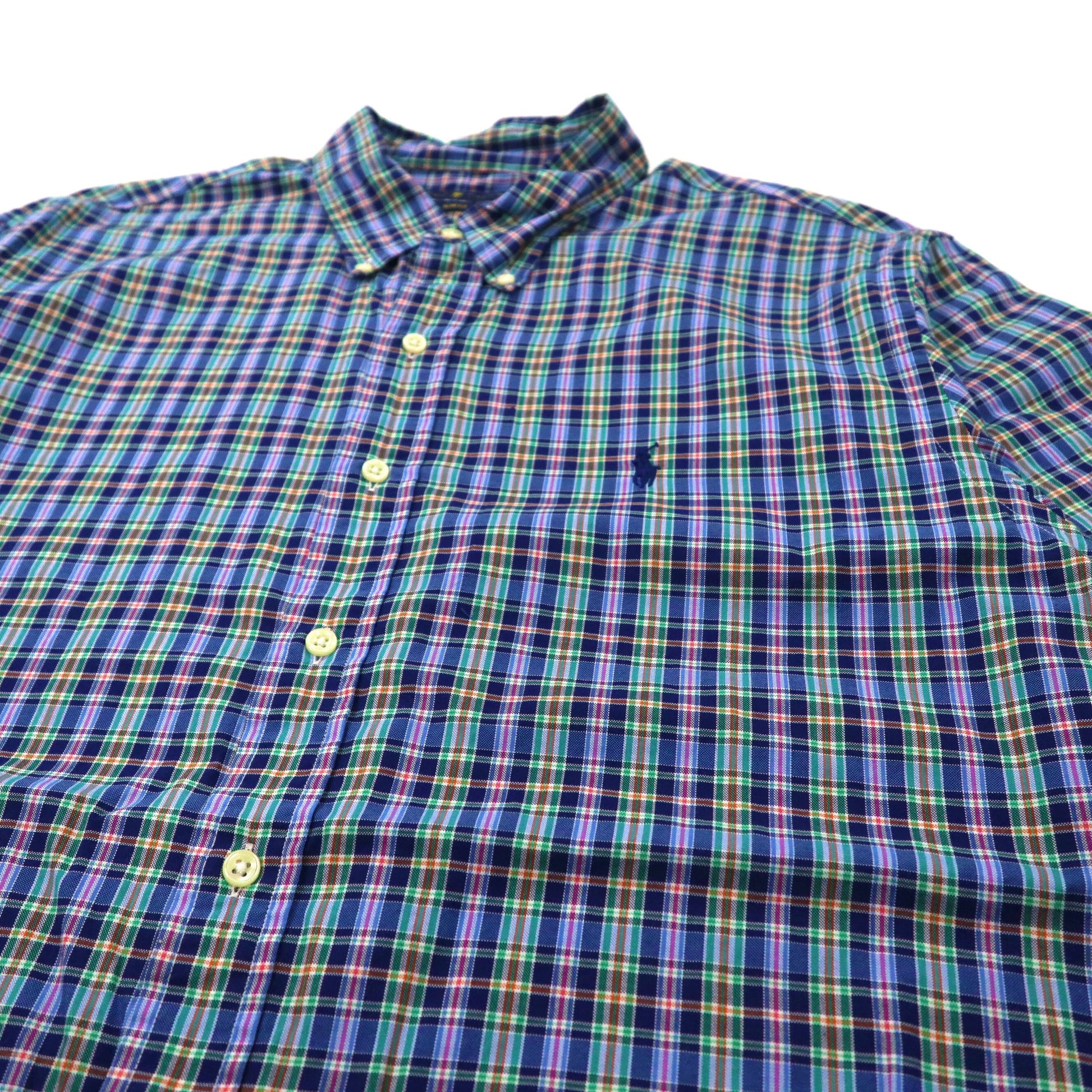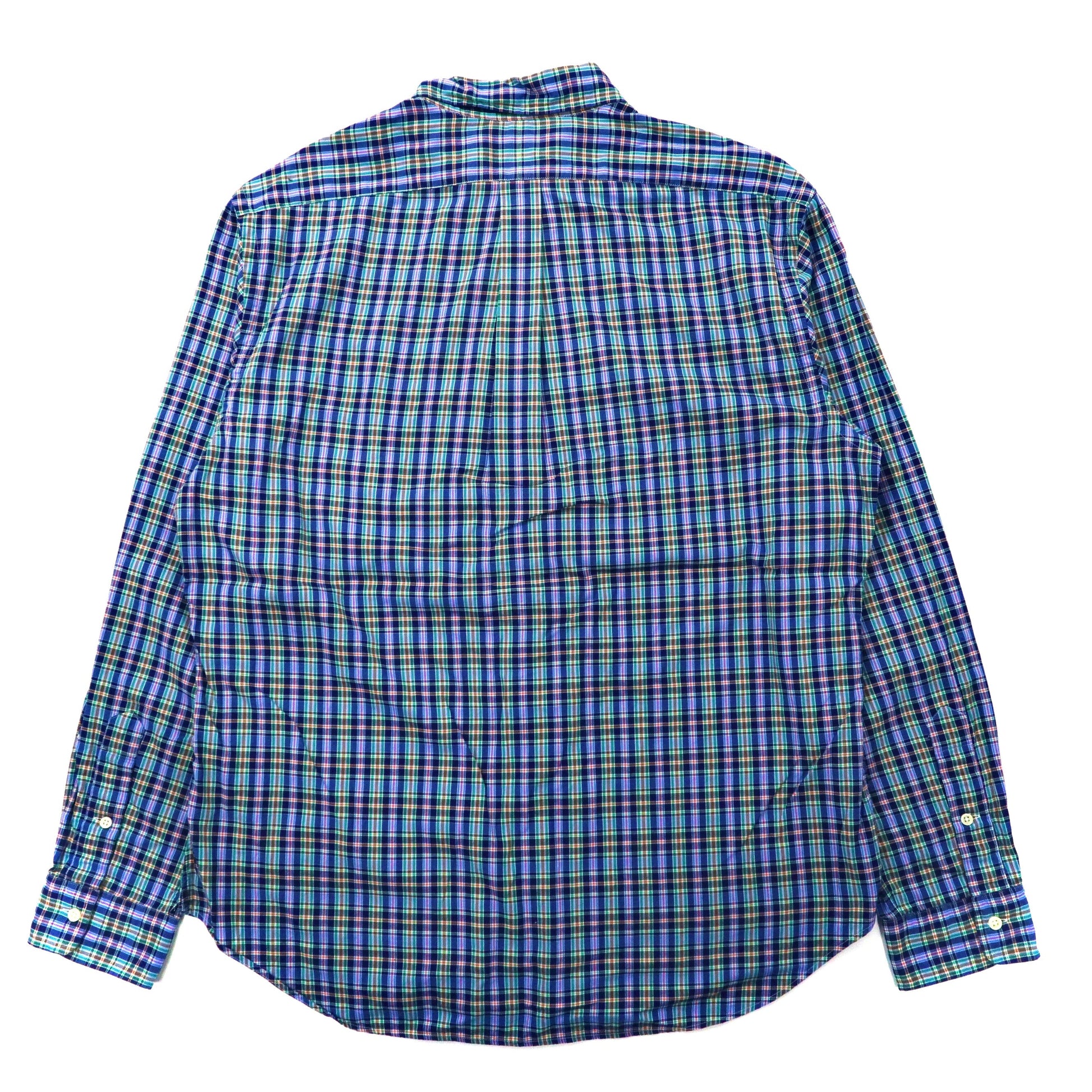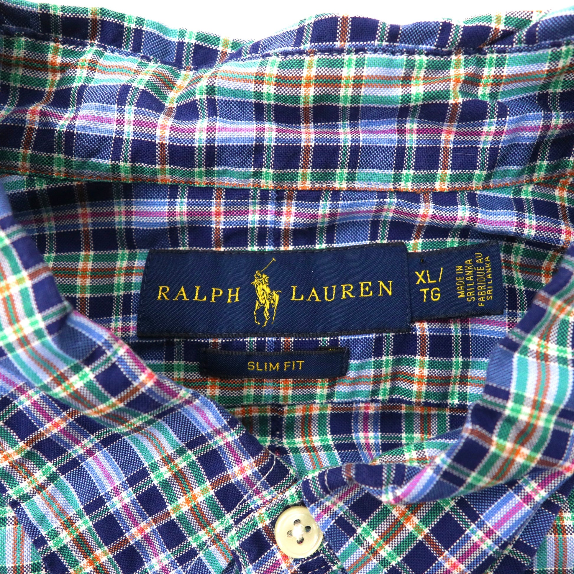 RALPH LAUREN ボタンダウンシャツ XL ブルー チェック コットン SLIM FIT スモールポニー刺繍
