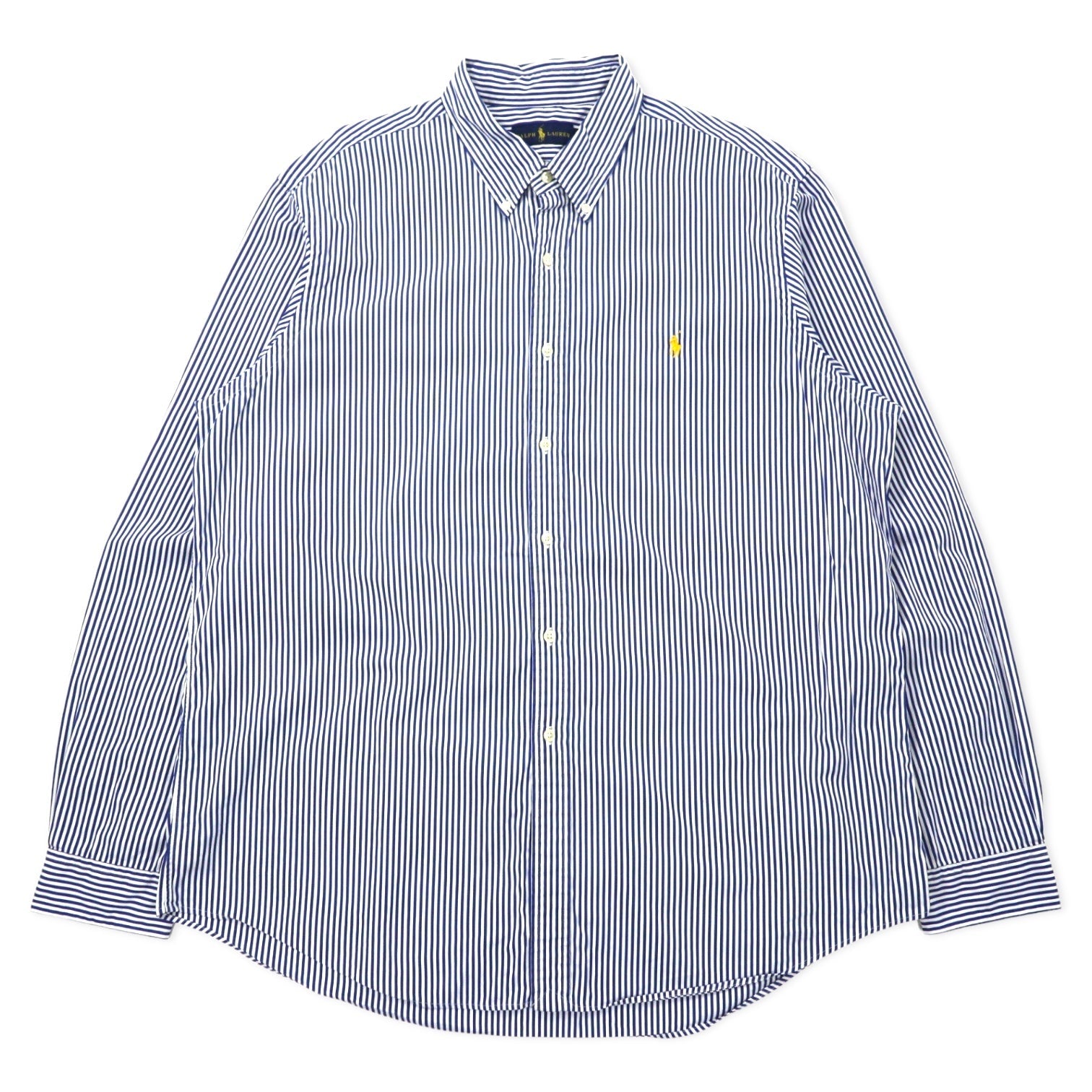 RALPH LAUREN ボタンダウンシャツ XXL ブルー ストライプ コットン スモールポニー刺繍