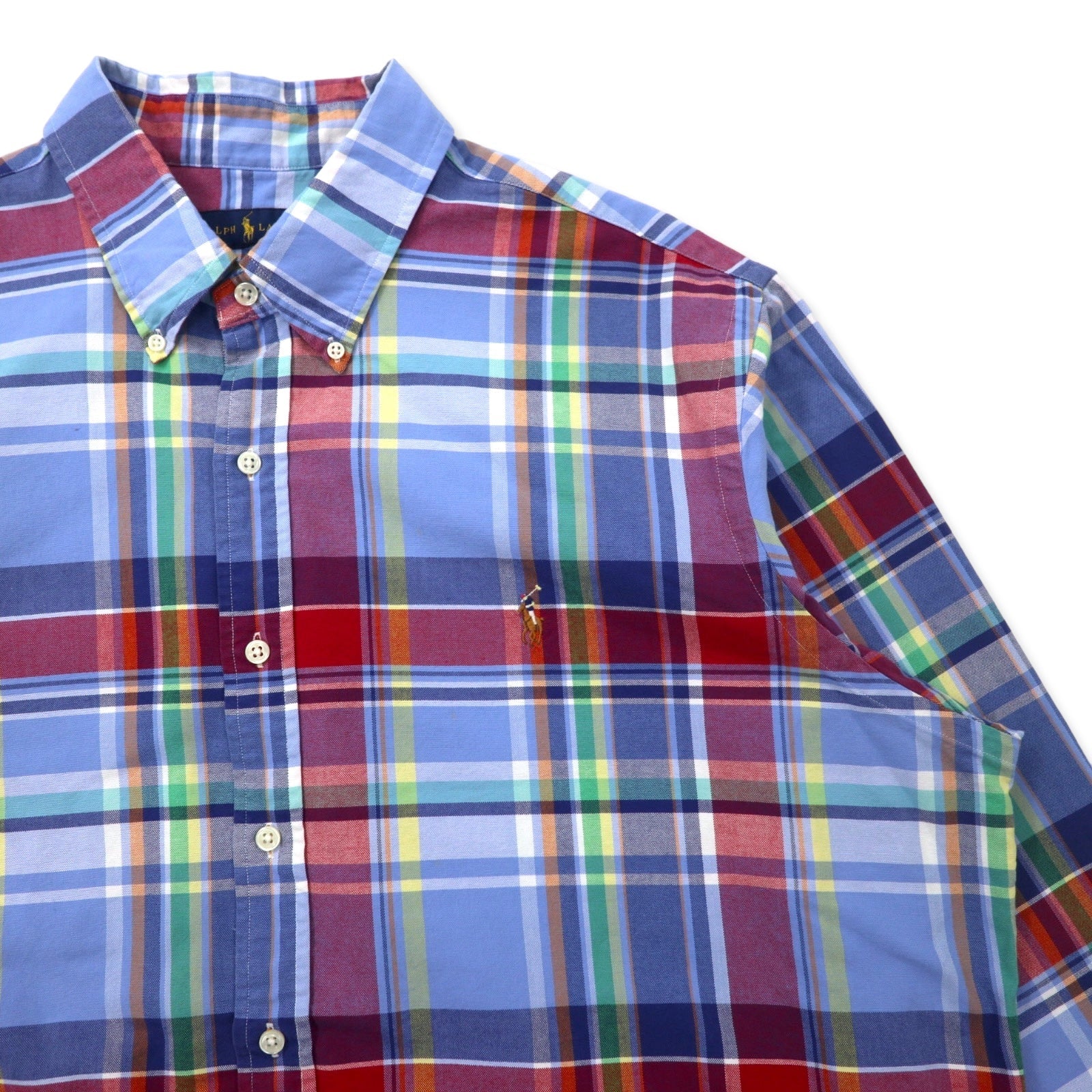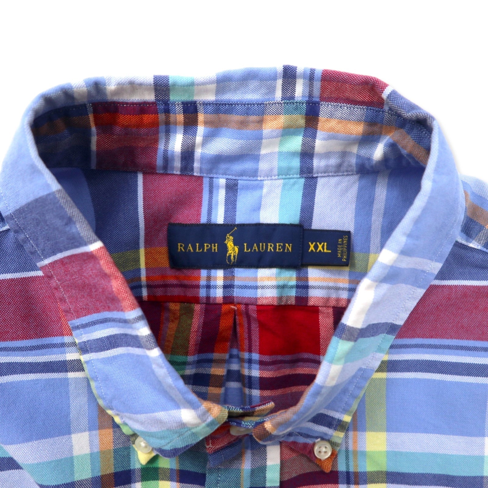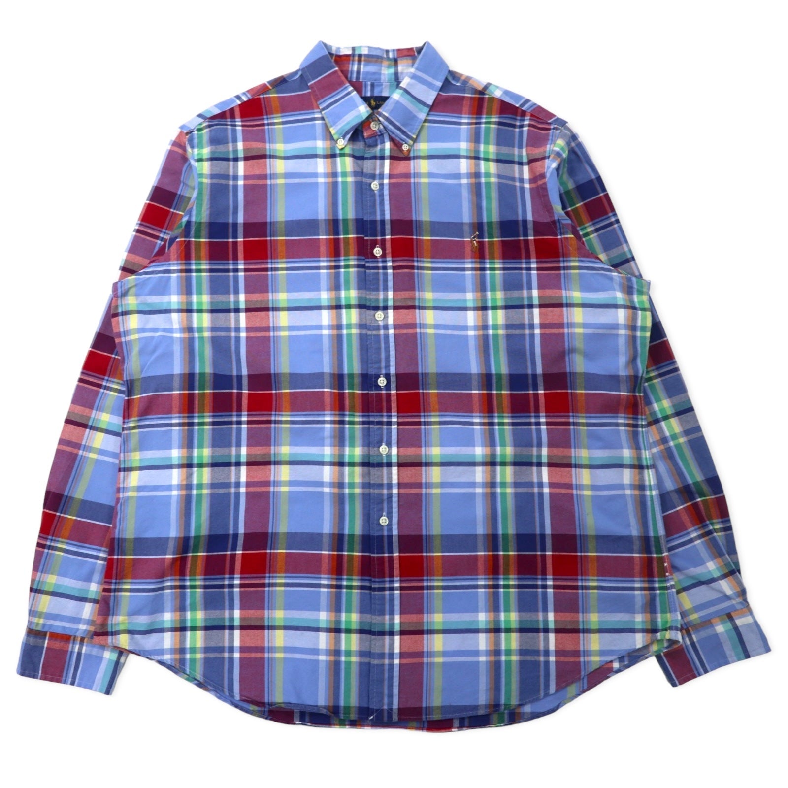 RALPH LAUREN ボタンダウンシャツ XXL ブルー チェック コットン スモールポニー刺繍