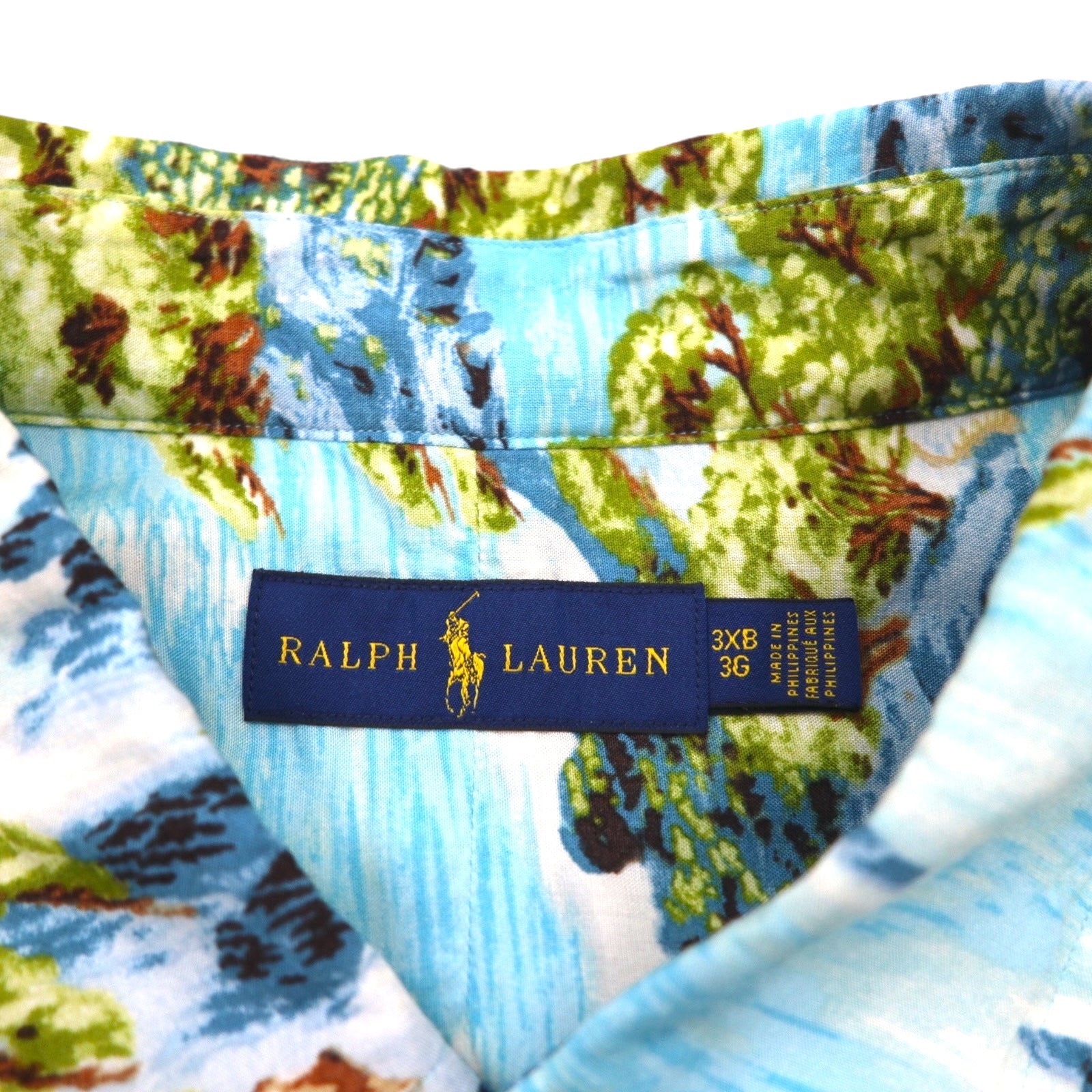 RALPH LAUREN 和柄 ビッグサイズ ボタンダウン アロハシャツ 3XL ブルー レーヨン ビスコース 総柄