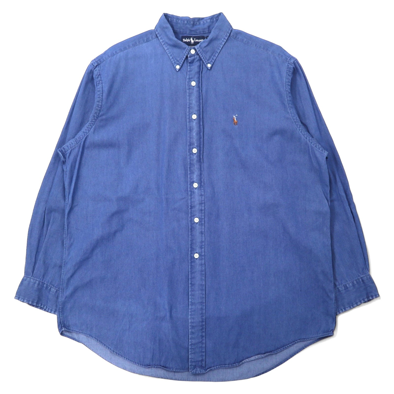 Ralph Lauren 90年代 インディゴ デニム ボタンダウンシャツ 17 34/35 ブルー コットン YARMOUTH スモールポニー 刺繍