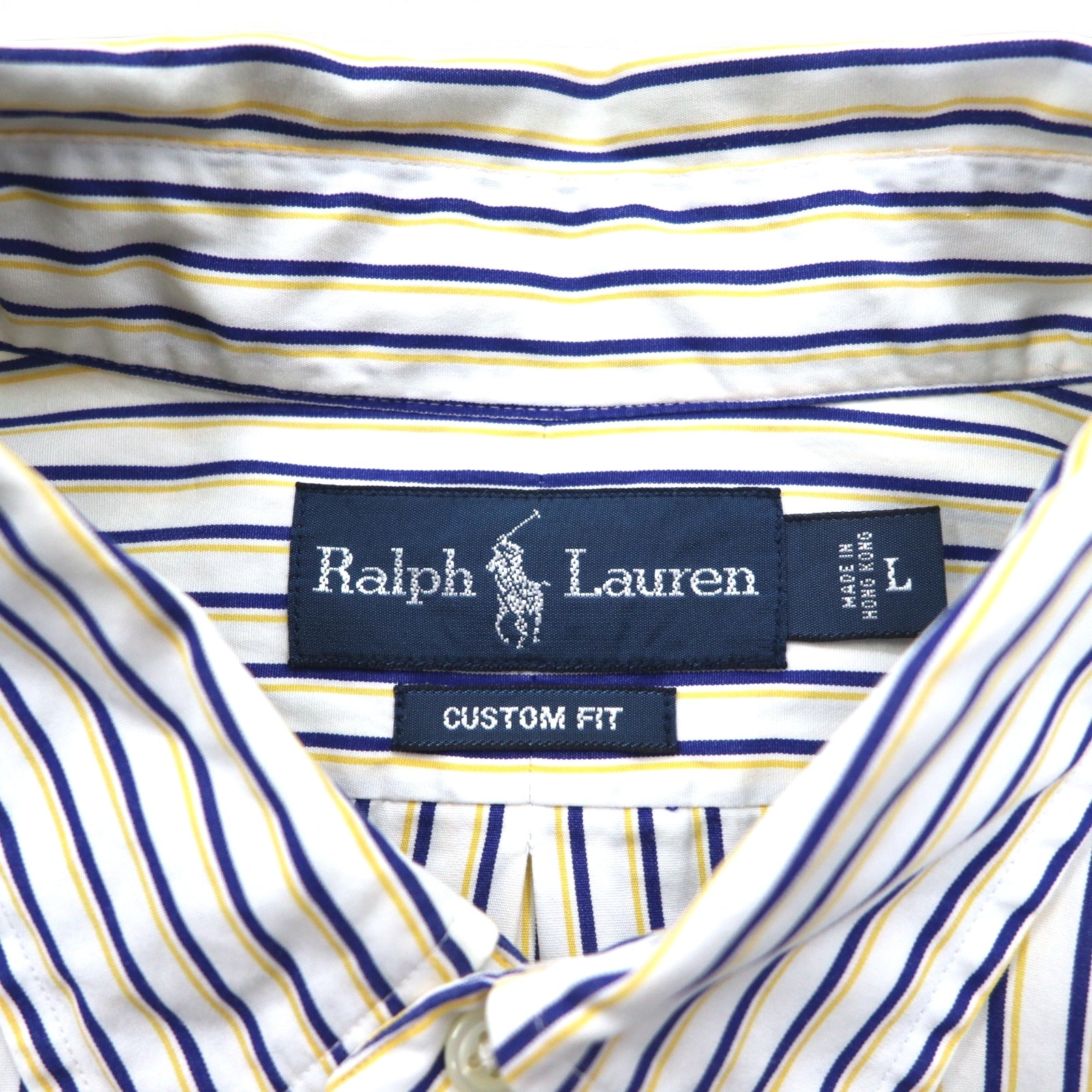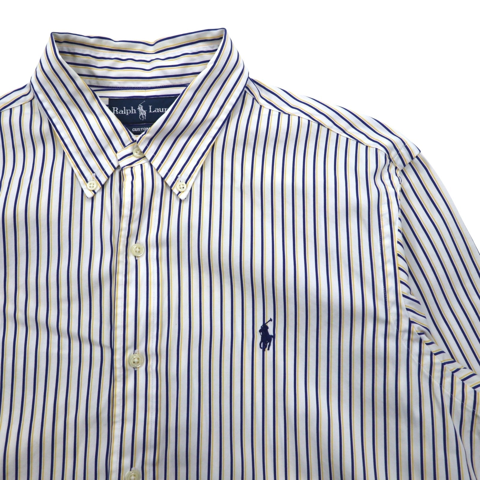 RALPH LAUREN 90年代 ビッグサイズ ボタンダウンシャツ L ホワイト ブルー ストライプ CUSTOM FIT