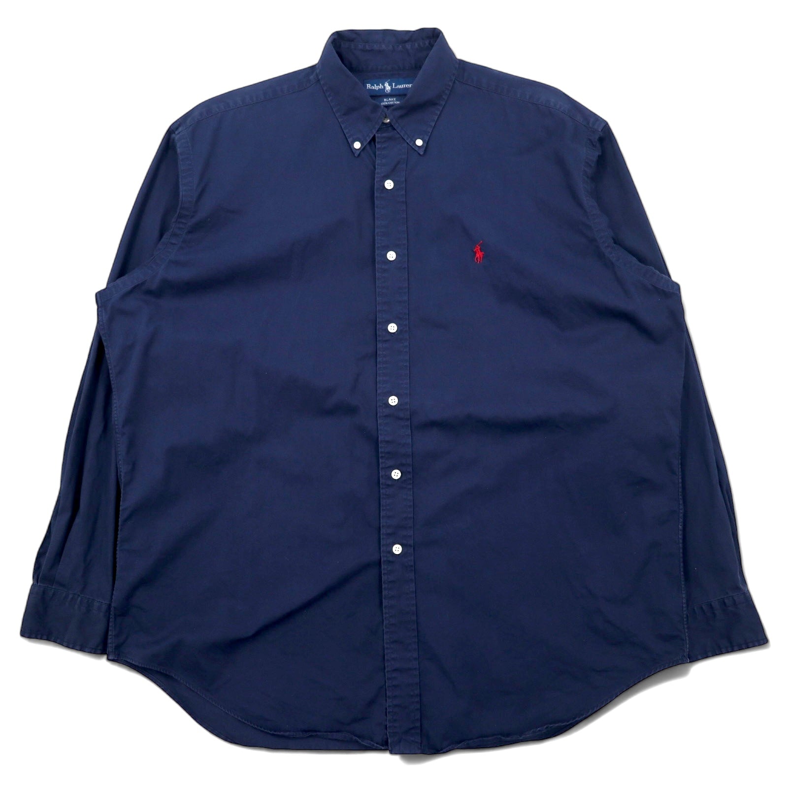 Ralph Lauren 90年代 ボタンダウンシャツ L ネイビー コットン BLAKE スモールポニー 刺繍