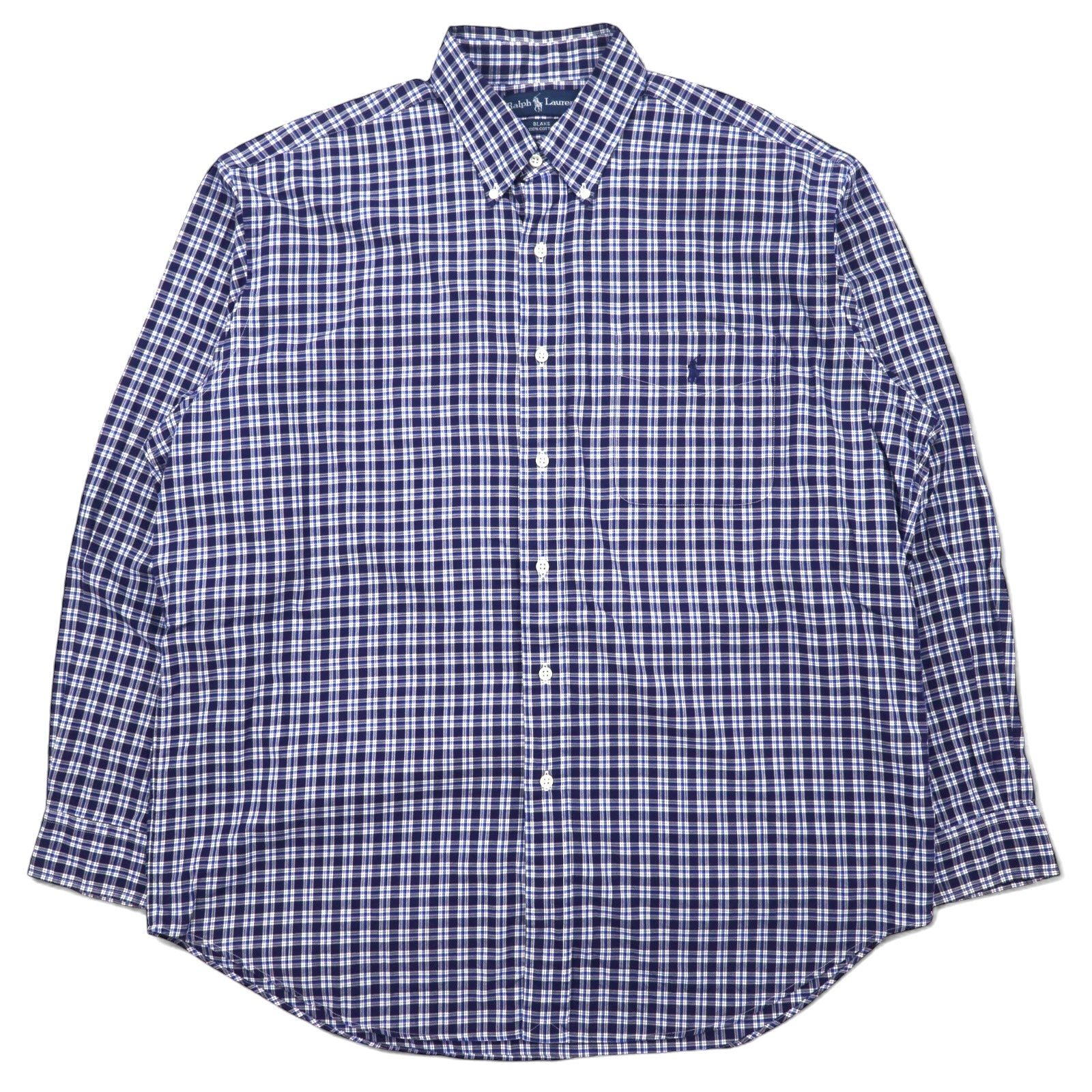 RALPH LAUREN 90年代 ボタンダウンシャツ L ブルー チェック コットン BLAKE スモールポニー 刺繍