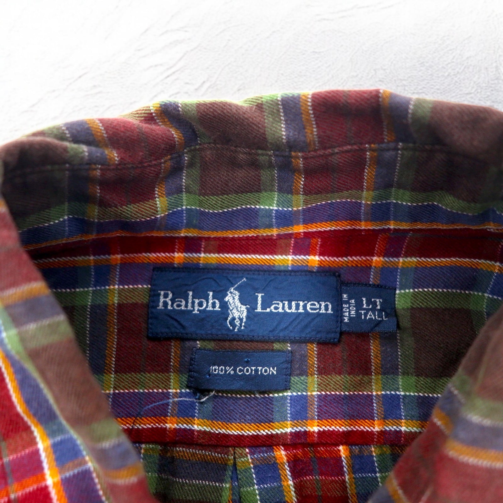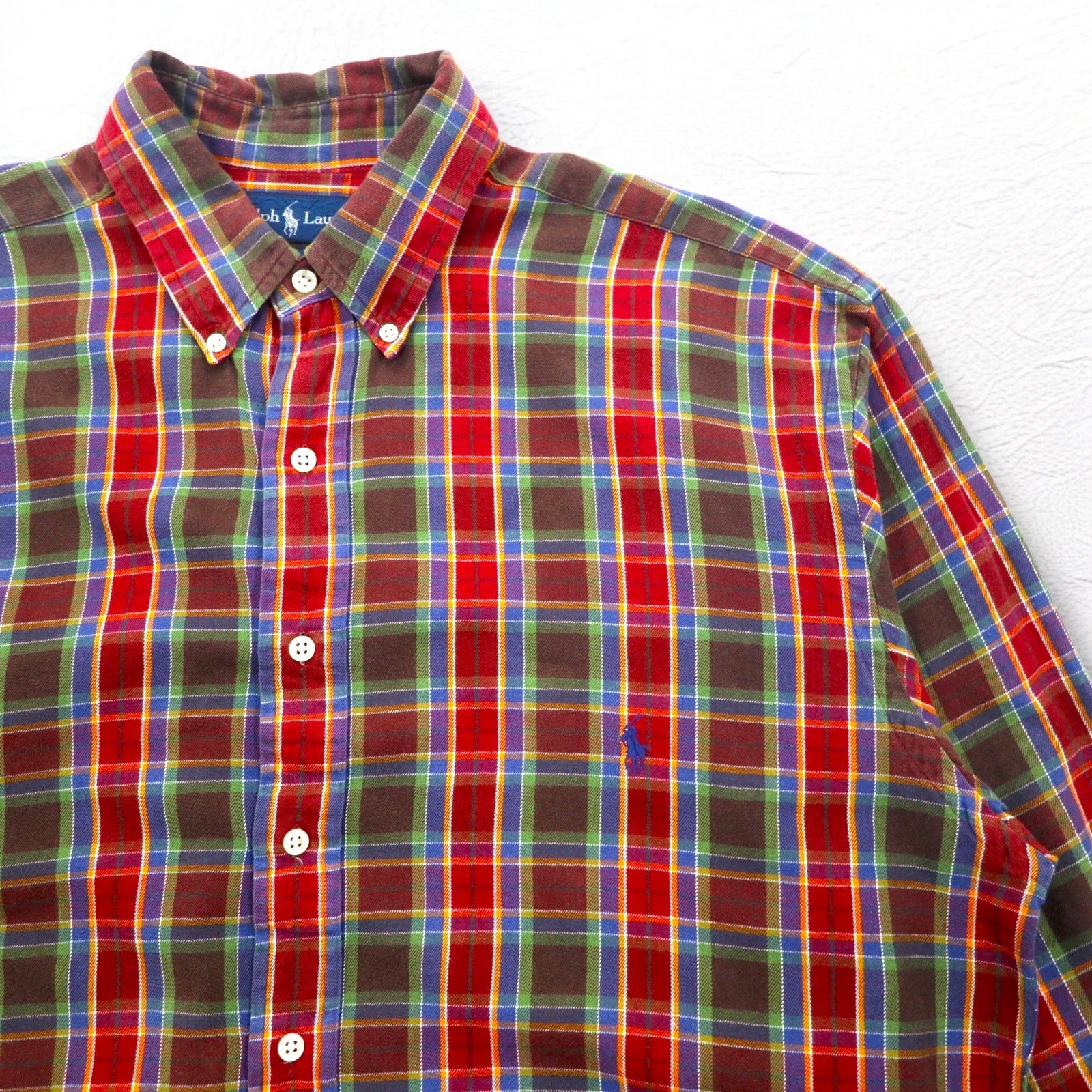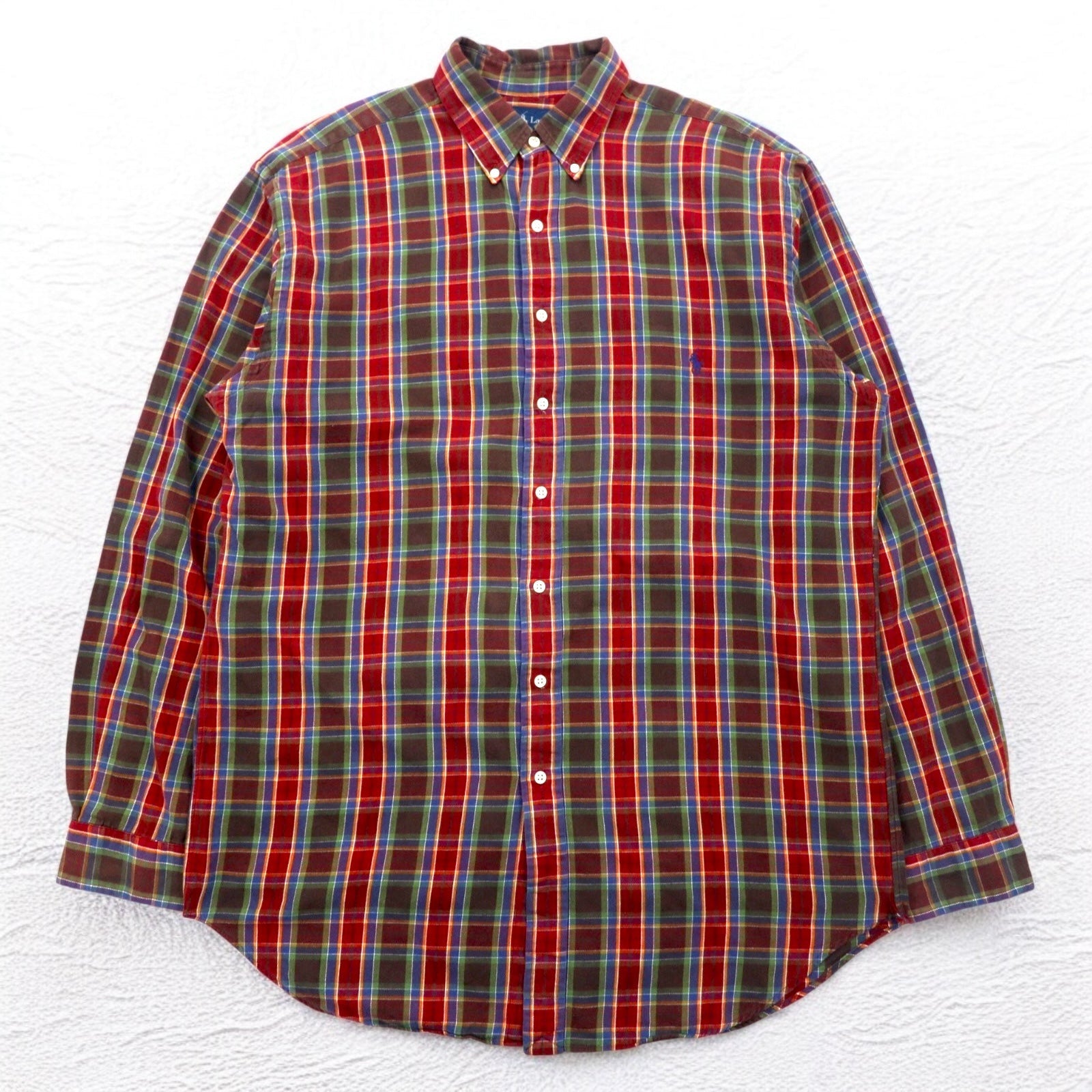Ralph Lauren 90年代 ボタンダウンシャツ L TALL レッド チェック スモールポニー刺繍 ビッグサイズ