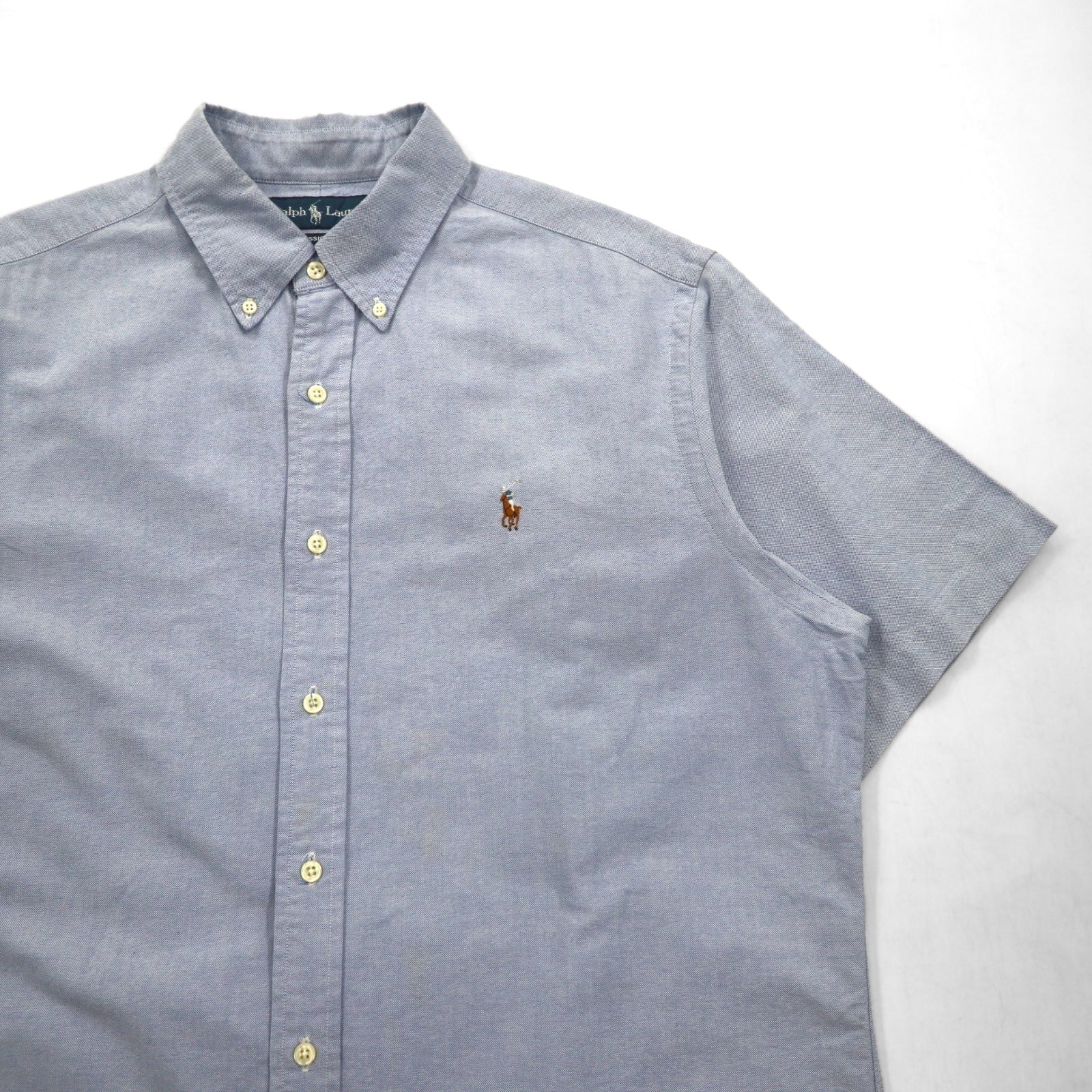 Ralph Lauren 90年代 半袖 オックスフォード ボタンダウンシャツ L ブルー スモールポニー刺繍