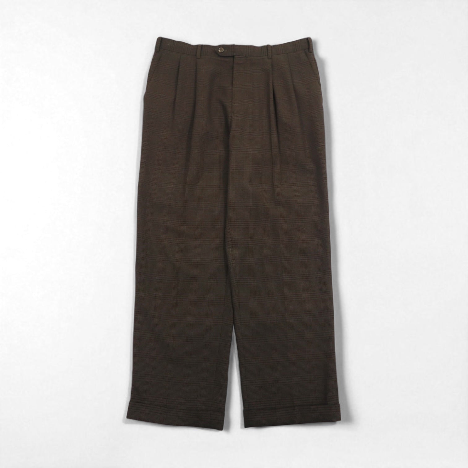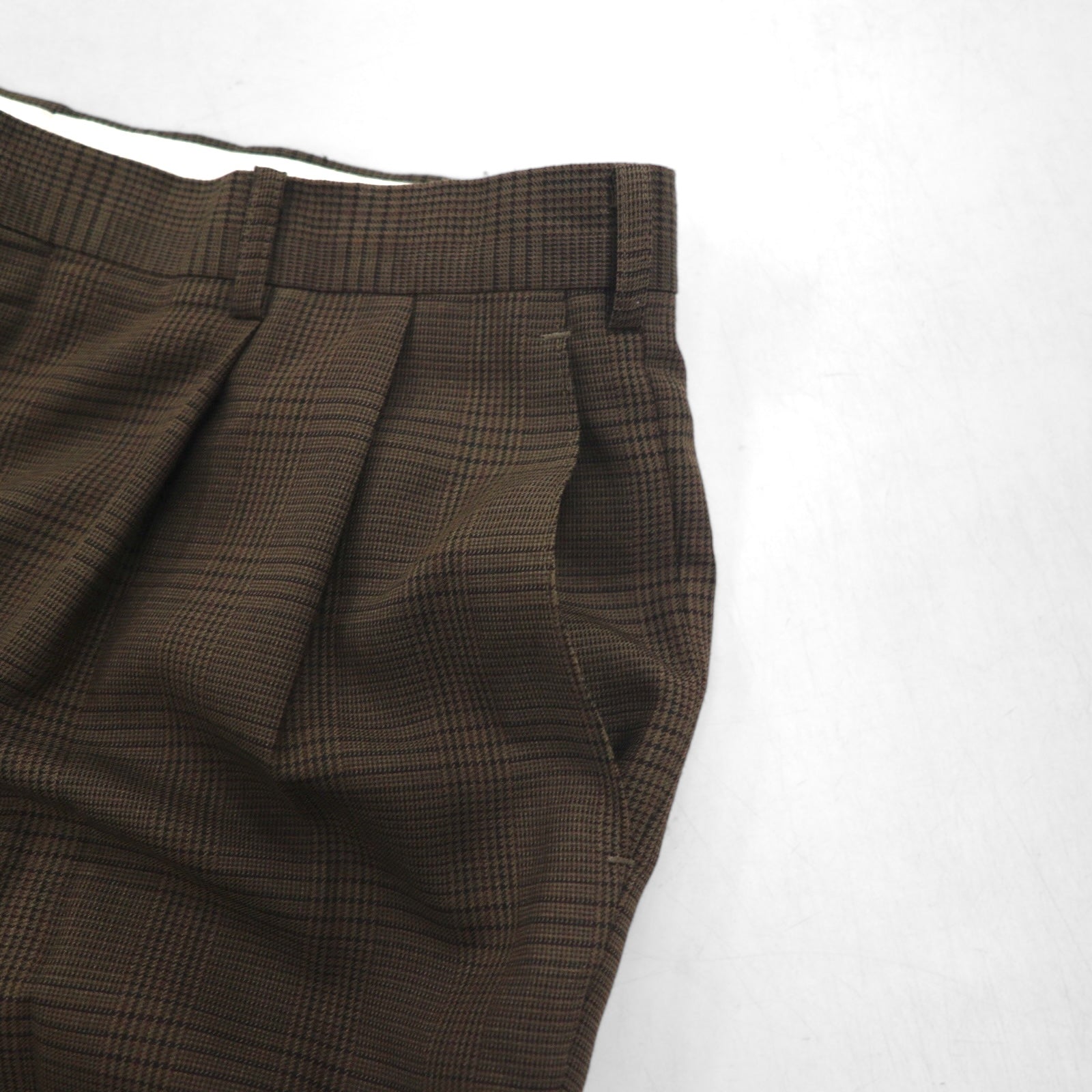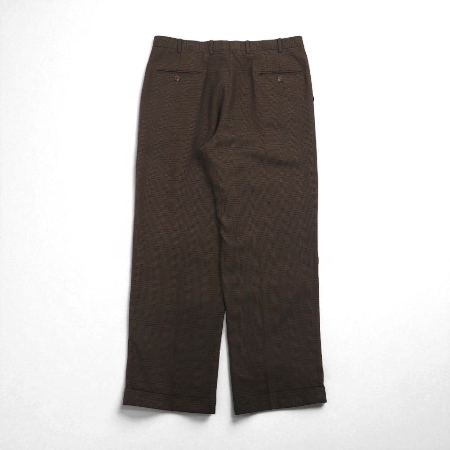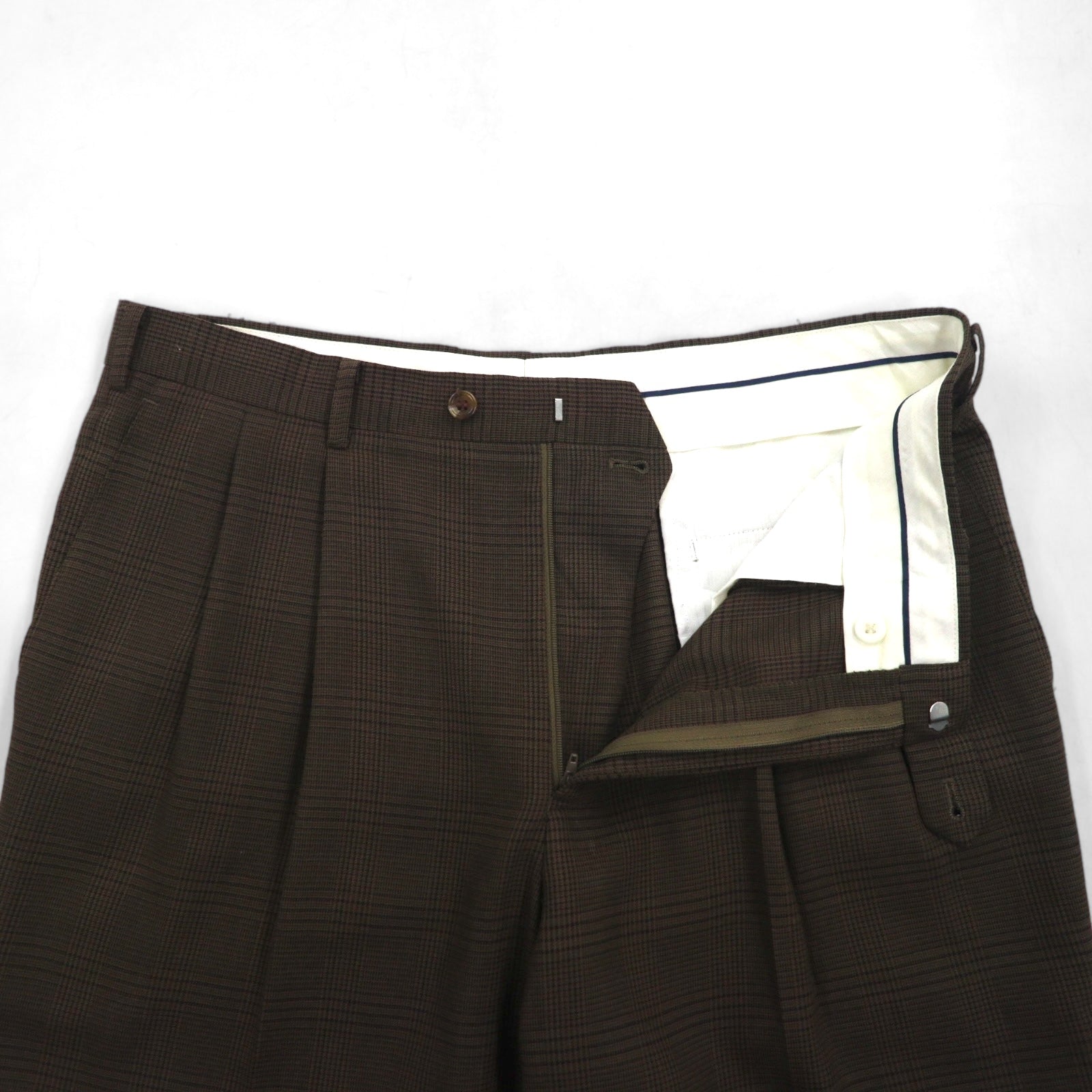 RALPH LAUREN 90年代 2タック ワイド スラックスパンツ L ブラウン チェック ポリエステル