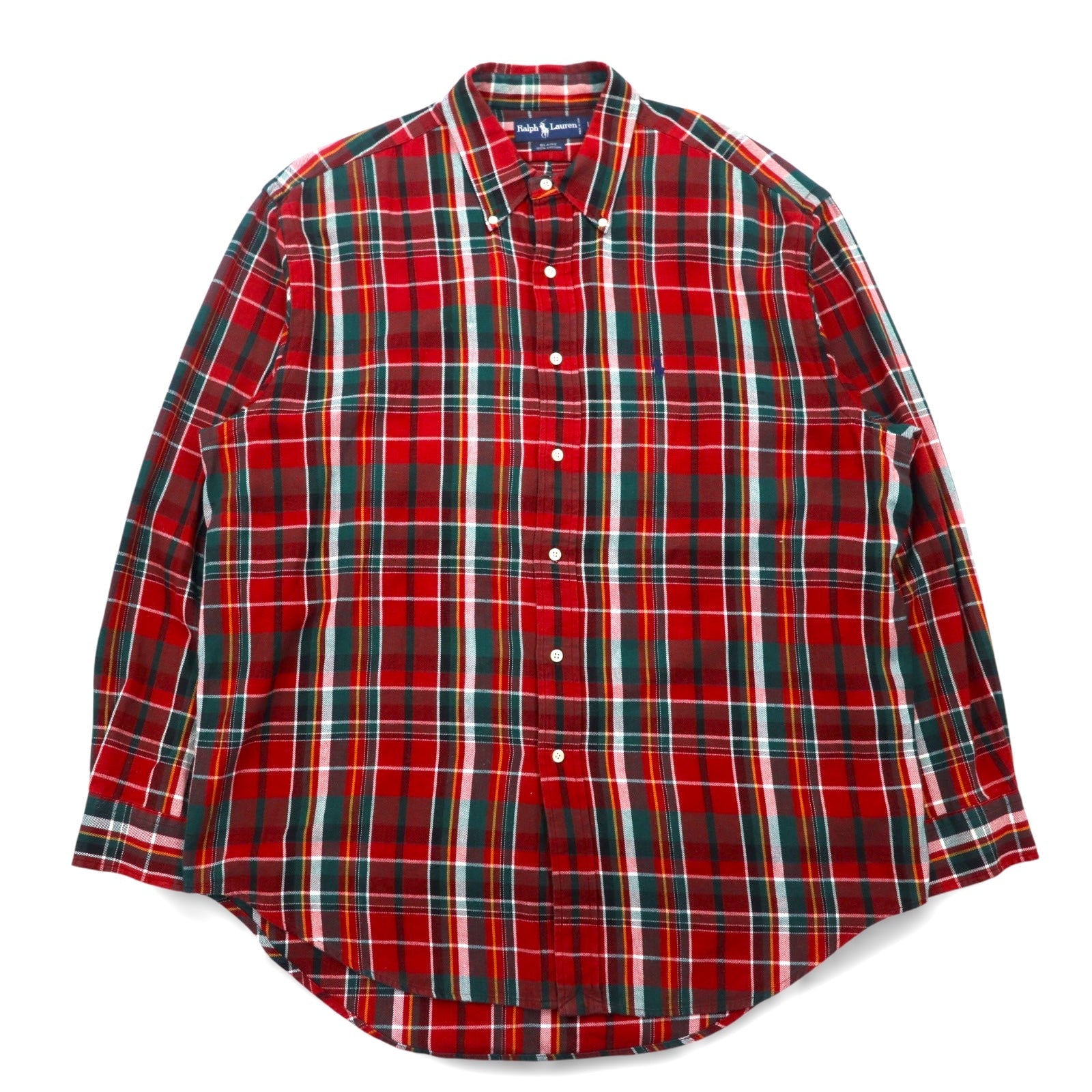 RALPH LAUREN 90年代 BLAIRE ボタンダウン フランネルシャツ L レッド チェック スモールポニー刺繍