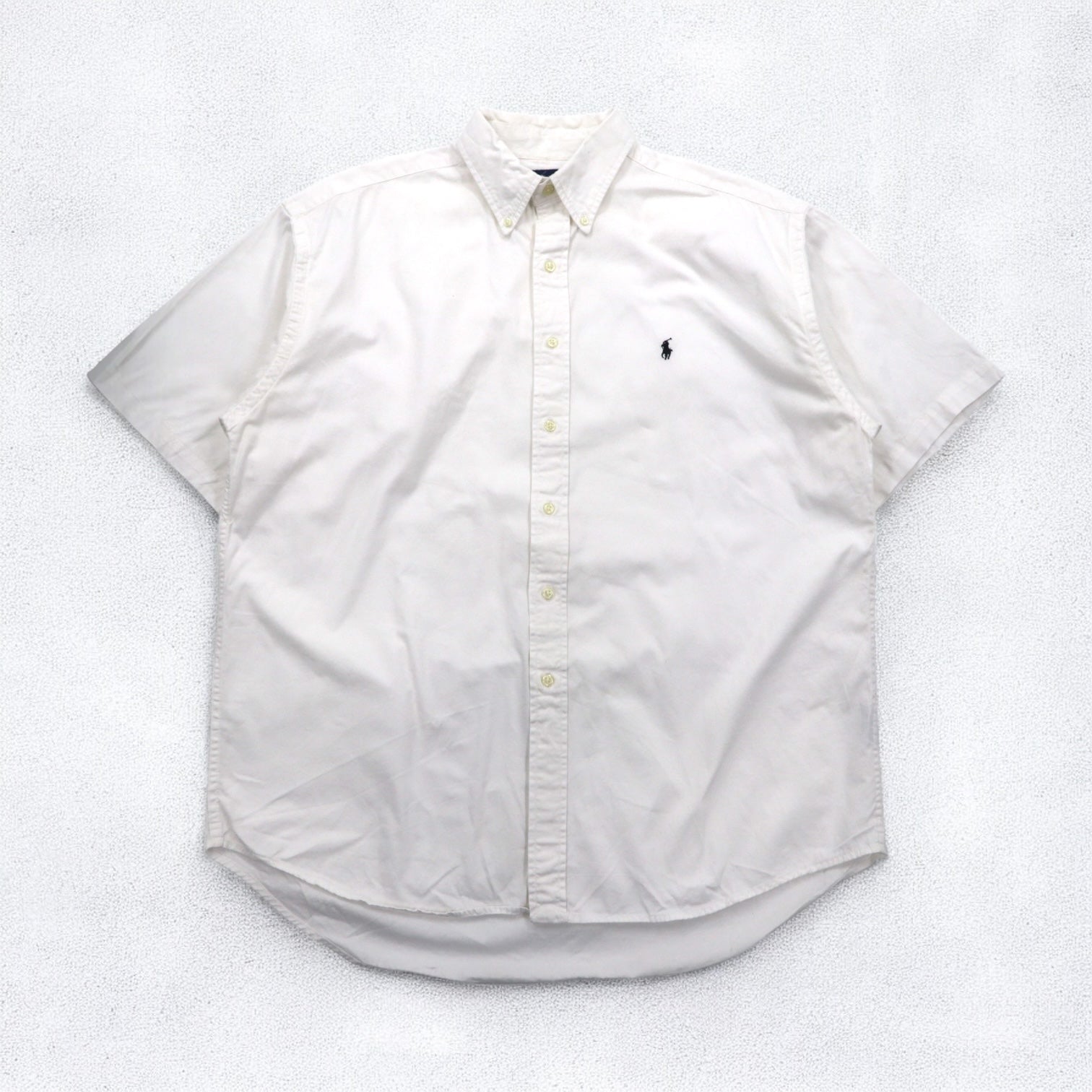 Ralph Lauren 90年代 BLAKE 半袖 オックスフォード ボタンダウンシャツ XL ホワイト スモールポニー刺繍