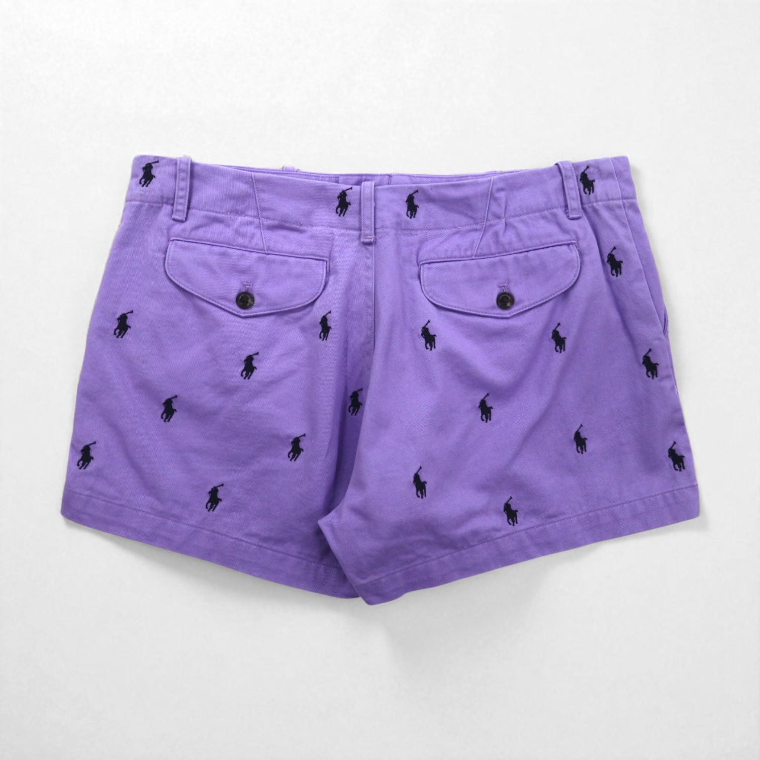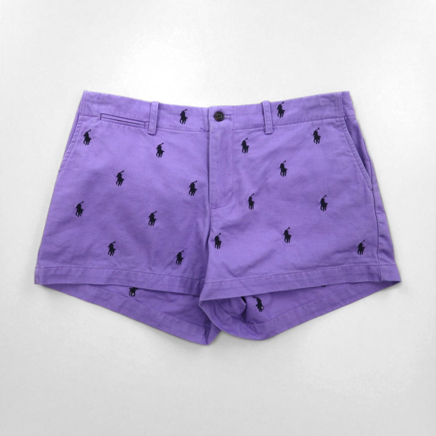 RALPH LAUREN SPORT 90年代 ショートパンツ M パープル 総柄 オールオーバーポニー 刺繍