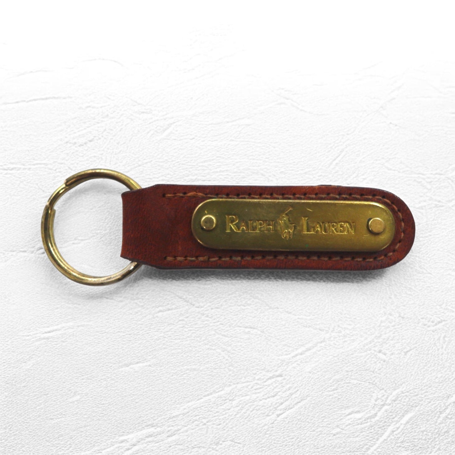 RALPH LAUREN USA製 レザー キーリング キーホルダー ブラウン メタルプレート 未使用品