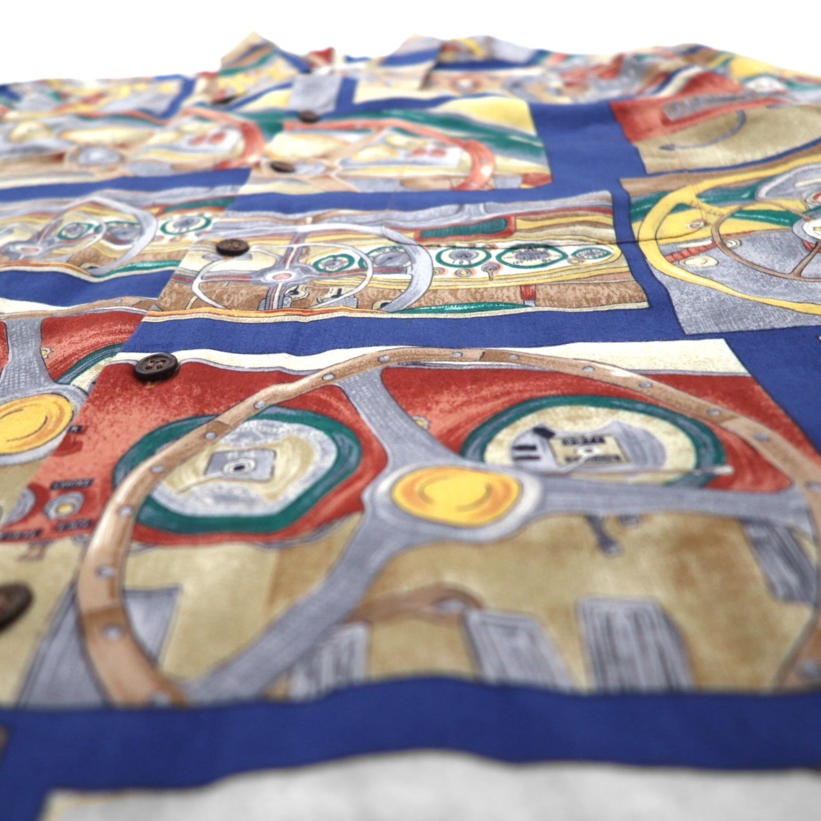 Rayn SPOONER 80年代 ハワイ製 ダイヤモンドヘッドタグ AMERICAN CLASSICS アロハシャツ L ネイビー EGYPTIAN COTTON