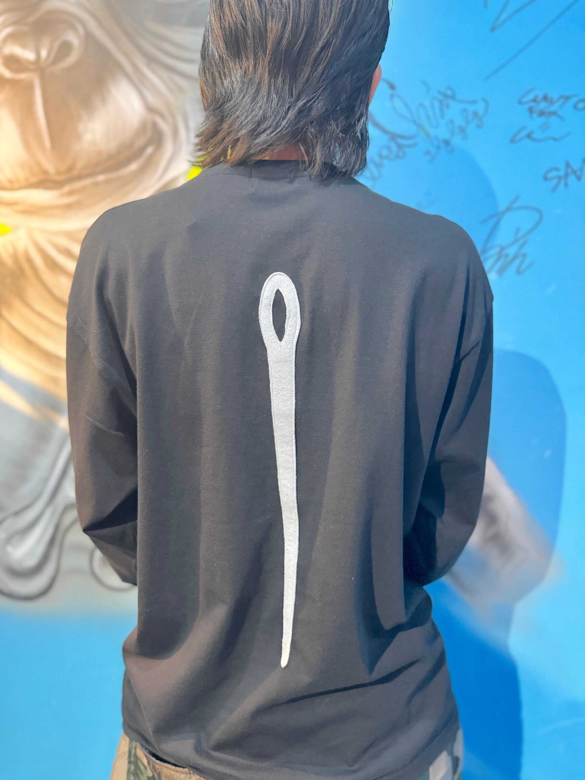 フロントに配置した一点モノのロングスリーブ Tシャツ。