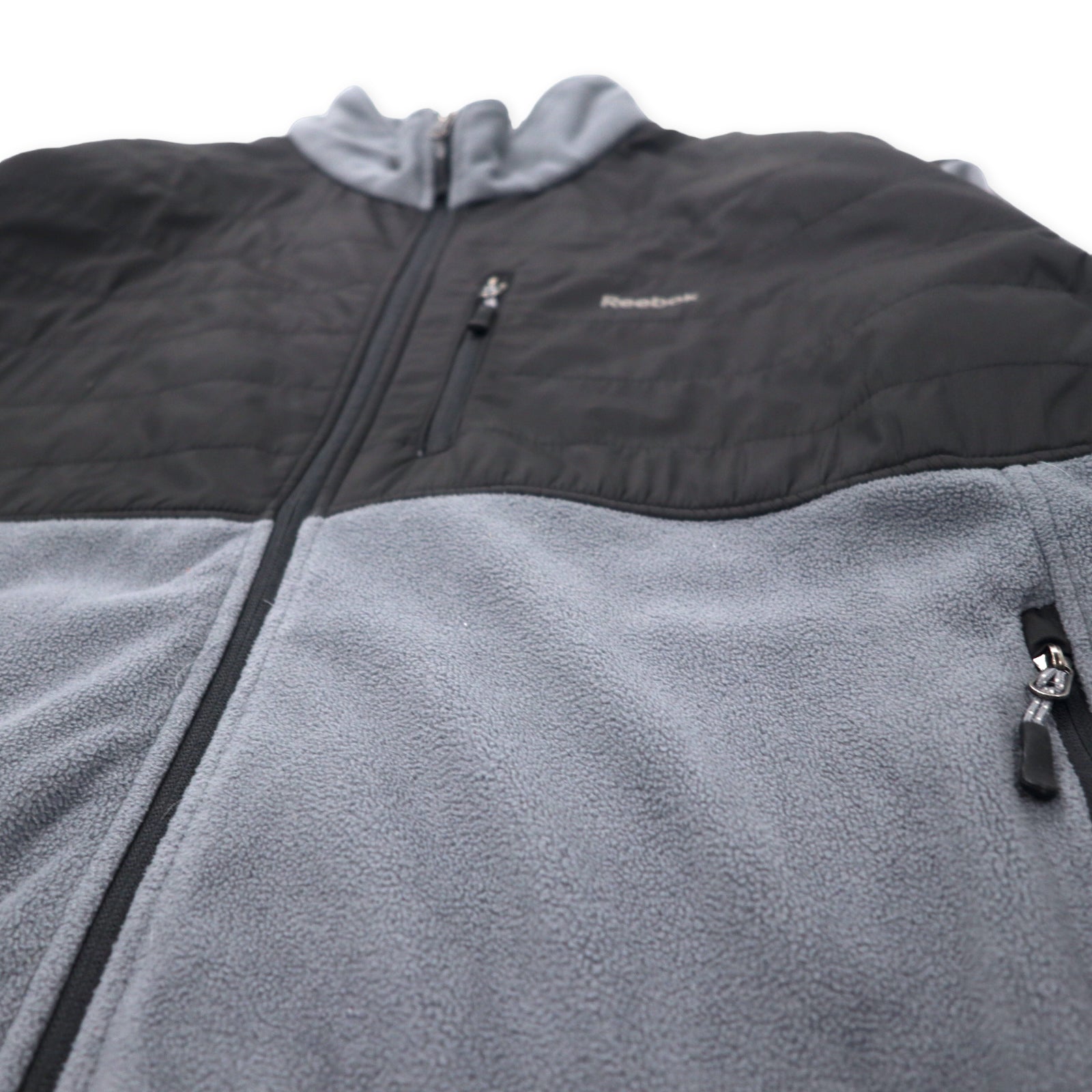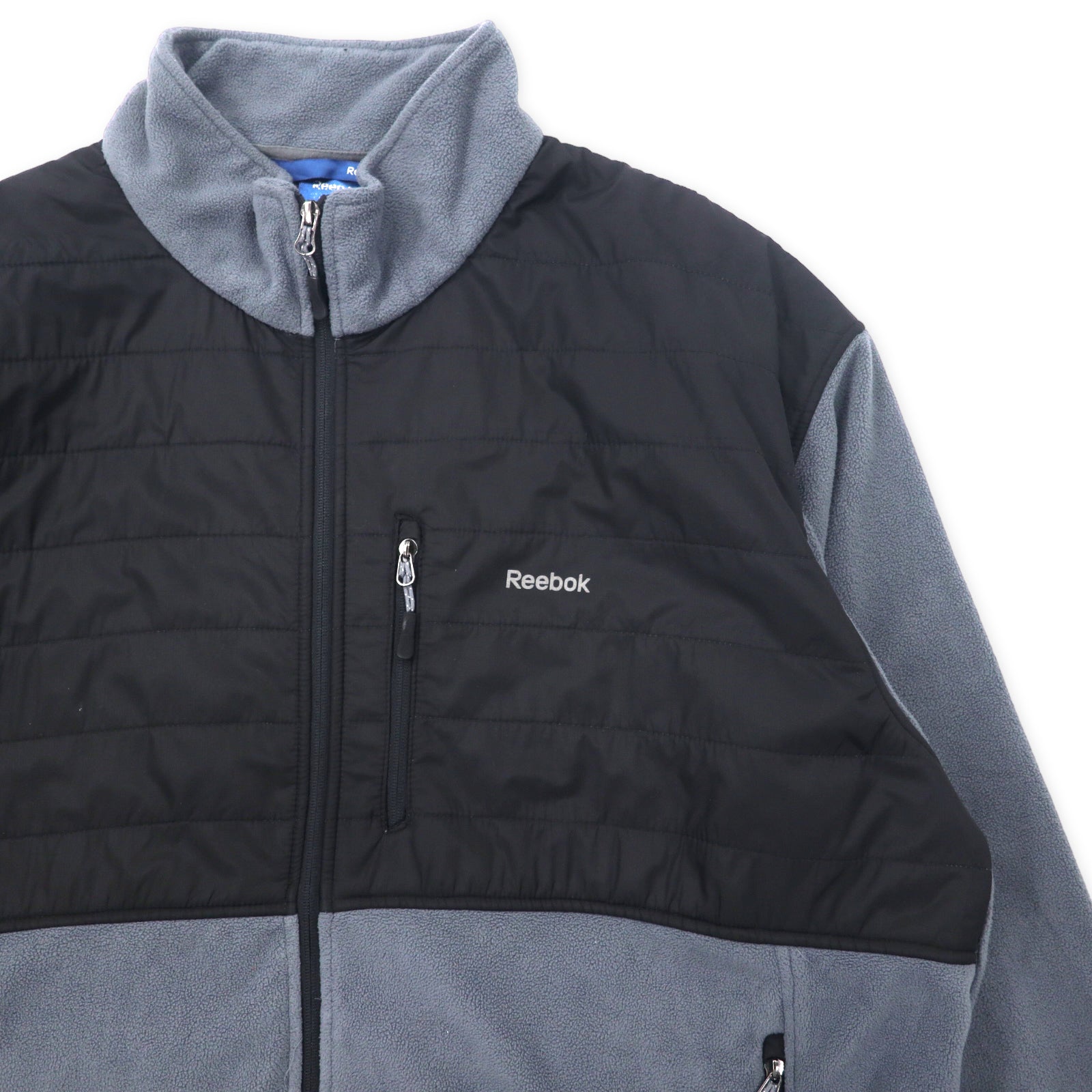 Reebok ナイロン切り替え フリースジャケット 2XL グレー ブラック バイカラー ポリエステル ビッグサイズ