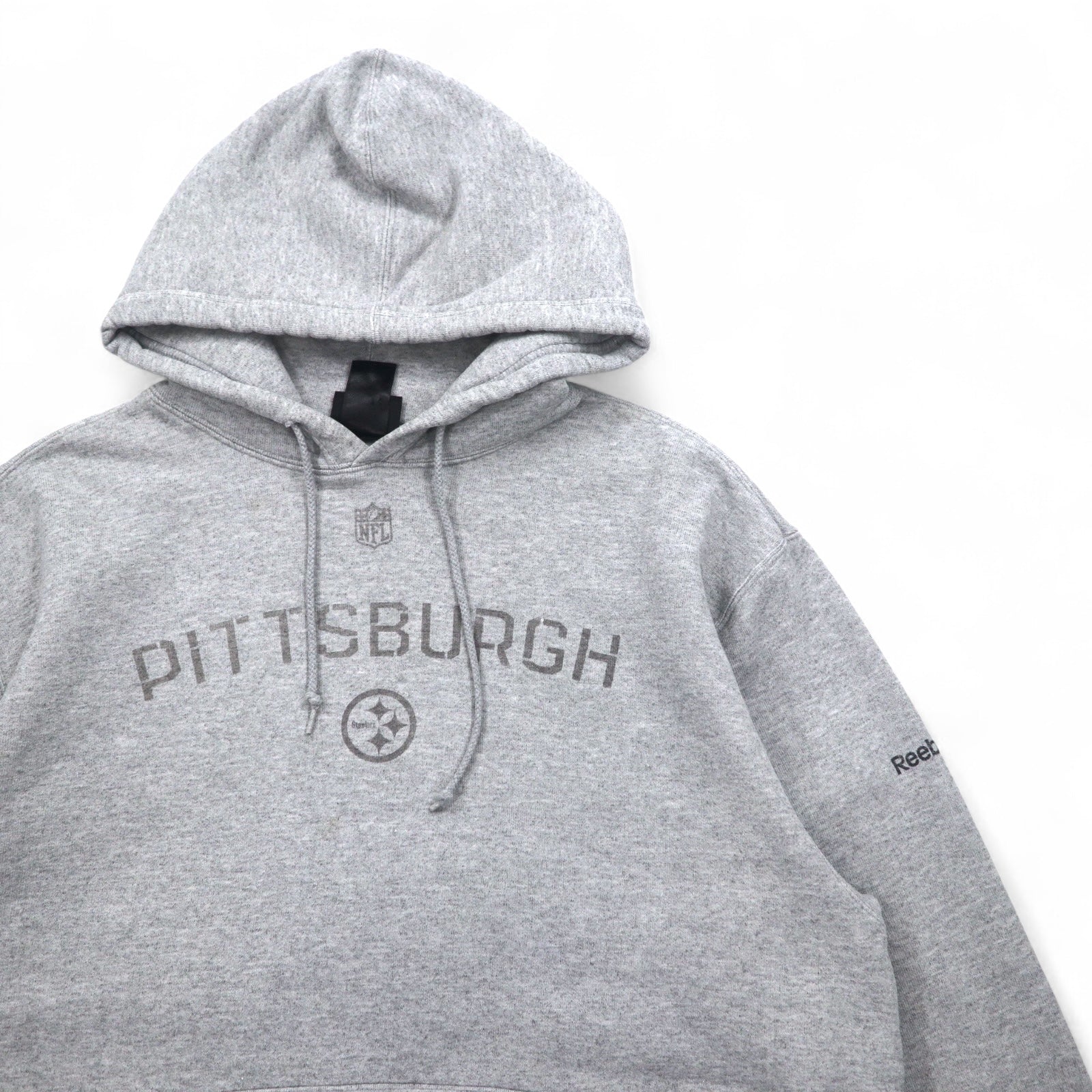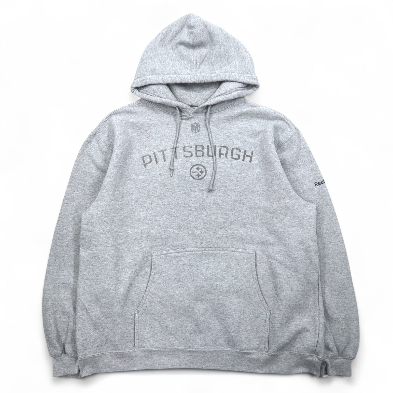 Reebok ヘビーウェイト プルオーバーパーカー L グレー 裏起毛 フロントポケット NFL PITTSBURGH
