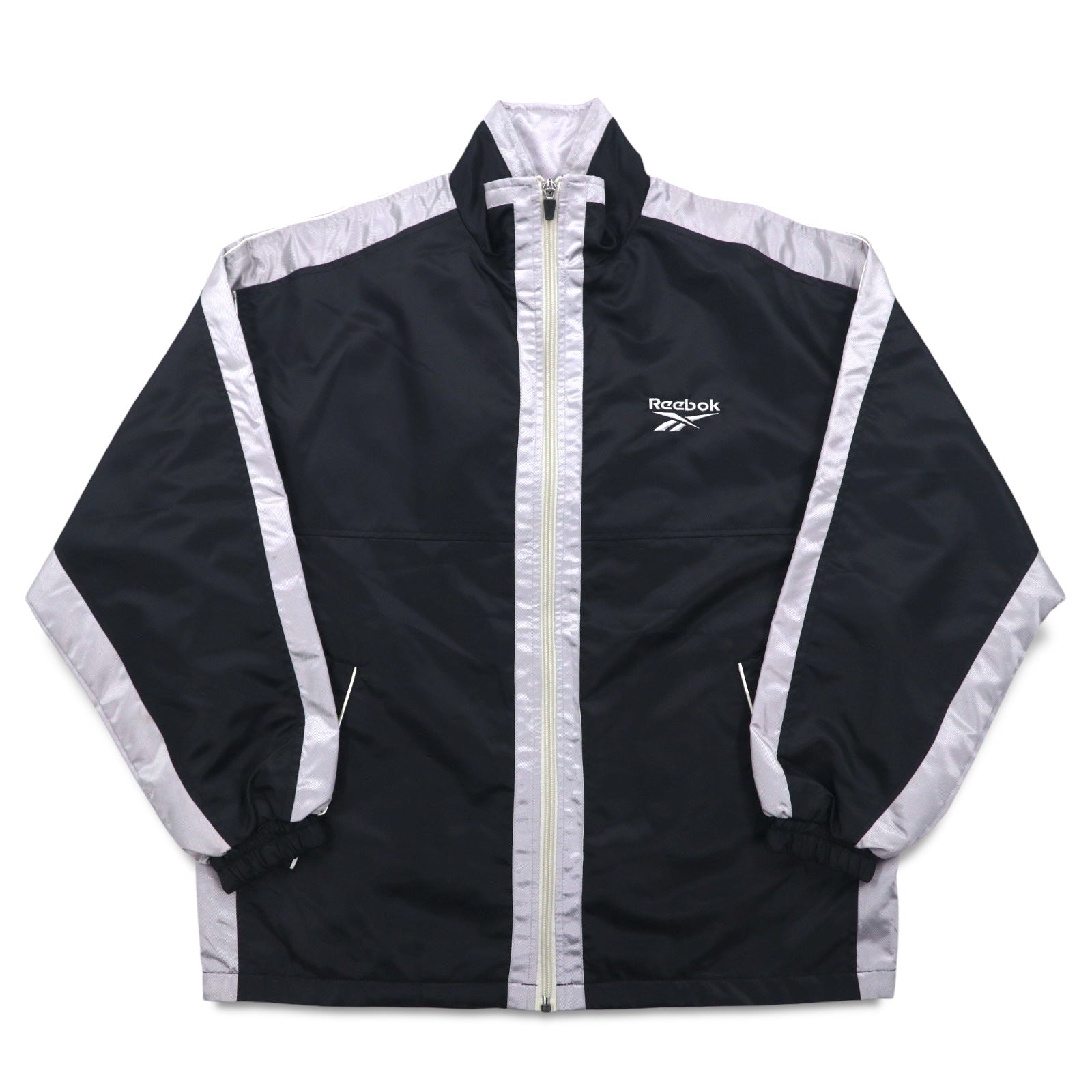 Reebok 90年代 ナイロンジャケット トラックジャケット ジャージ L ブラック グレー ロゴ刺繍