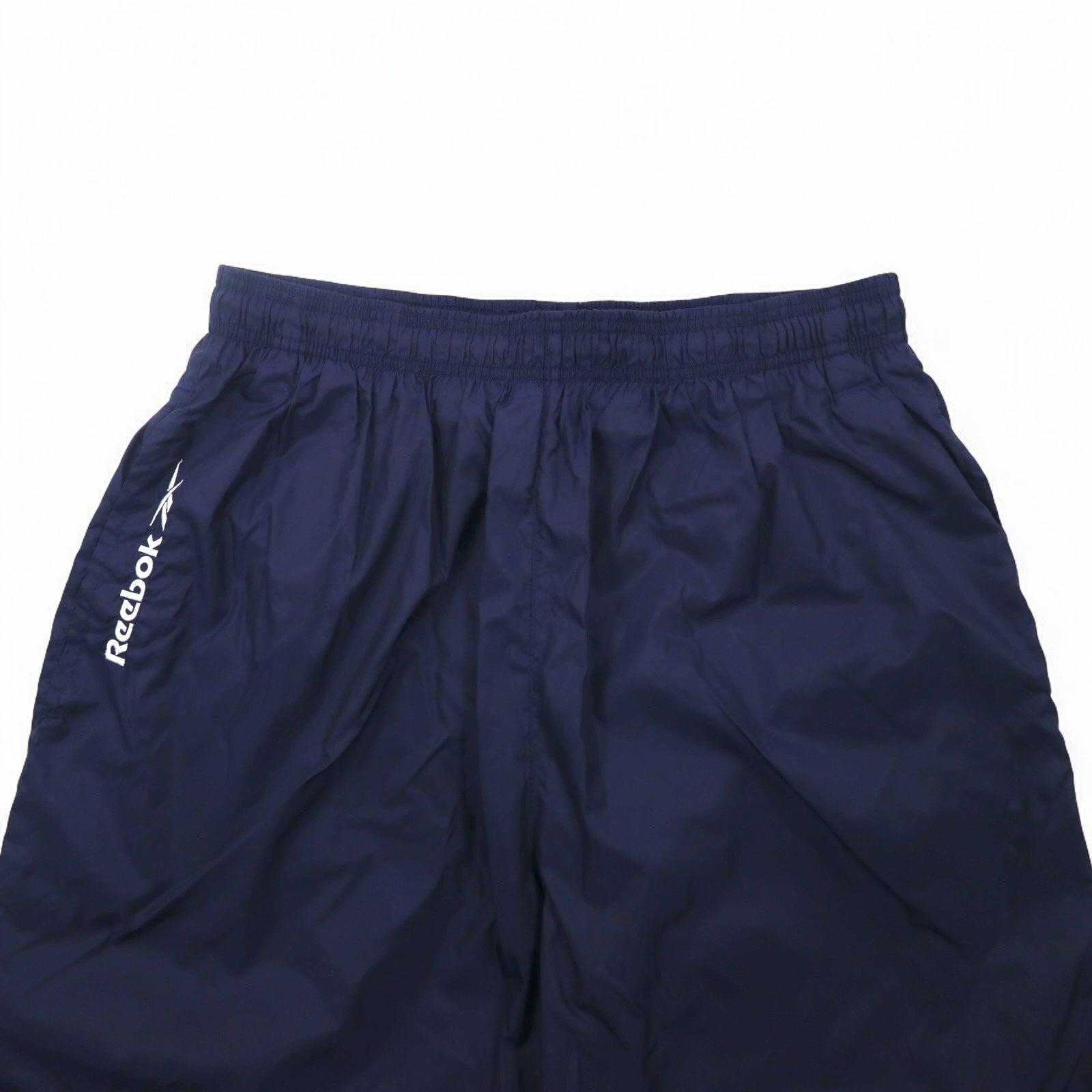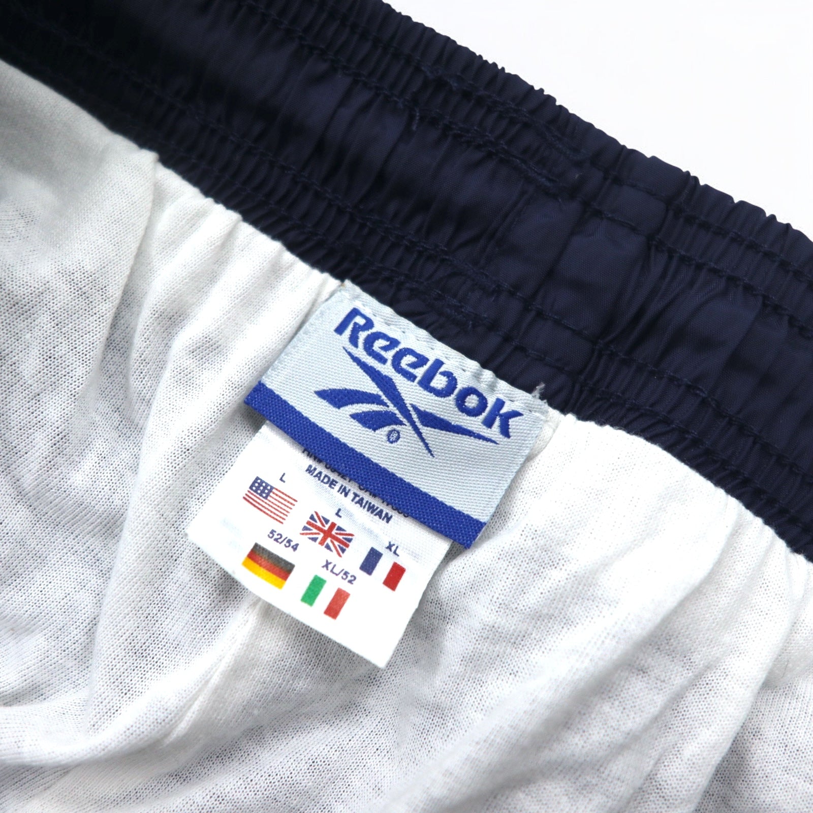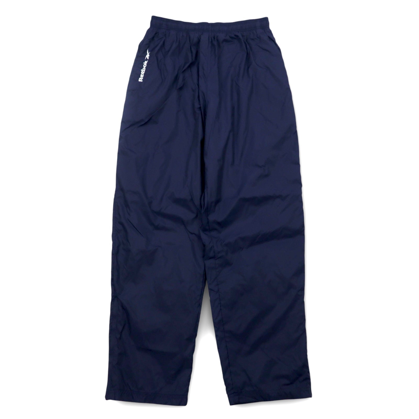 Reebok 90年代 ナイロン トラックパンツ ジャージ L ネイビー ベクターロゴ刺繍 スリット 裾ジップ