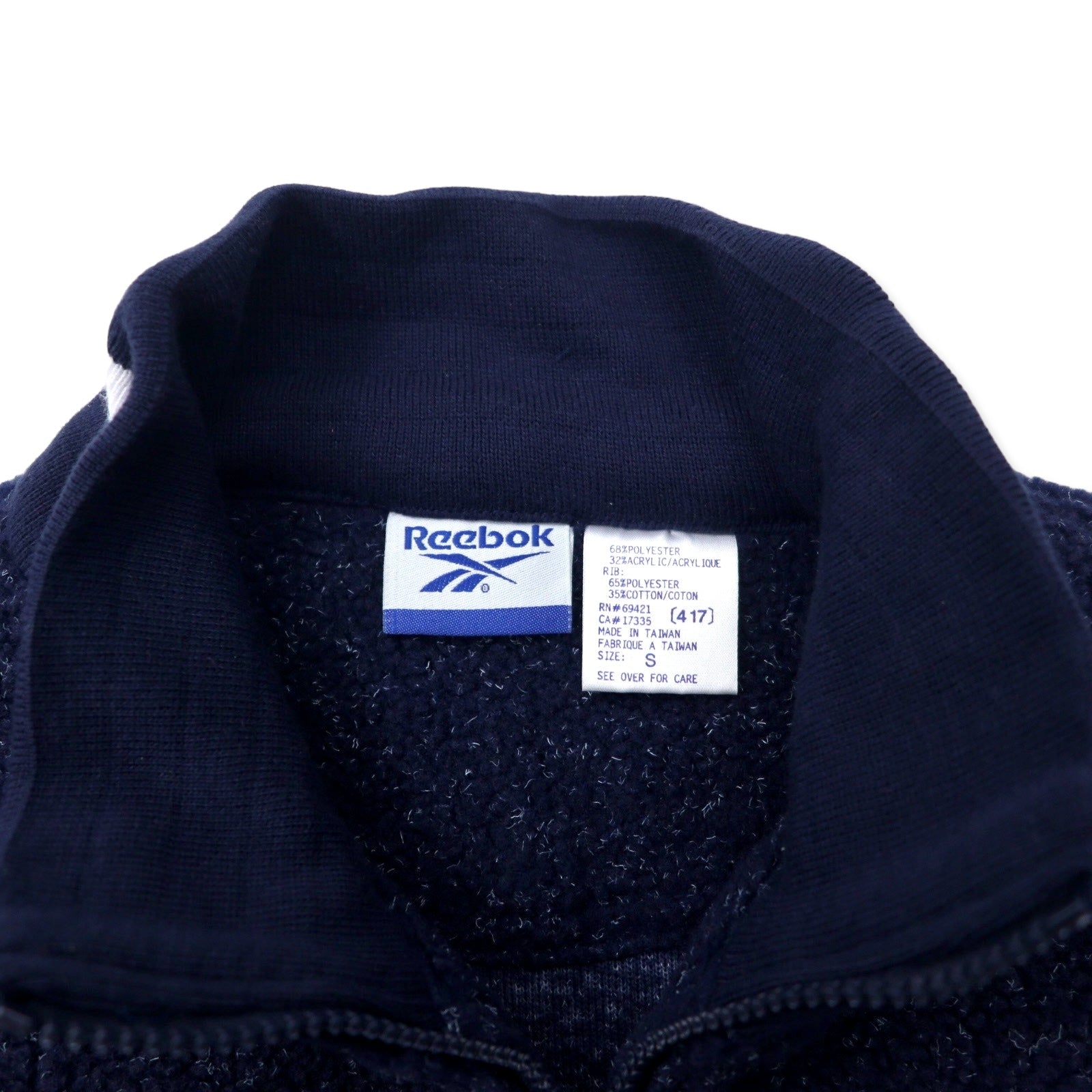 Reebok 90年代 ハーフジップ ボアフリースジャケット S ネイビー ポリエステル ベクターロゴ刺繍 ビッグサイズ