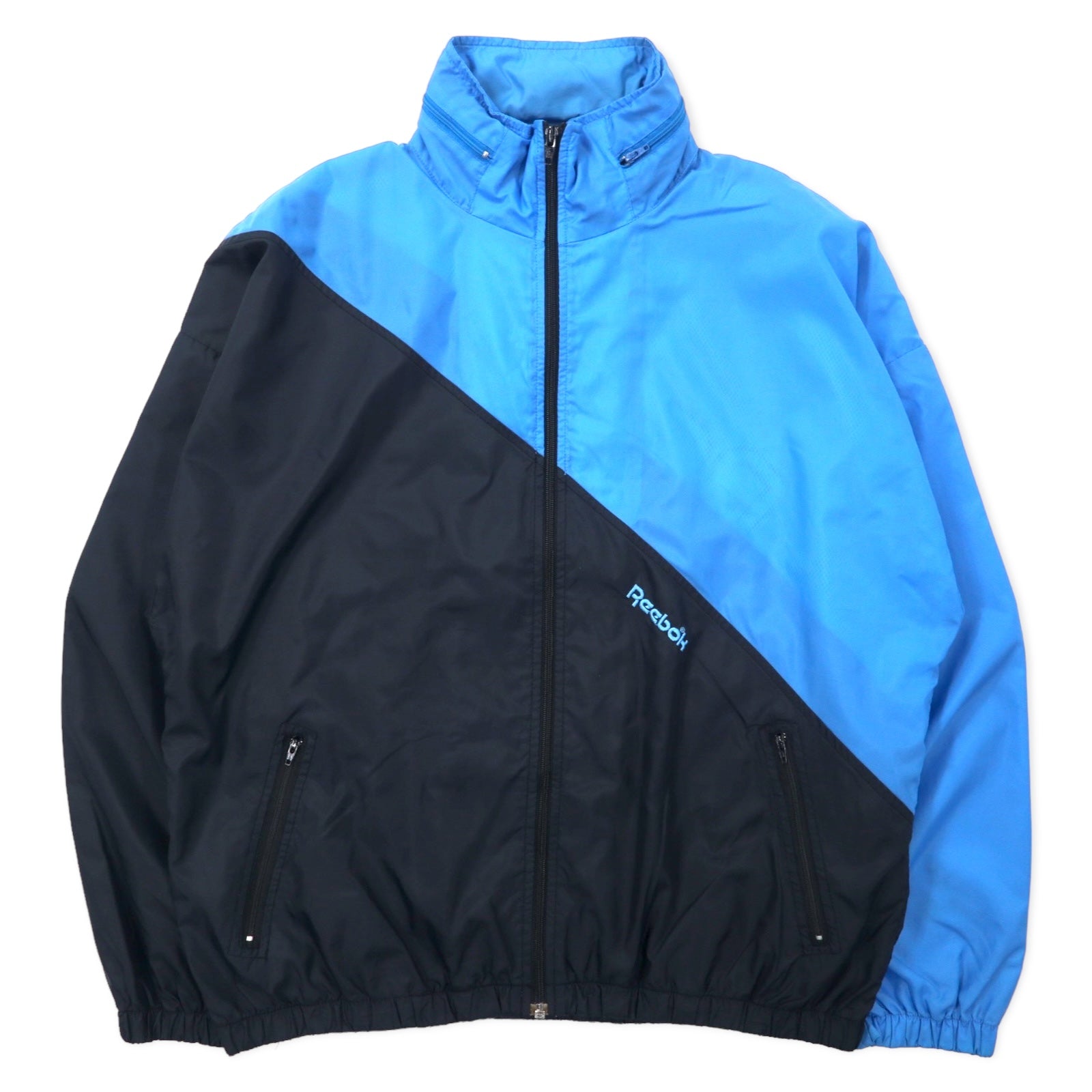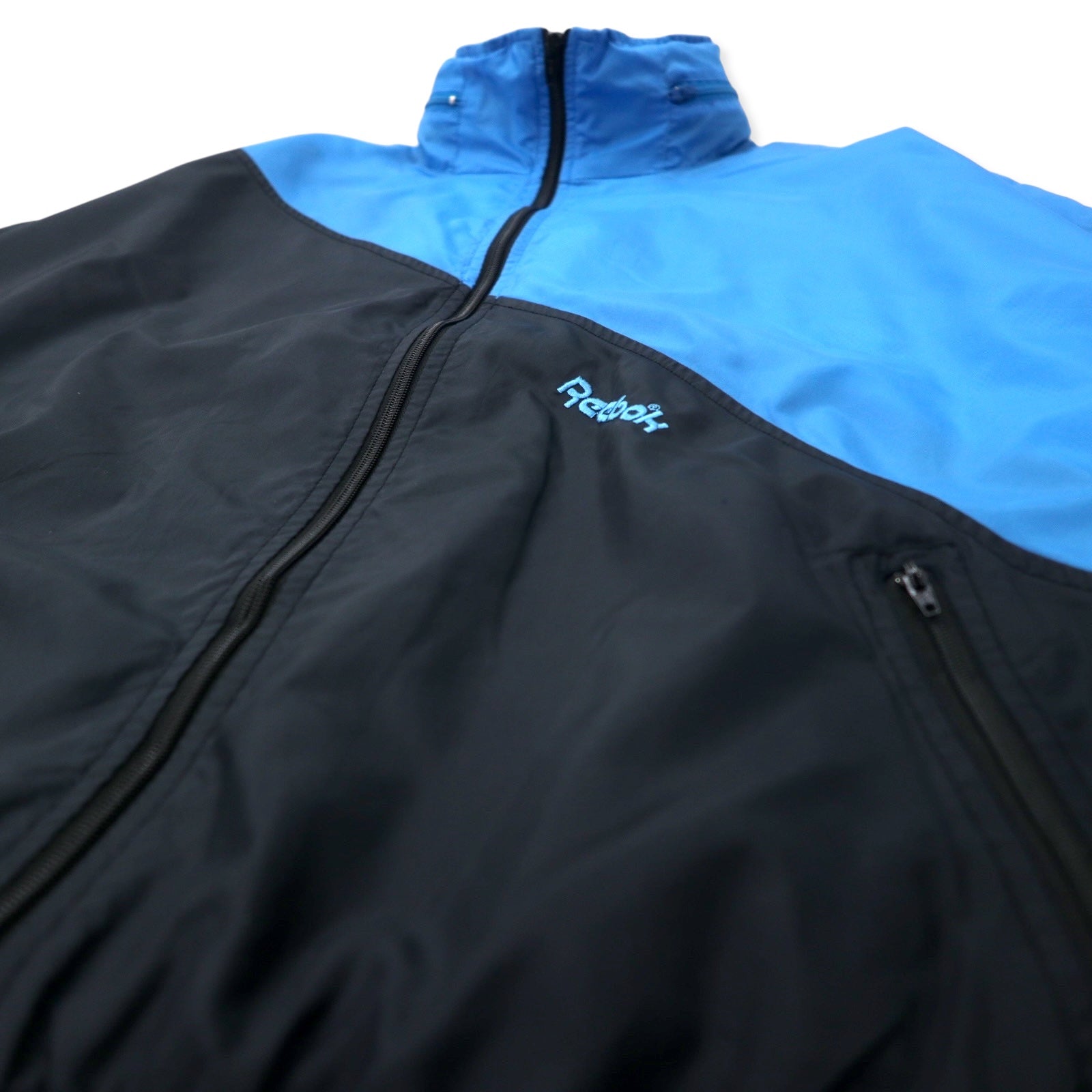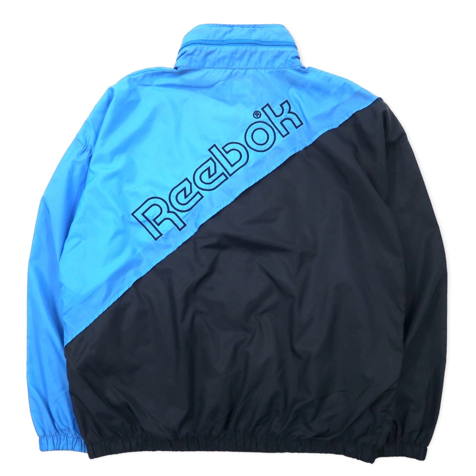 Reebok SPORT 90年代 ナイロンジャケット M ブルー ブラック フード収納式 バックロゴ刺繍
