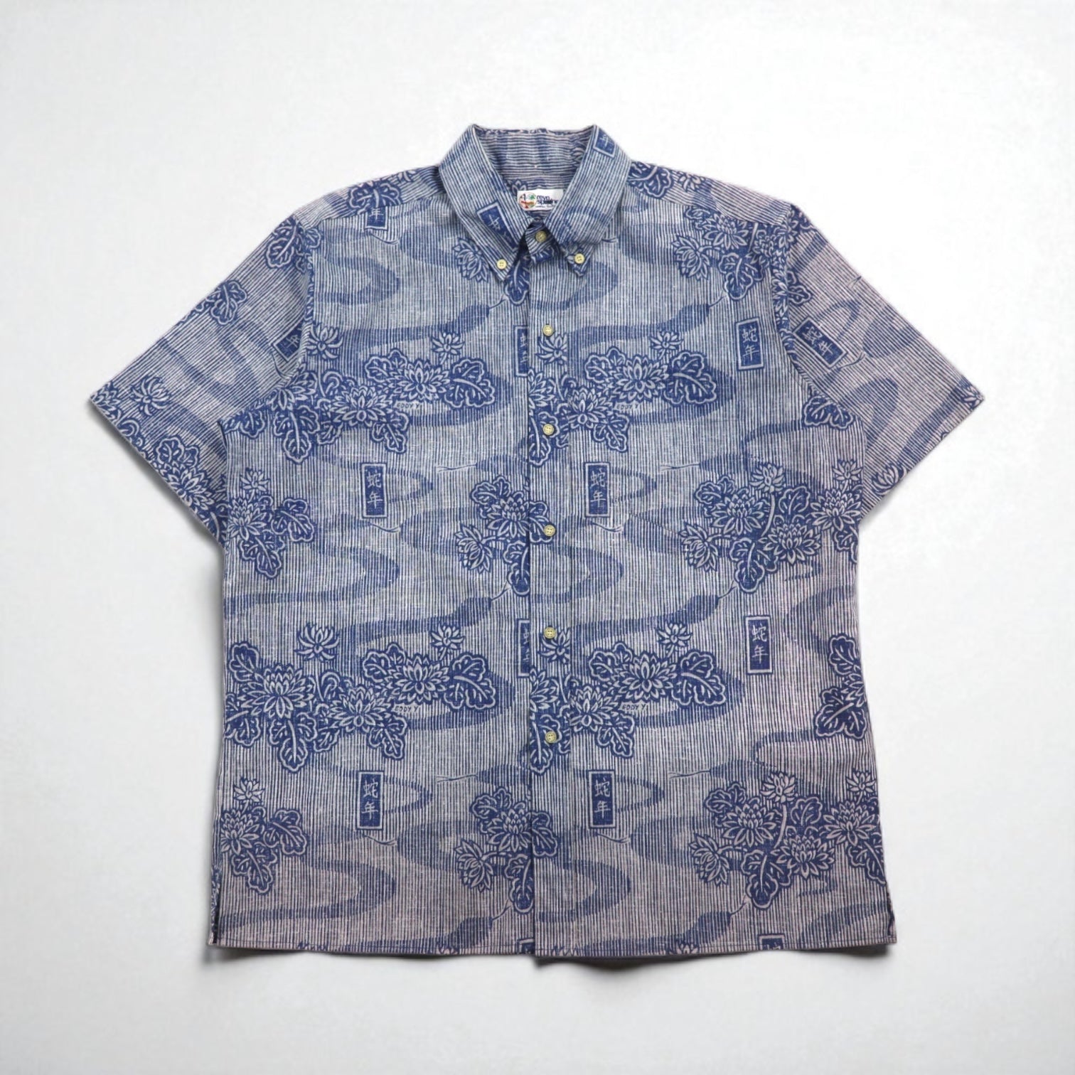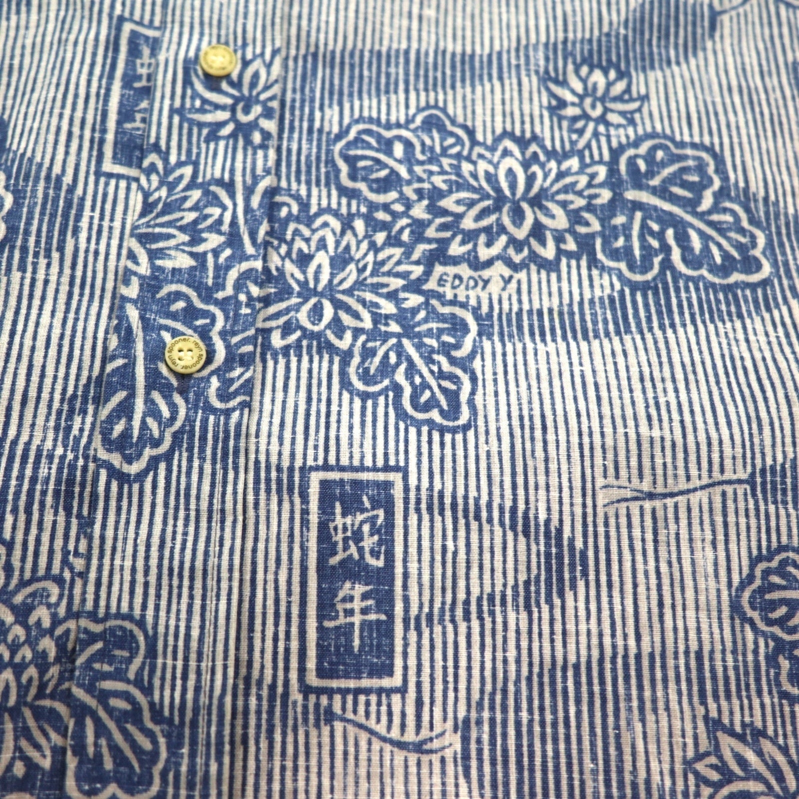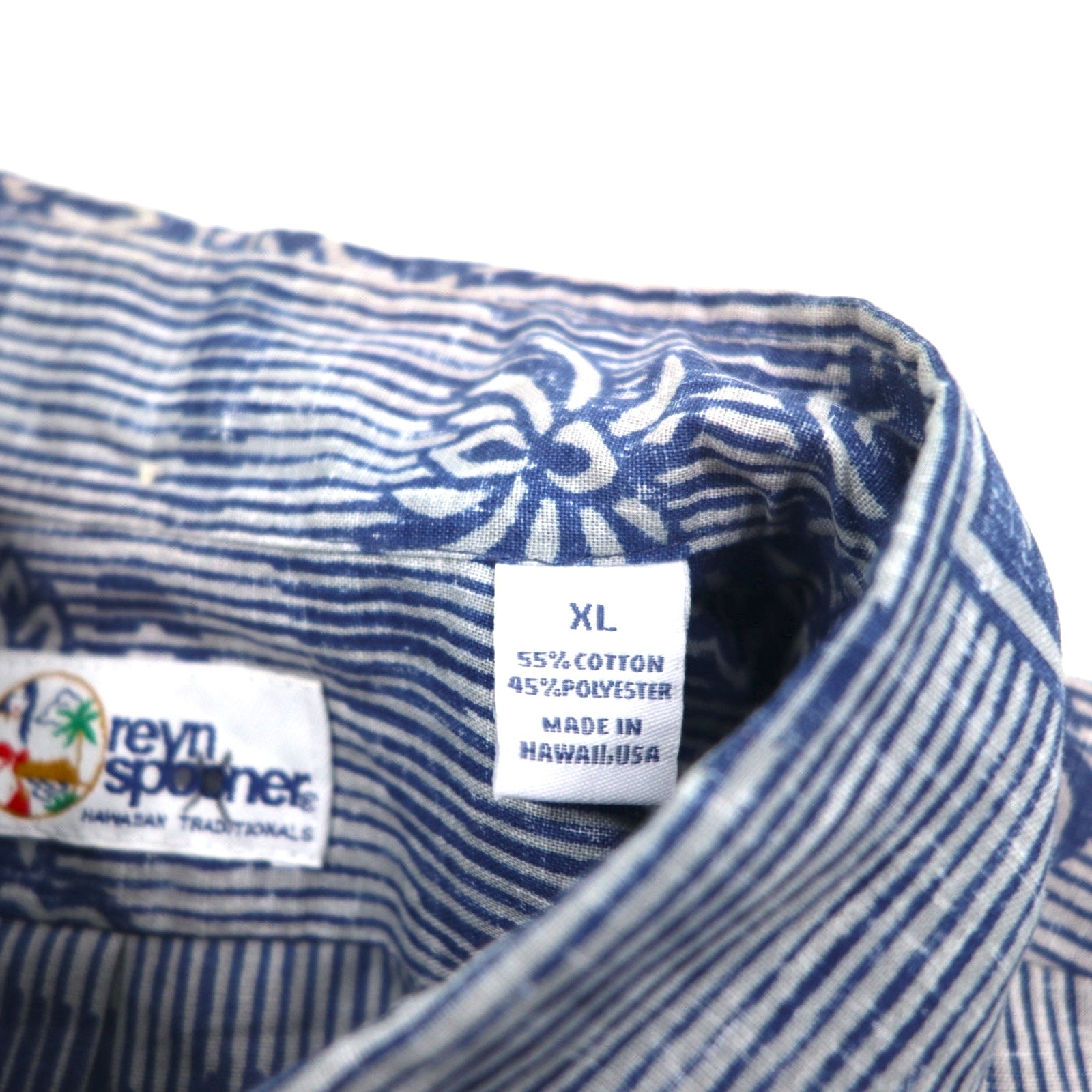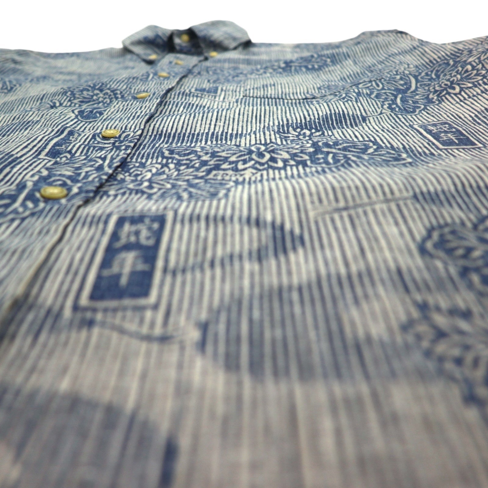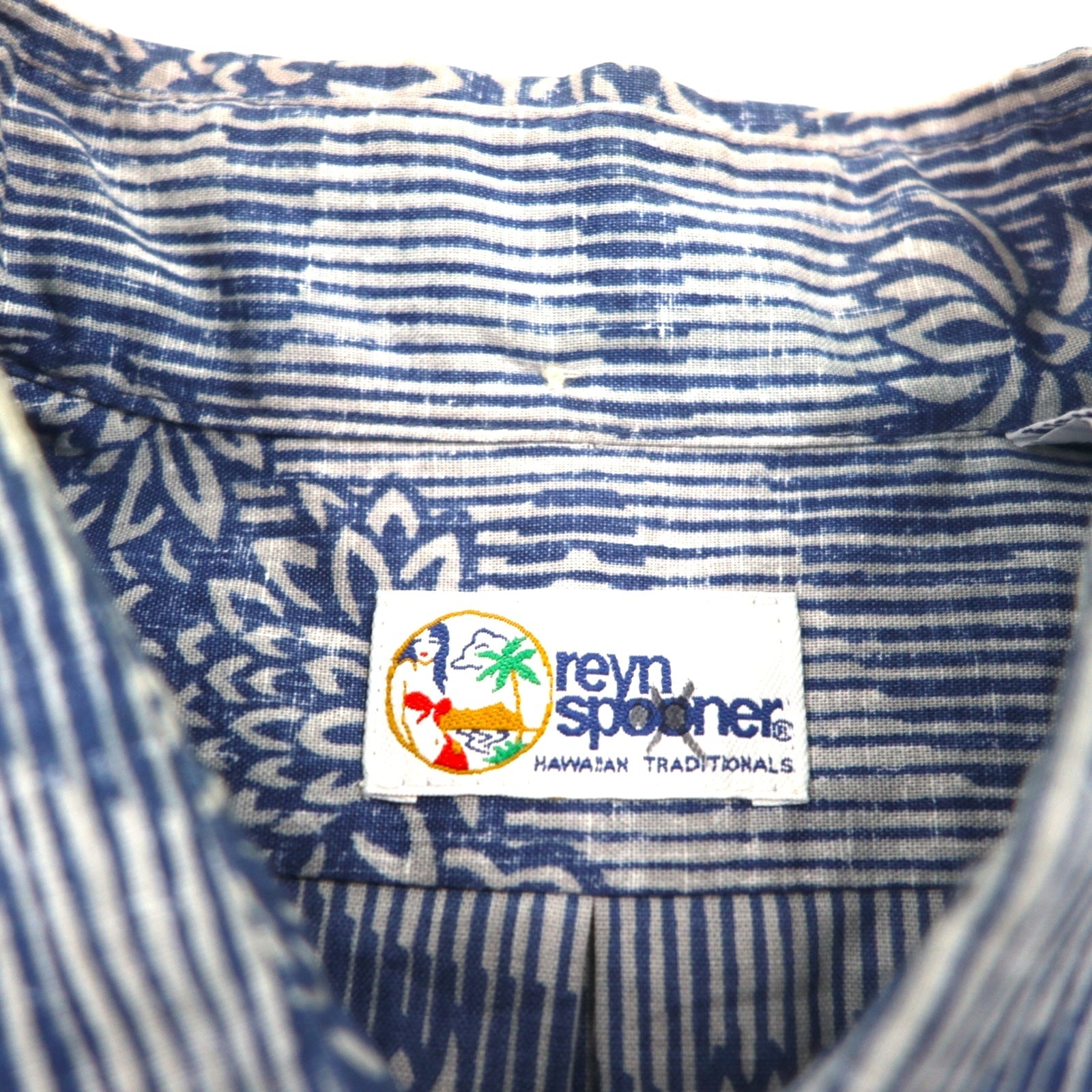 Reyn Spooner ハワイ(USA)製 ビキニタグ ボタンダウン アロハシャツ XL ブルー コットン ポリエステル 蛇年 漢字