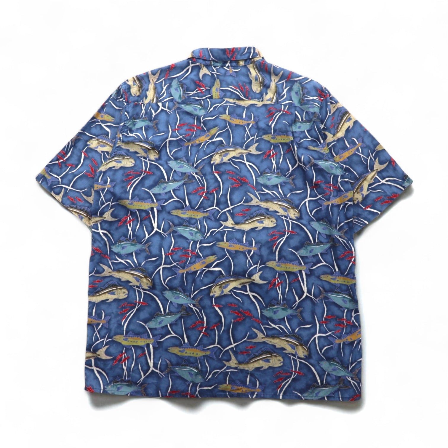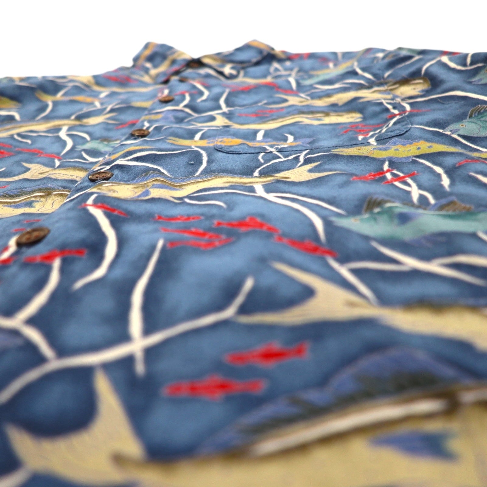 Reyn Spooner 80年代 ハワイ製 ダイアモンドヘッドタグ アロハシャツ L ネイビー コットン EGYPTIAN COTTON 魚モチーフ