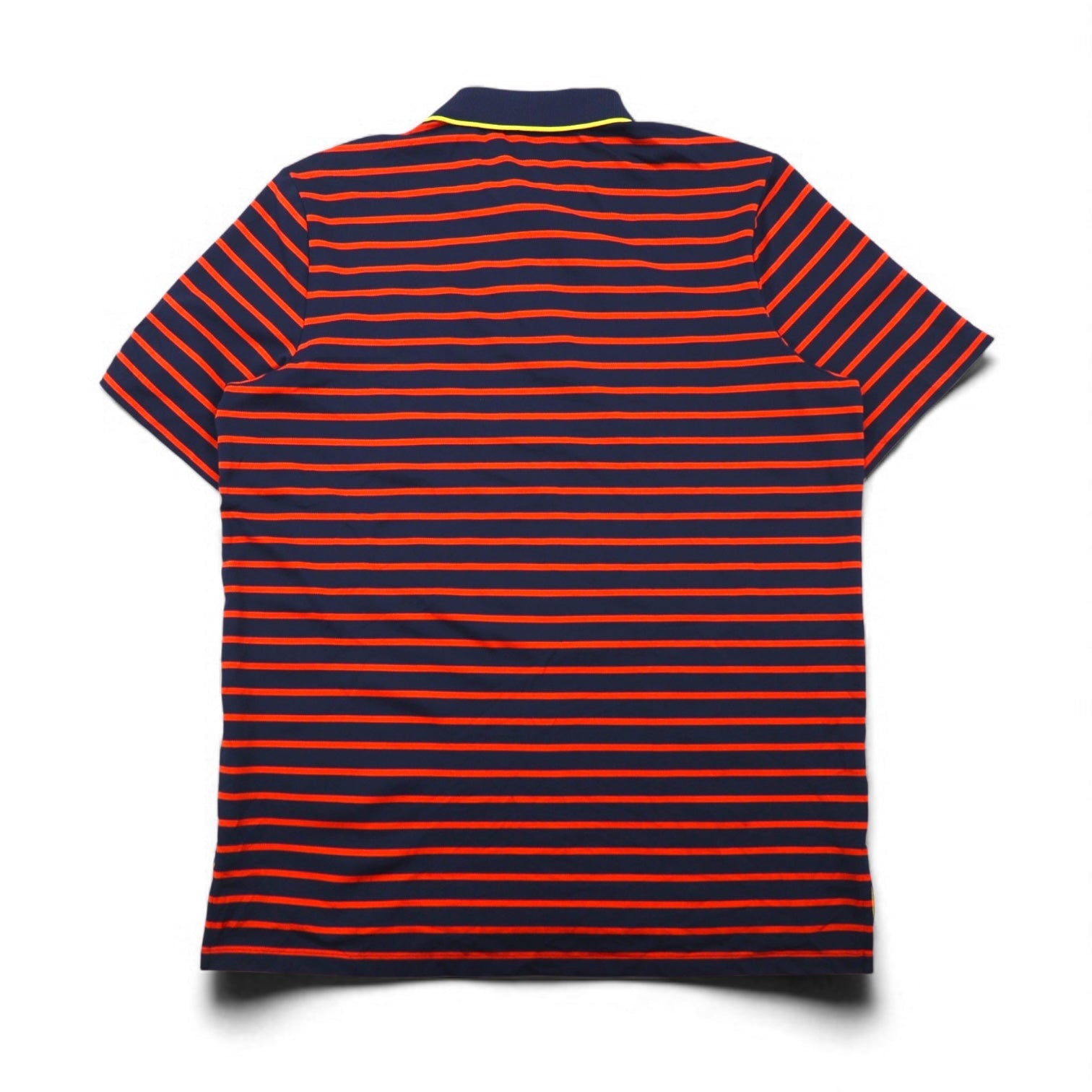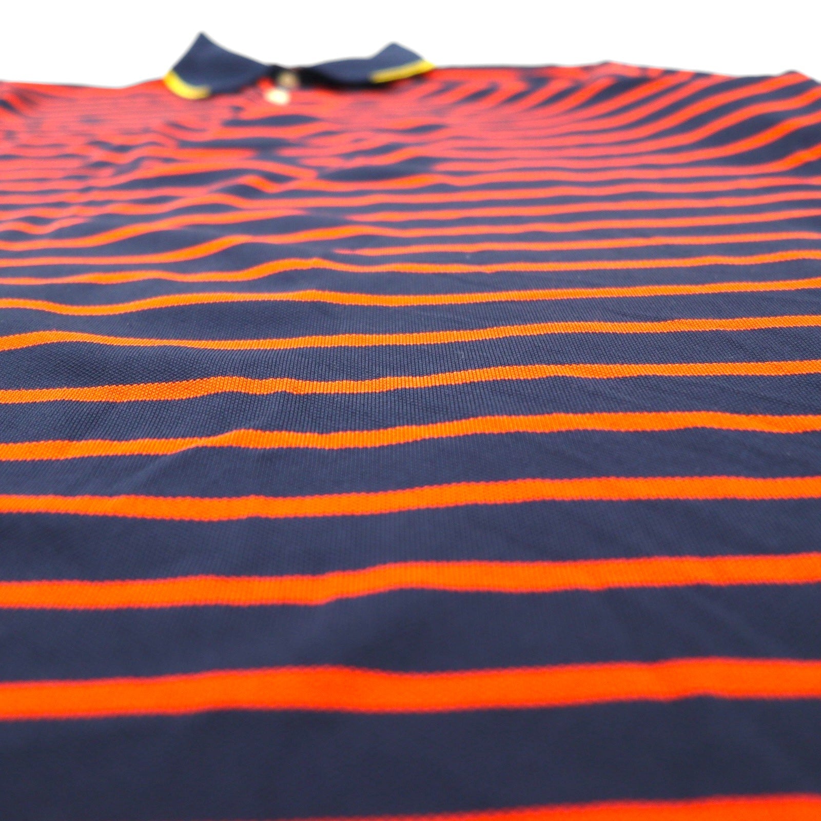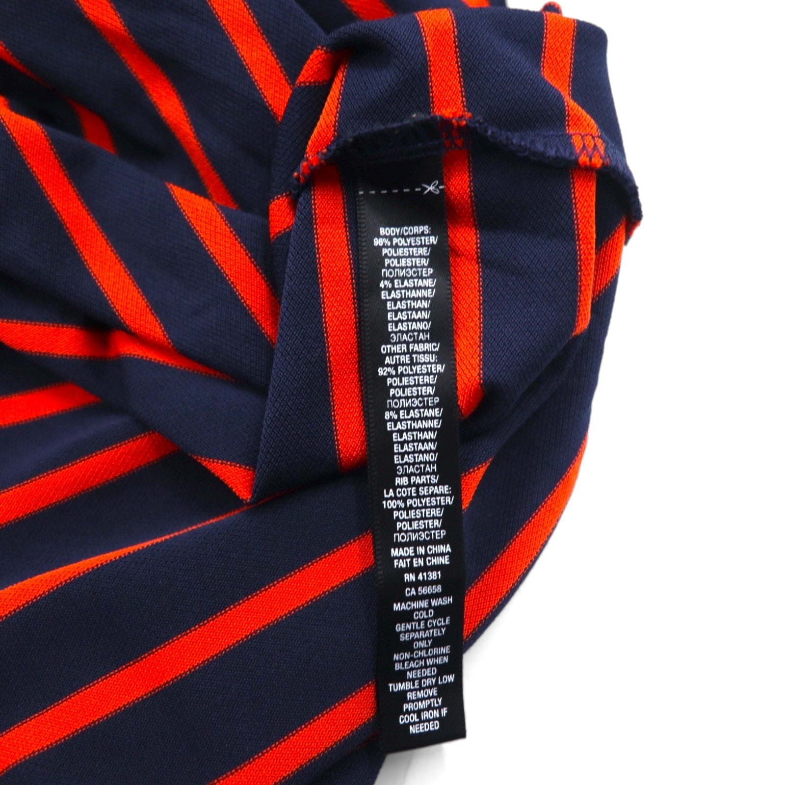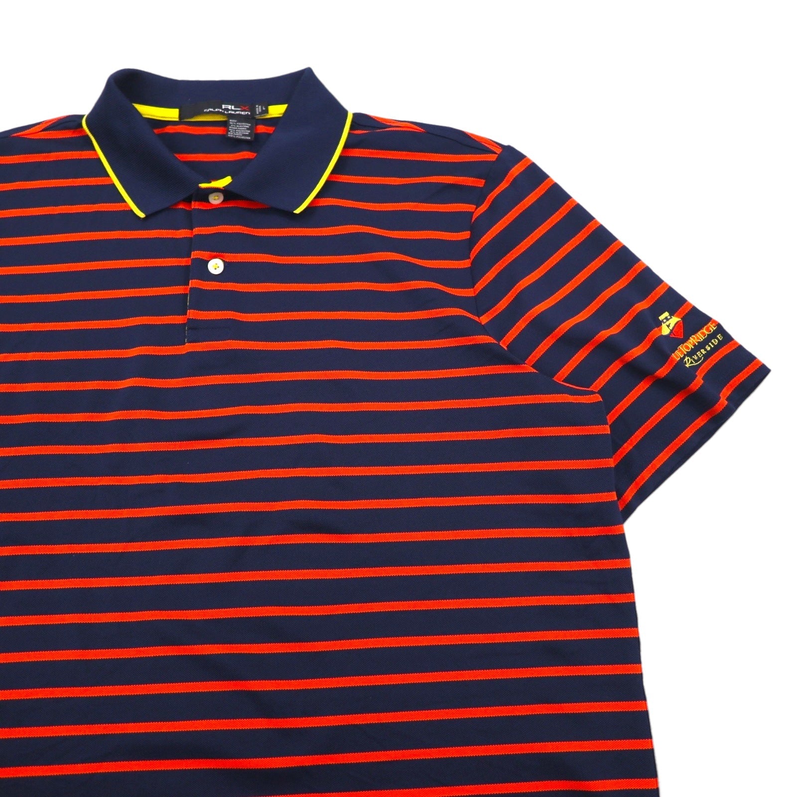 RLX RALPH LAUREN ストレッチメッシュ ポロシャツ L ボーダー ネイビー オレンジ ポリエステル