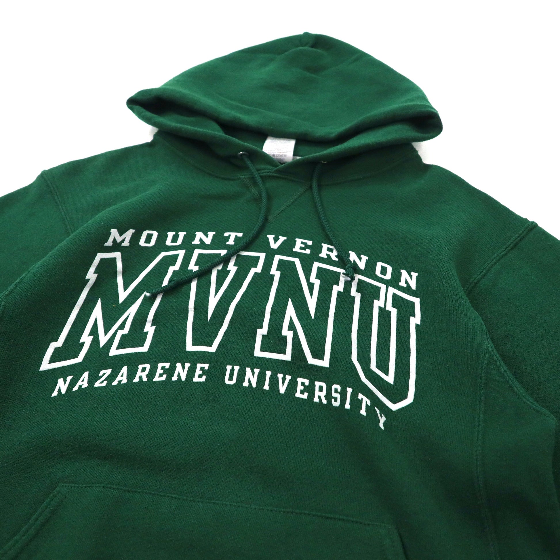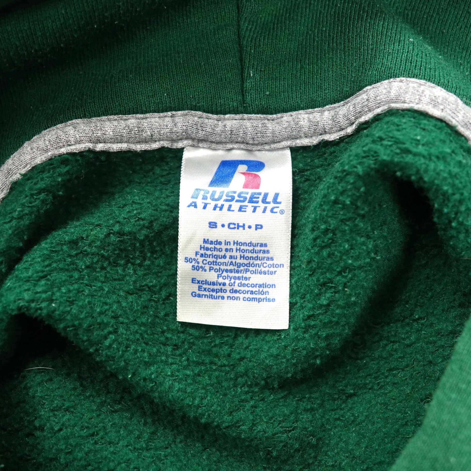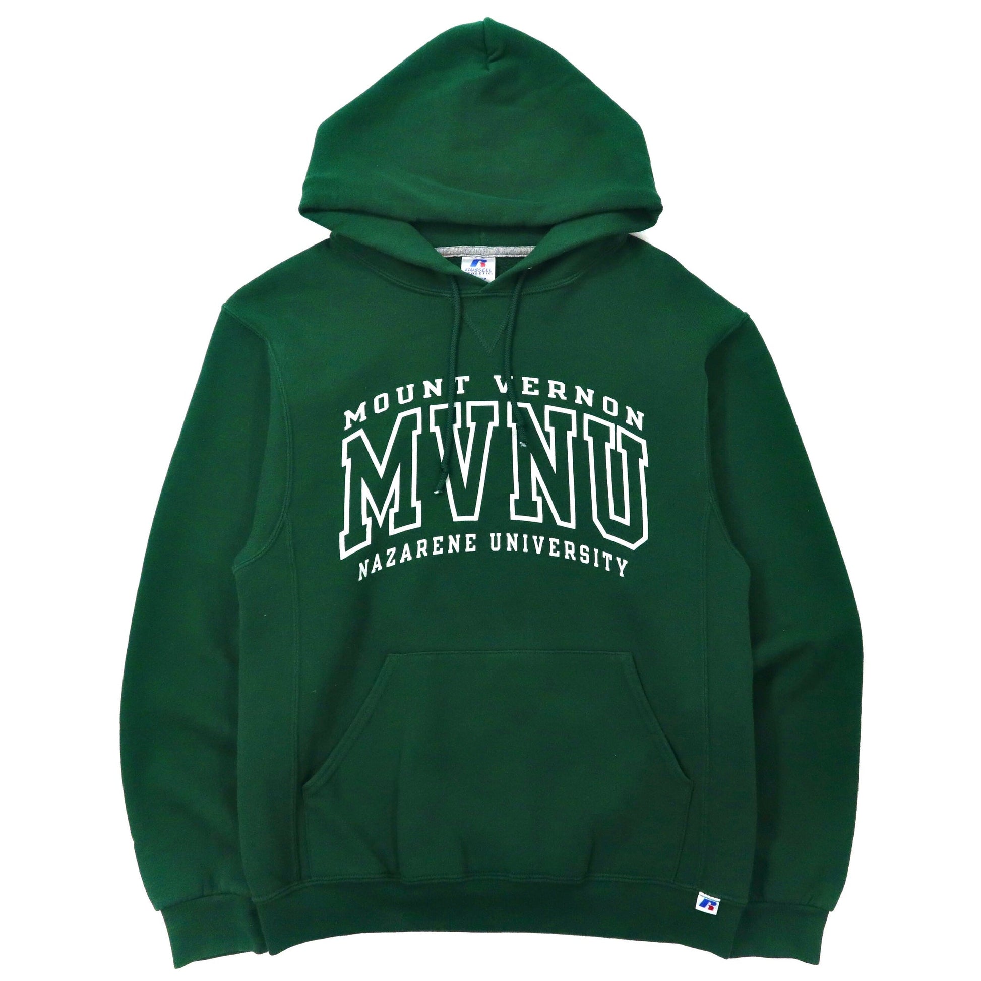 RUSSELL ATHLETIC カレッジ パーカー S グリーン コットン プリント 裏起毛 NAZARENE UNIVERSITY ホンジュラス製