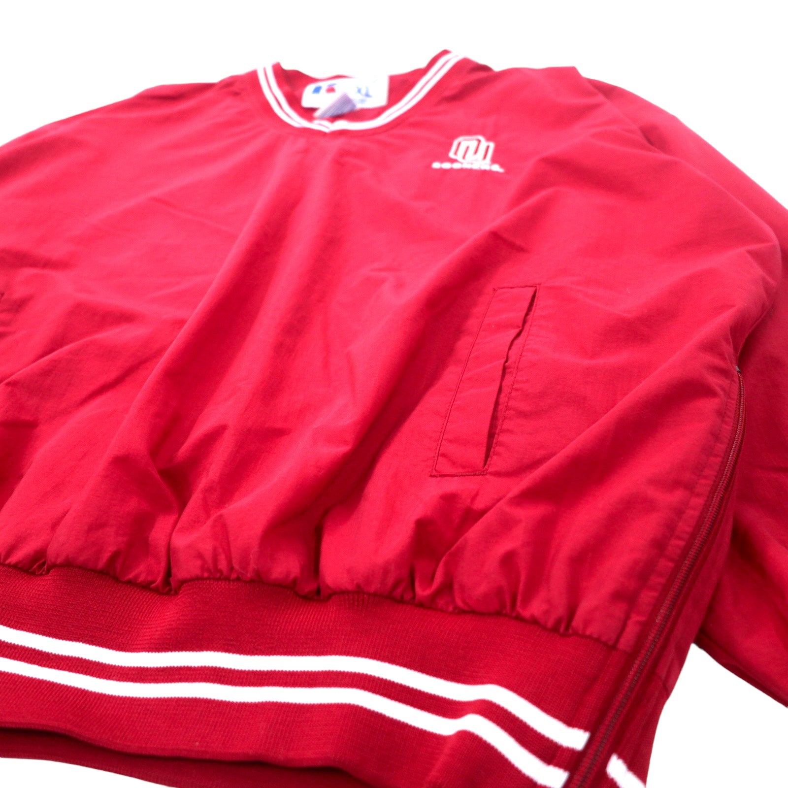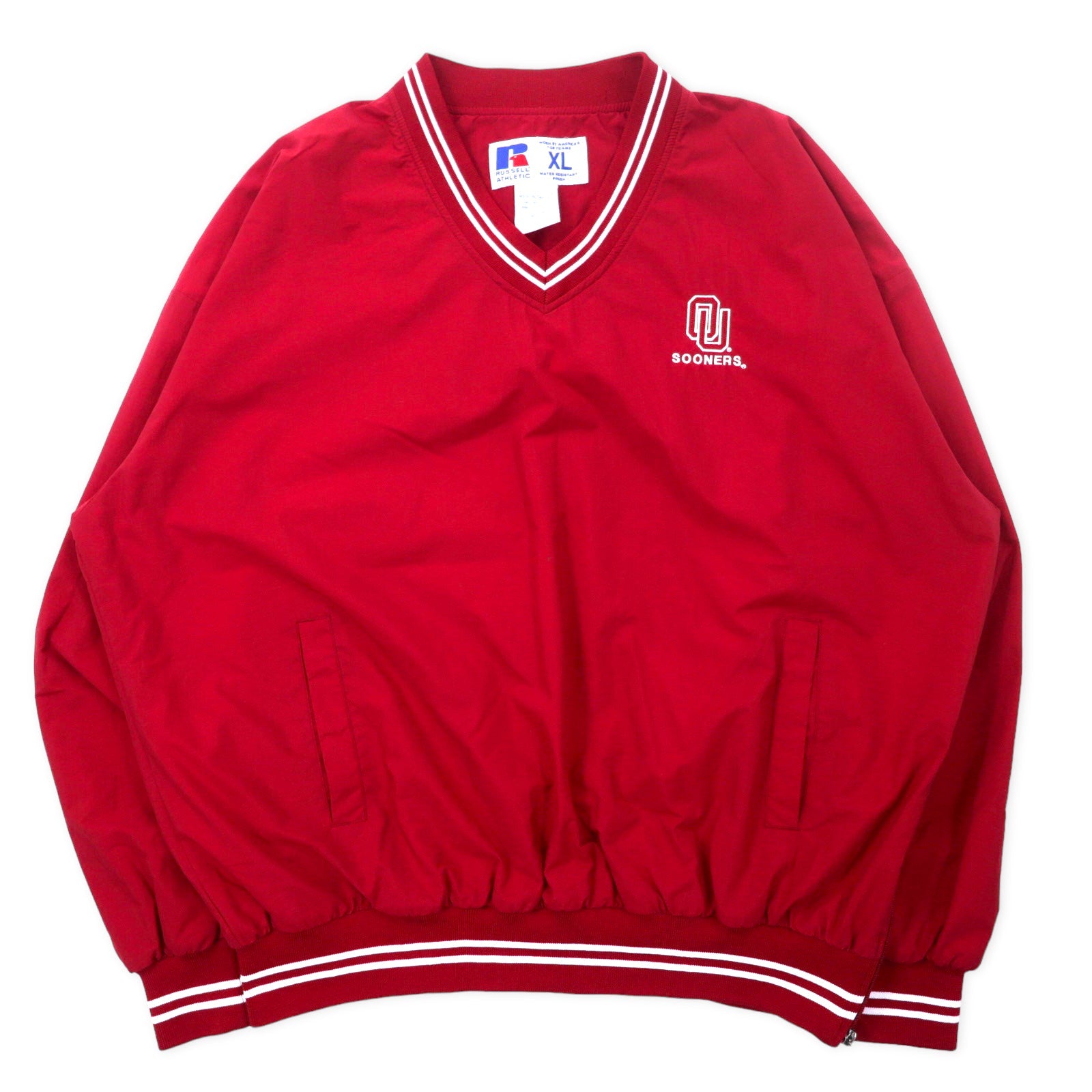 RUSSELL ATHLETIC リブライン ピステ プルオーバー ナイロンジャケット XL レッド ナイロン 防水 カレッジ刺繍 SOONERS ビッグサイズ
