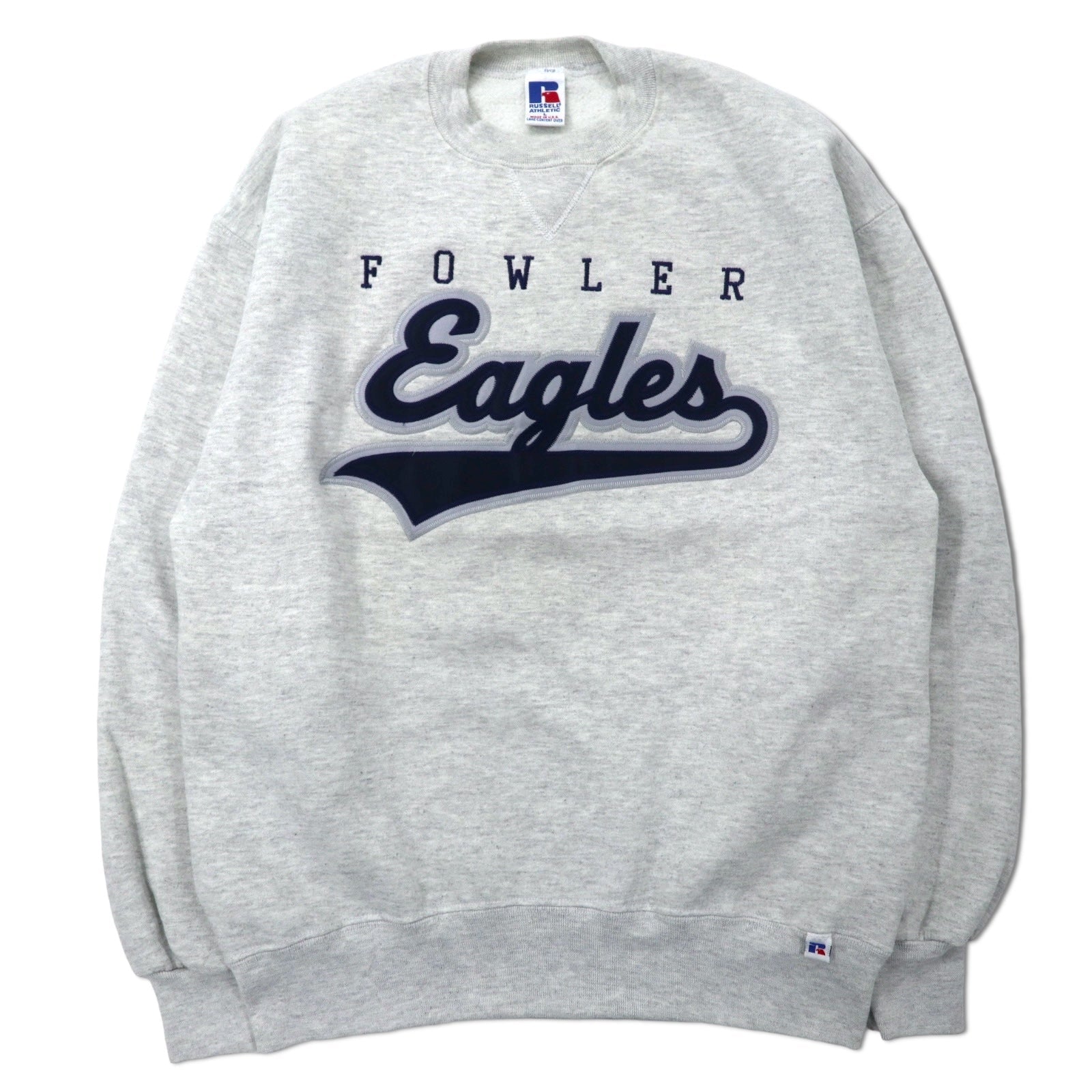 RUSSELL ATHLETIC USA製 90年代 カレッジ刺繍 スウェット L グレー コットン 裏起毛 フットボール FOWLER EAGLES