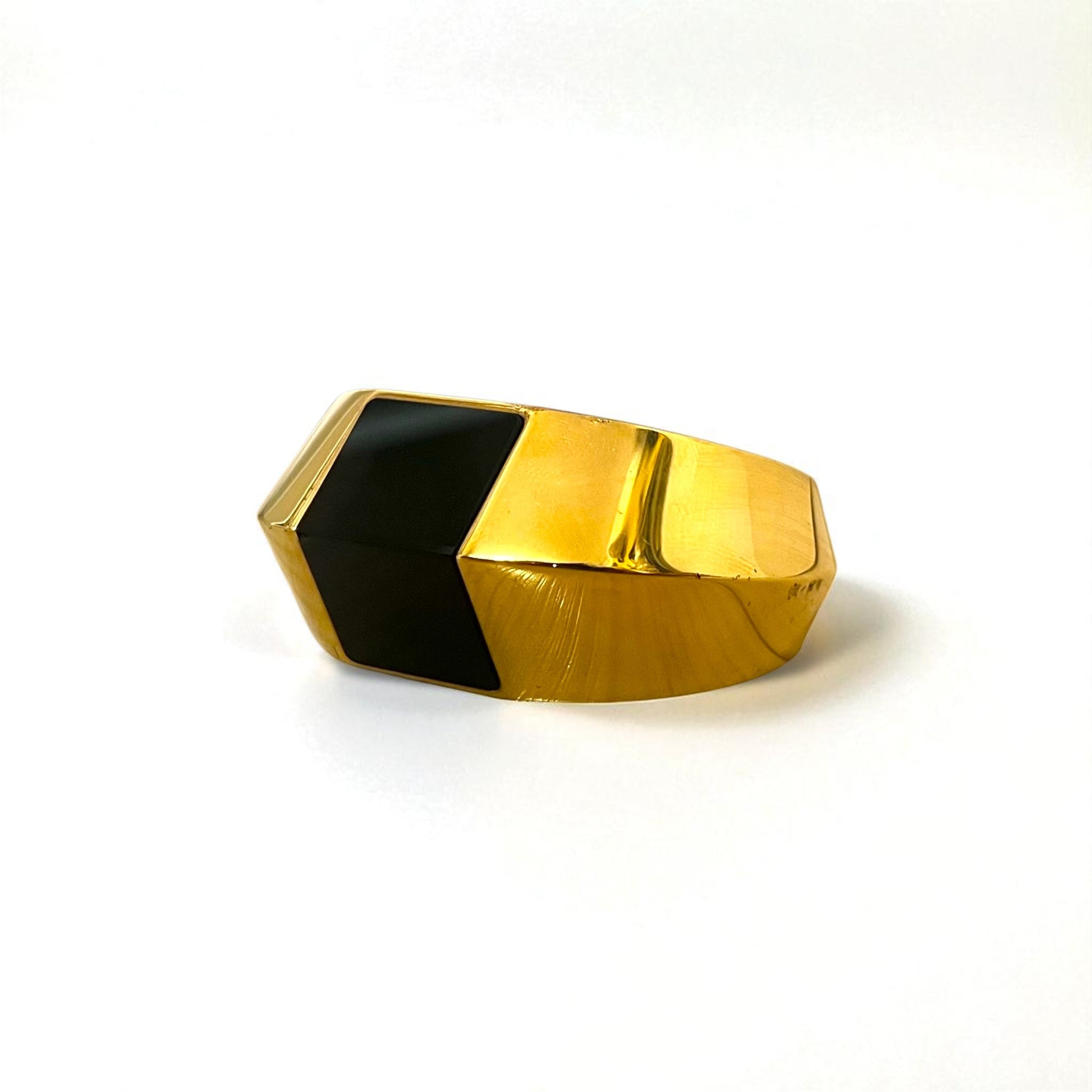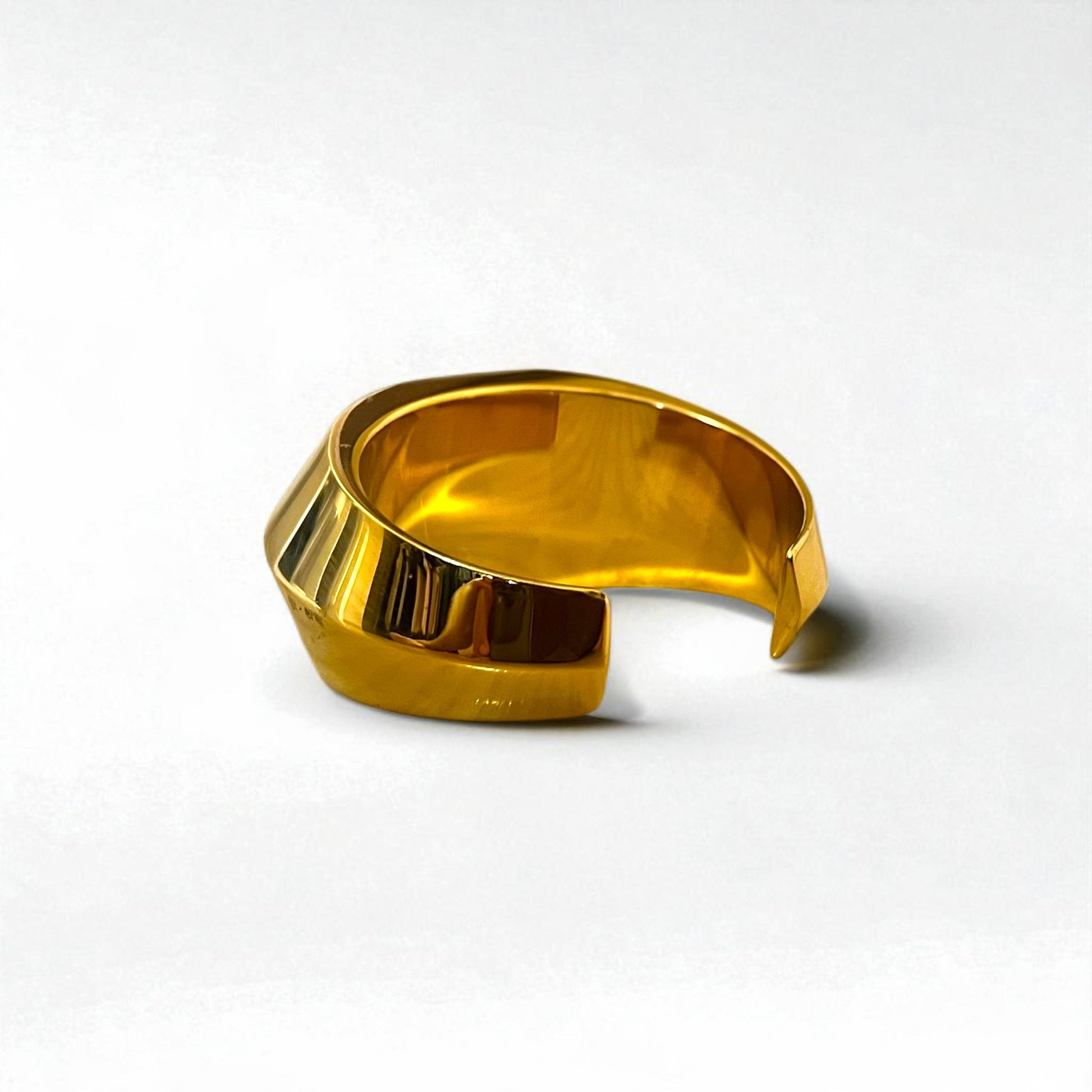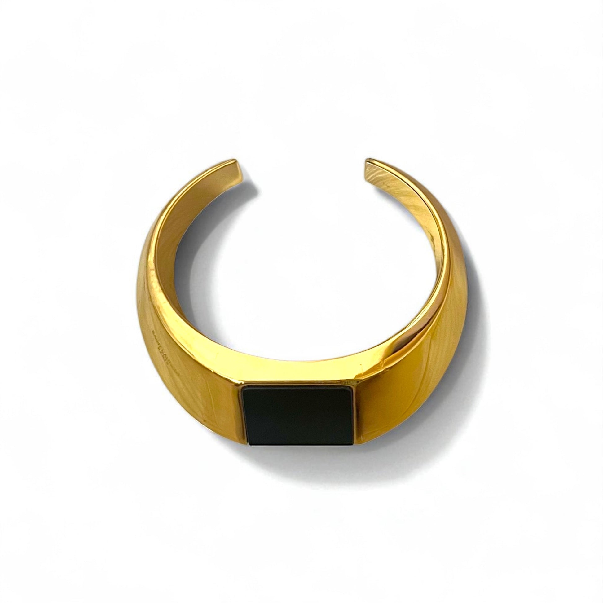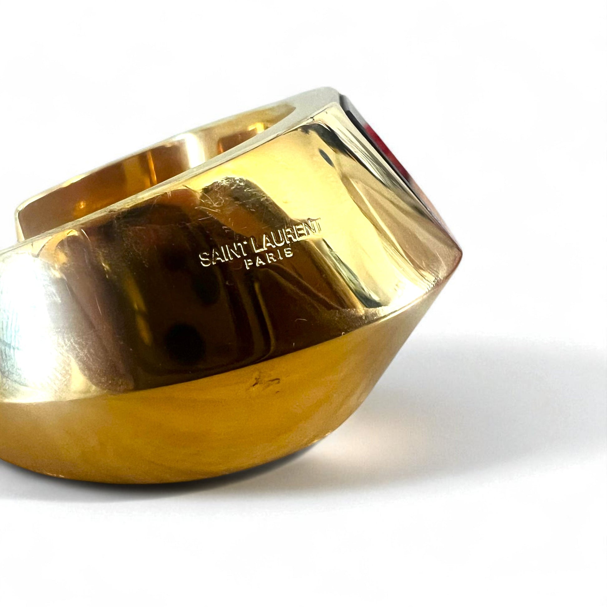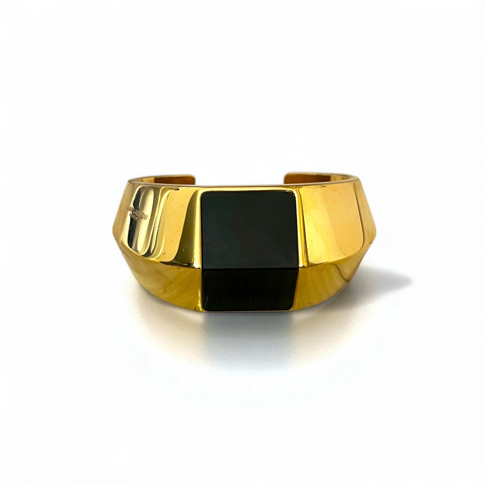 SAINT LAURENT PARIS メタル バングル ゴールド ブラック ワイド カフ ブレスレット